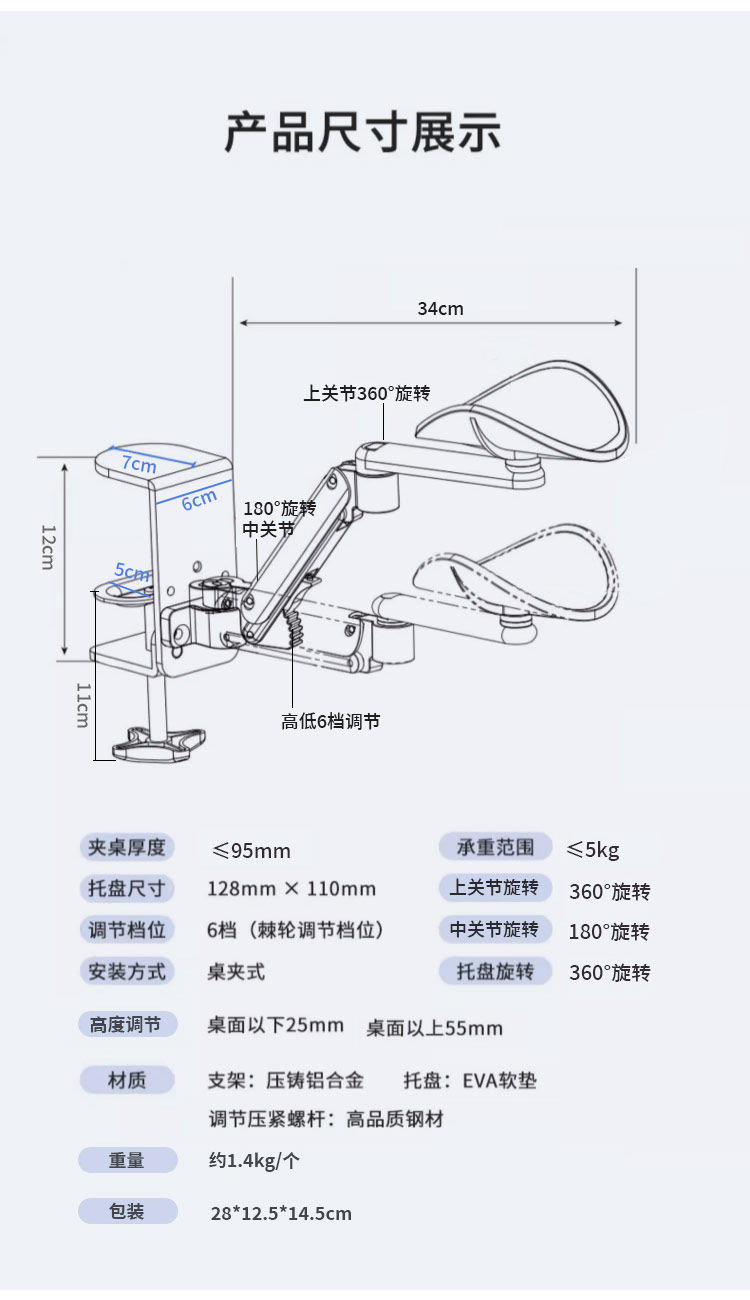 電腦手托架辦公桌面滑鼠墊鍵盤手托護腕托手肘托胳膊手臂托支撐架