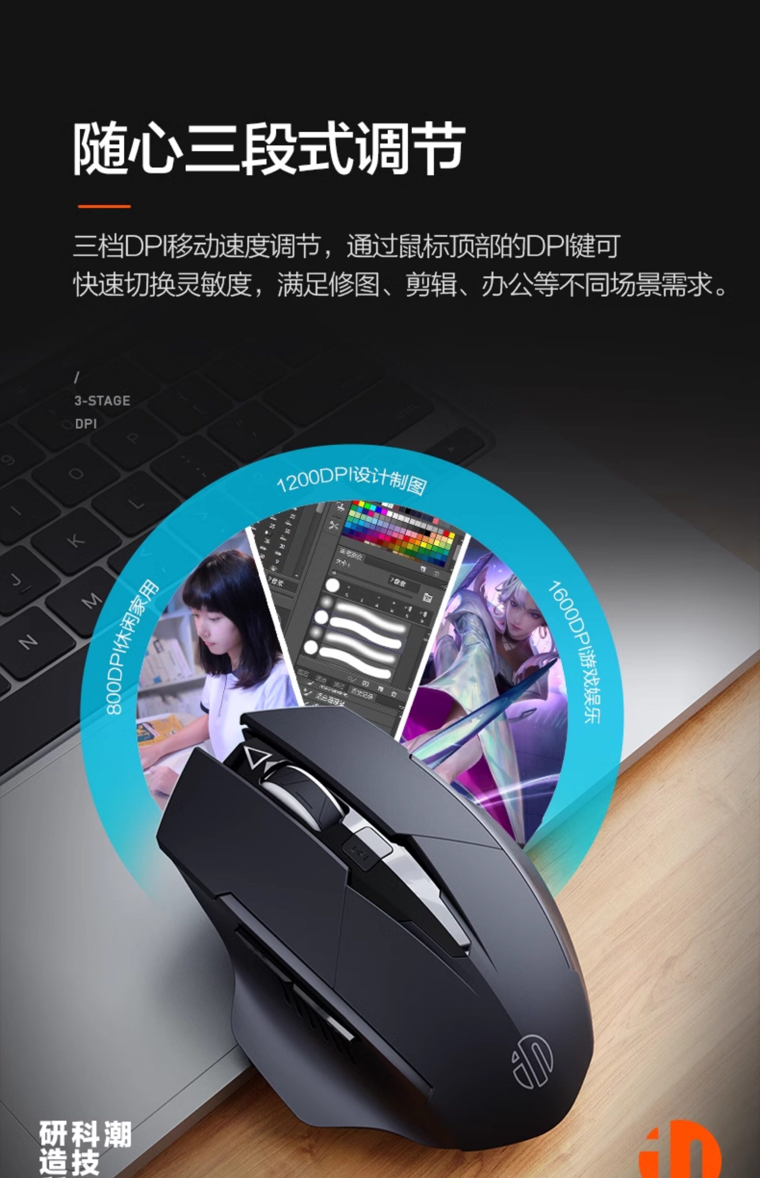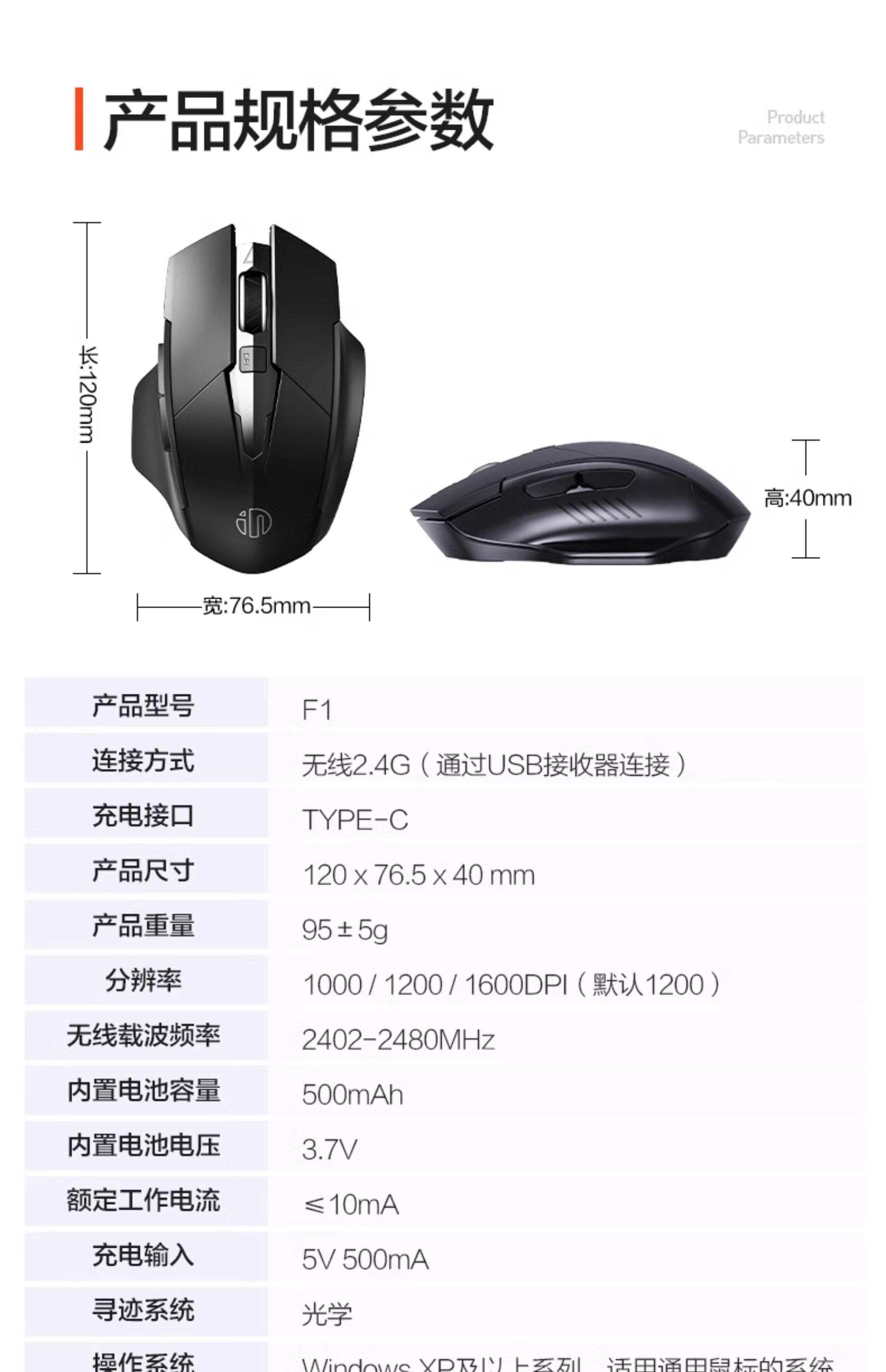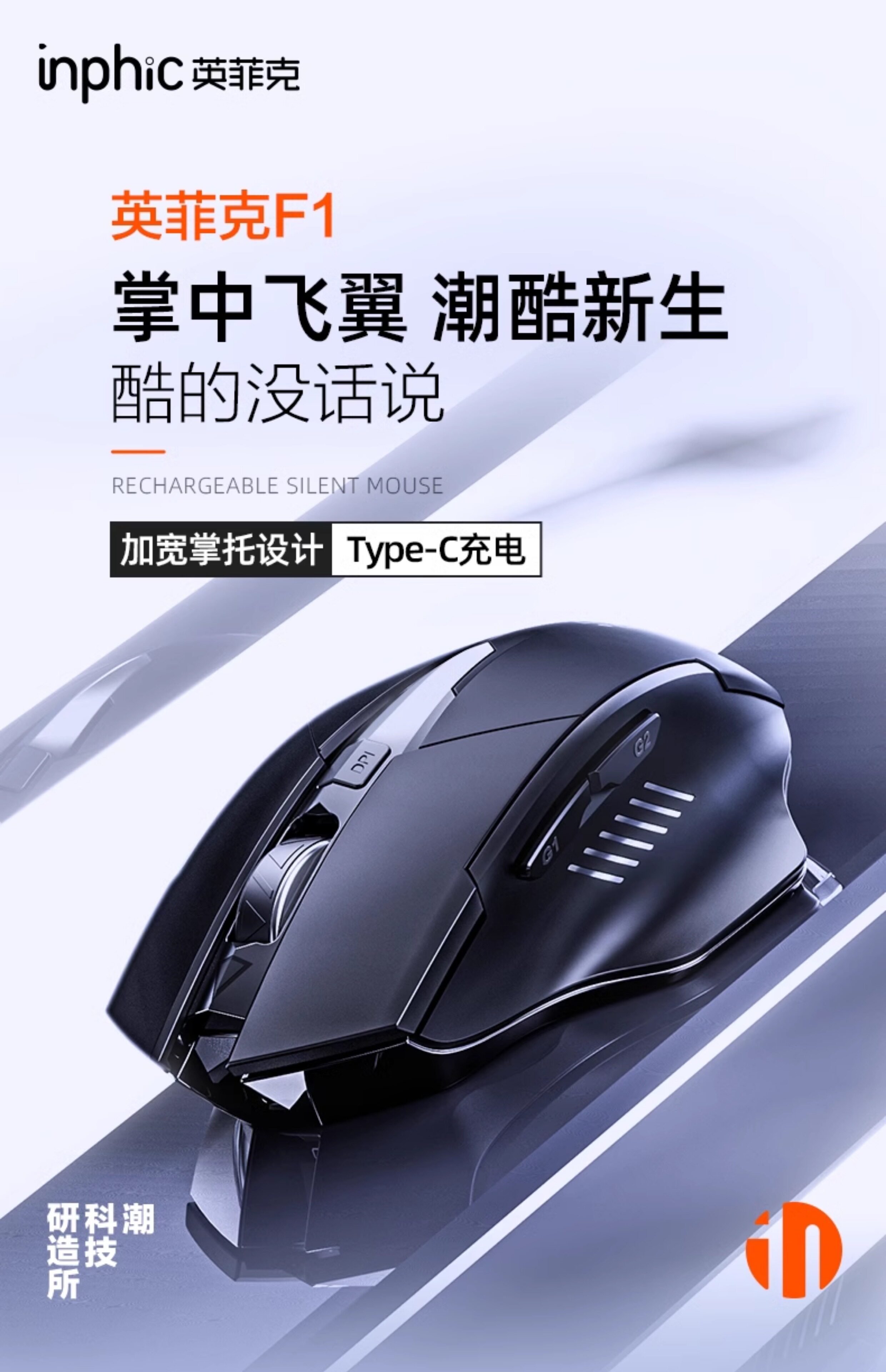 英菲克F1無線滑鼠可充電無聲辦公電腦家用桌上型筆電電競遊戯可攜式