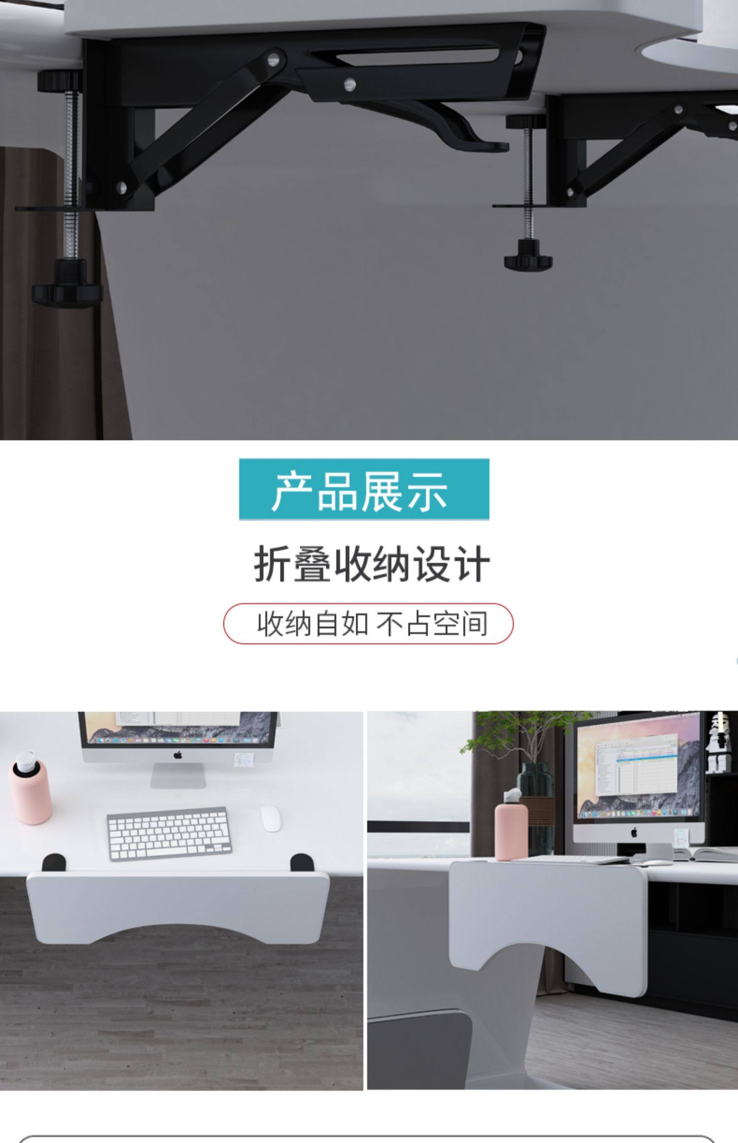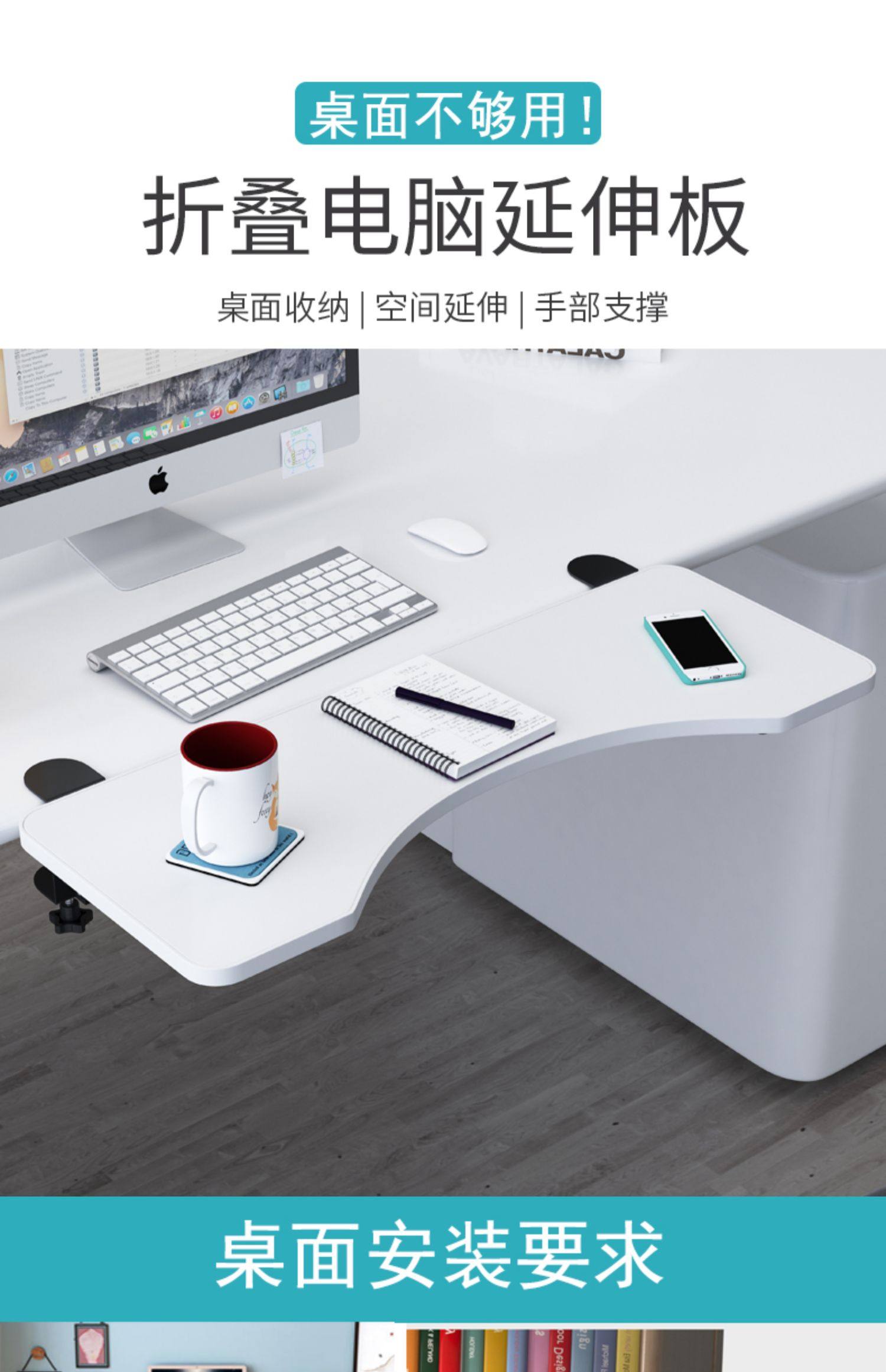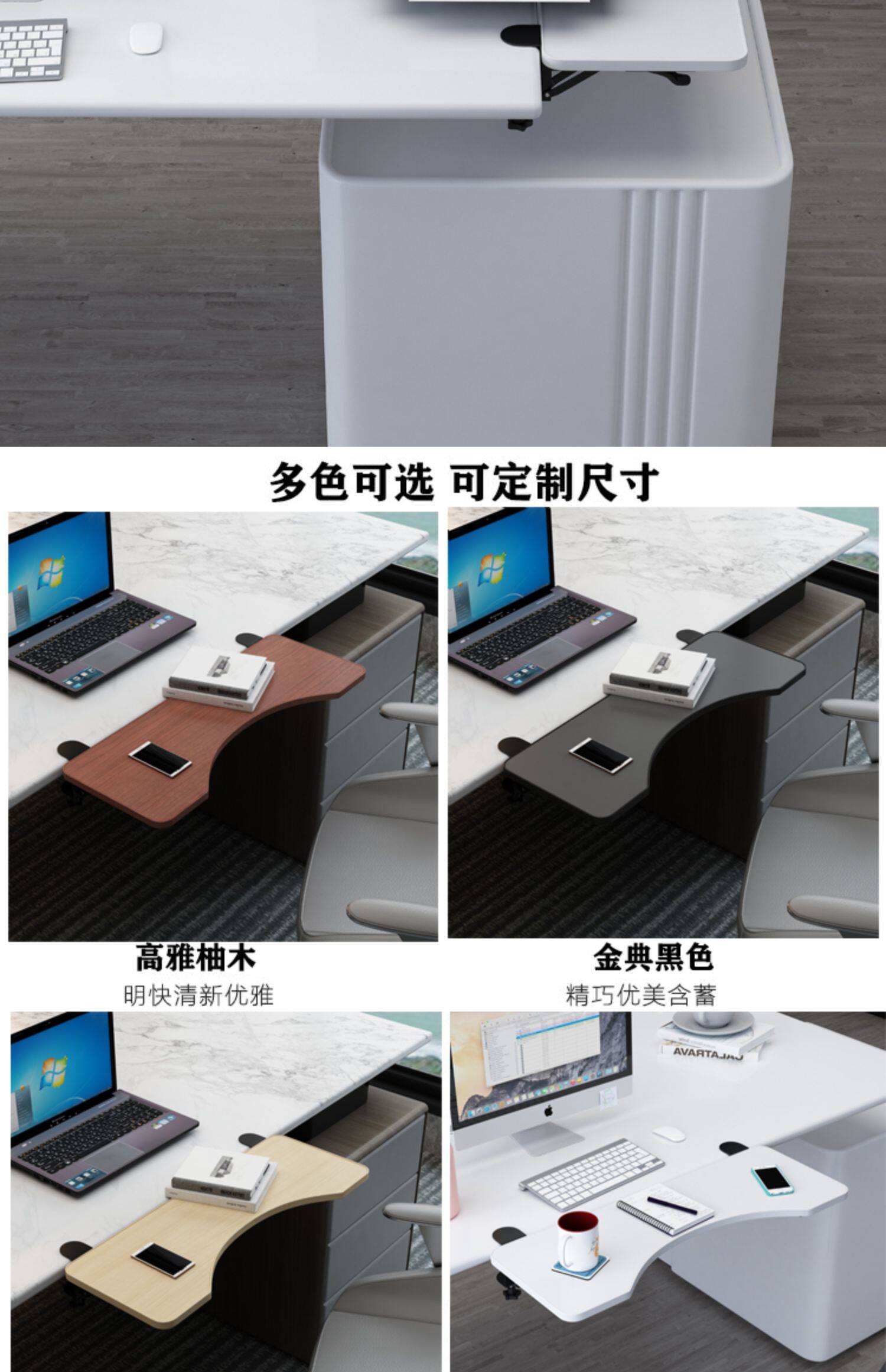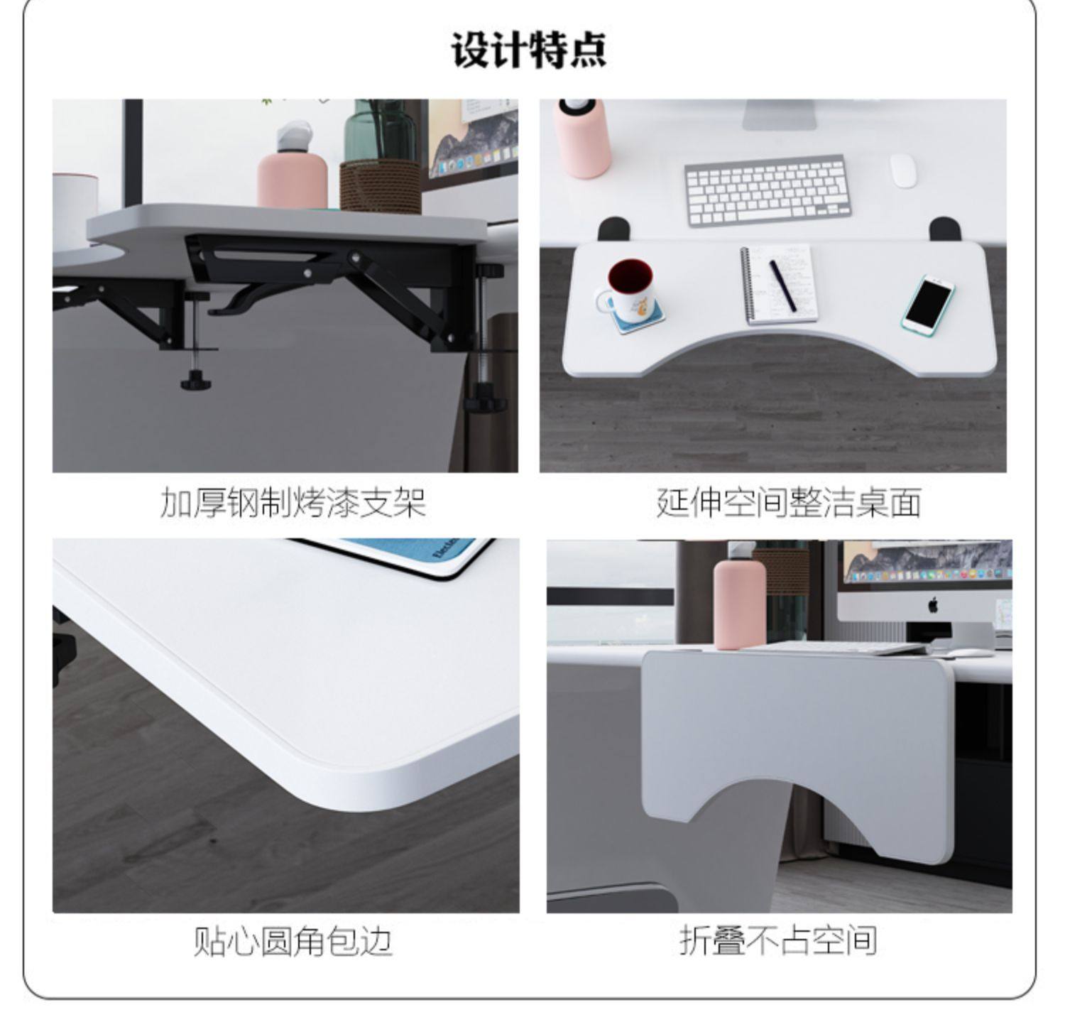 桌面延長板免打孔延伸加長加寬板鍵盤支架電腦桌子折曡板側面托架