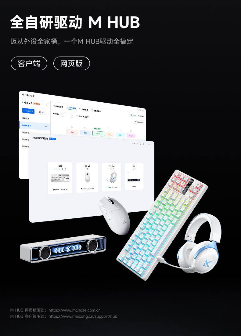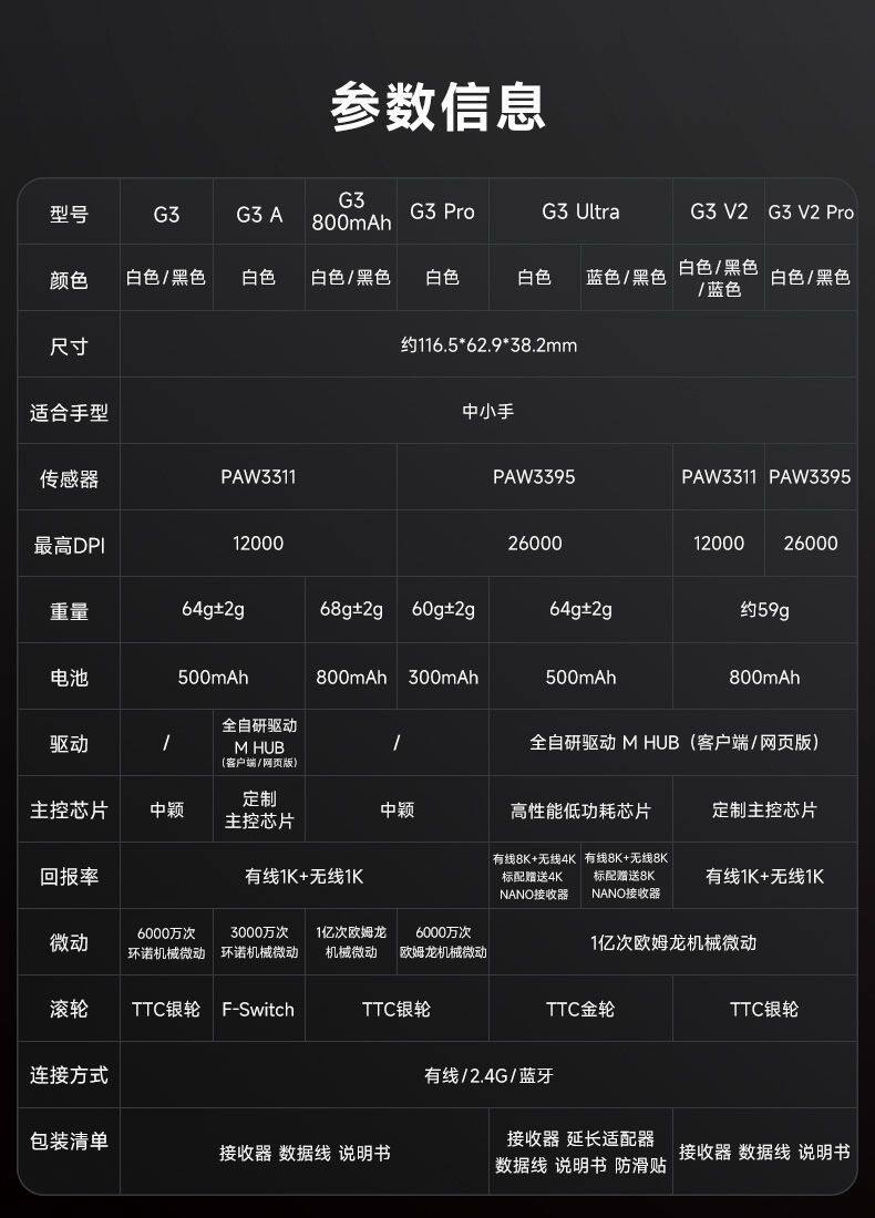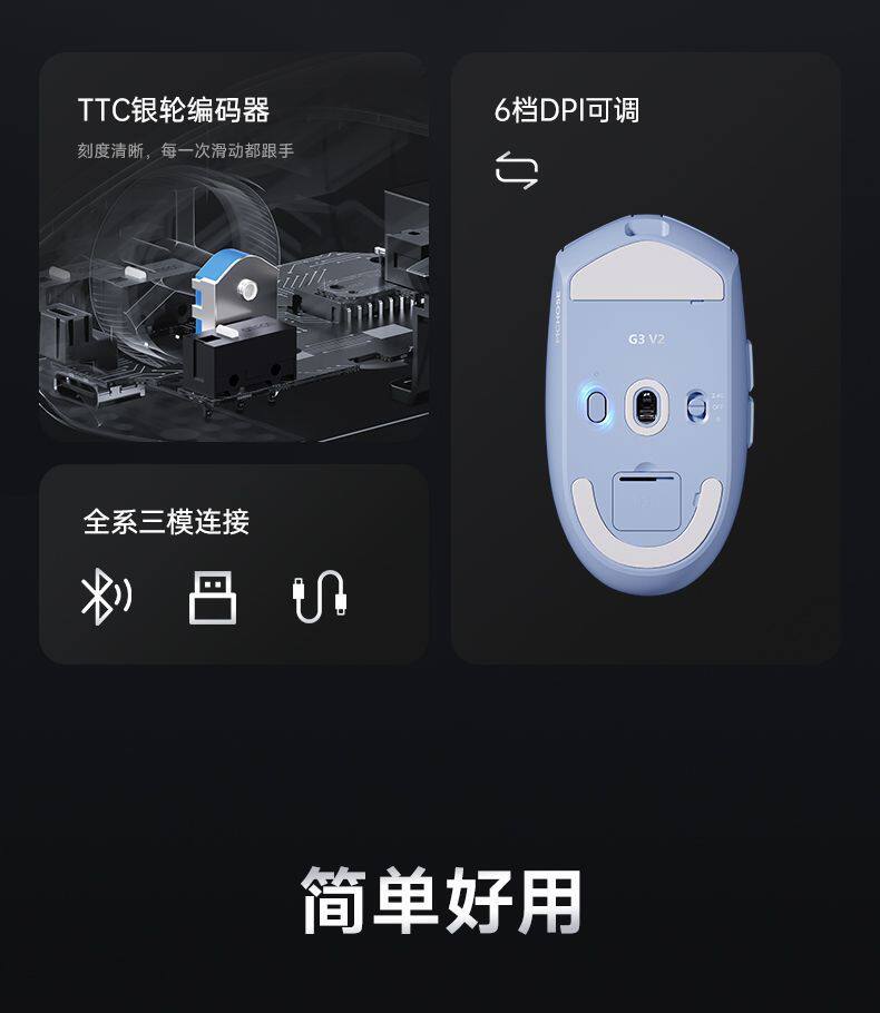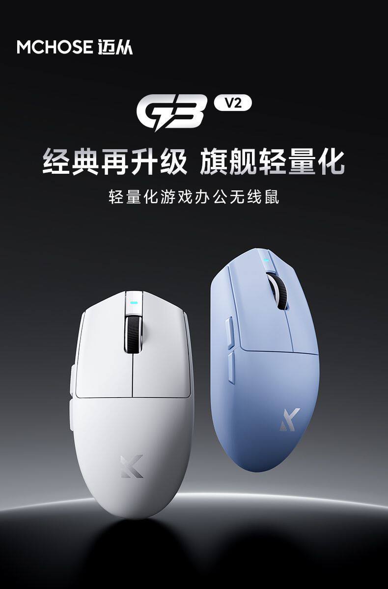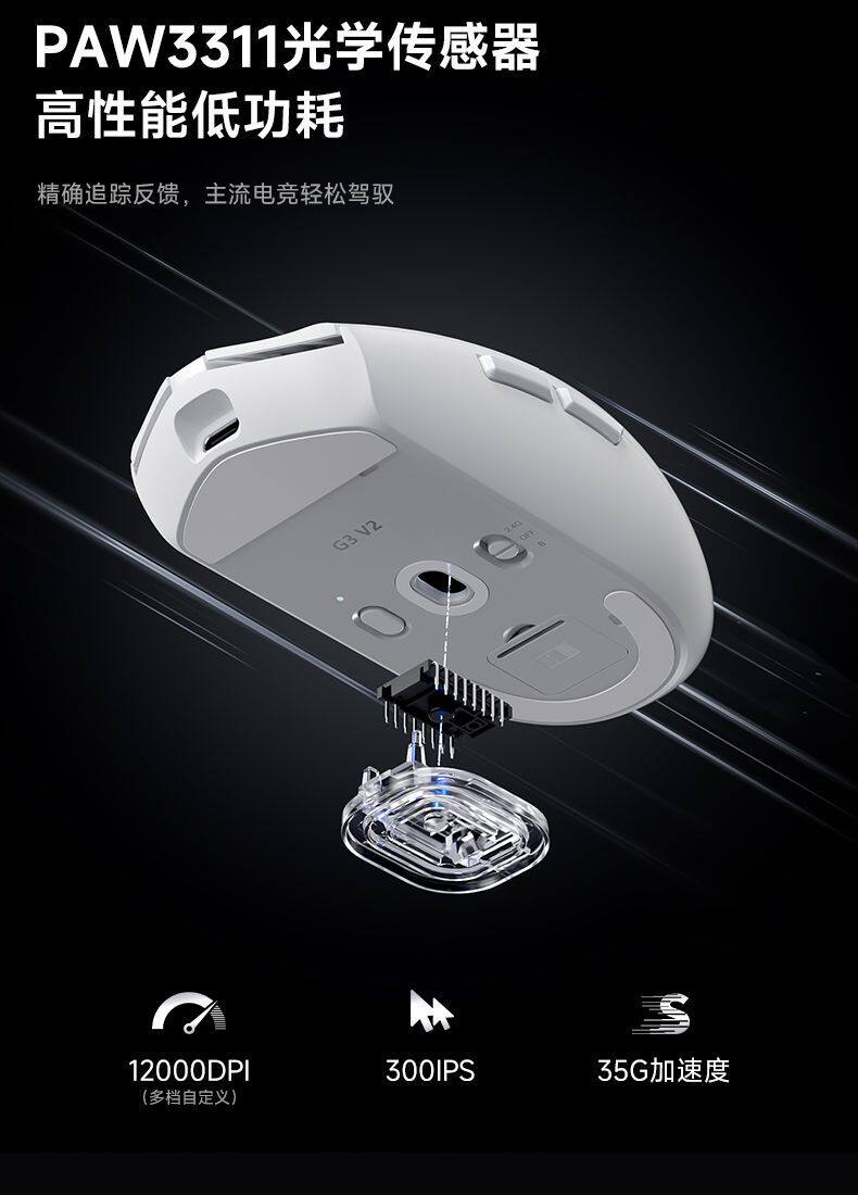 MCHOSE邁從 G3 V2Pro無線滑鼠可充電遊戯辦公PAW3395三模藍牙有線