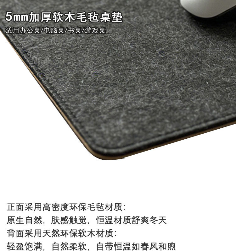 TENGFEI超大號毛氈軟木滑鼠墊鍵盤墊辦公學習電腦桌墊加厚書桌墊