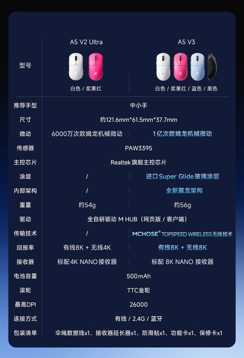 MCHOSE邁從A5 V3無線遊戯滑鼠藍牙三模3395電競專用Ultra輕量化V2