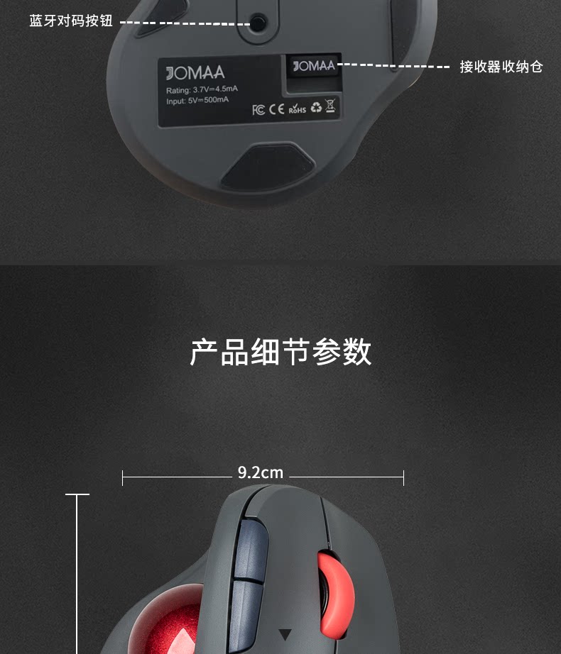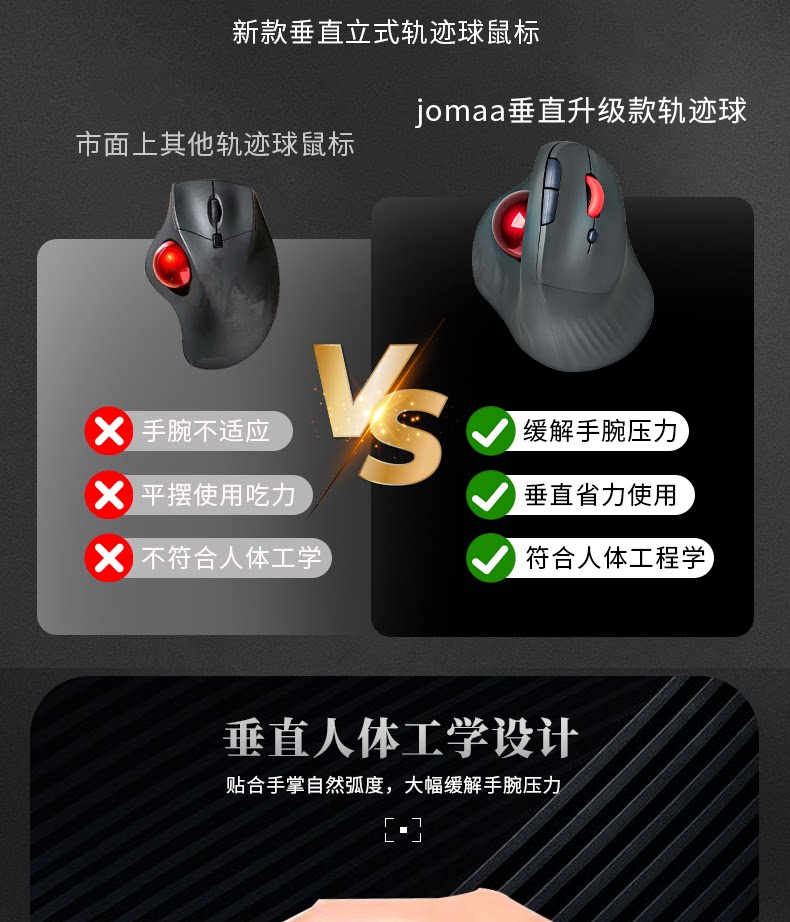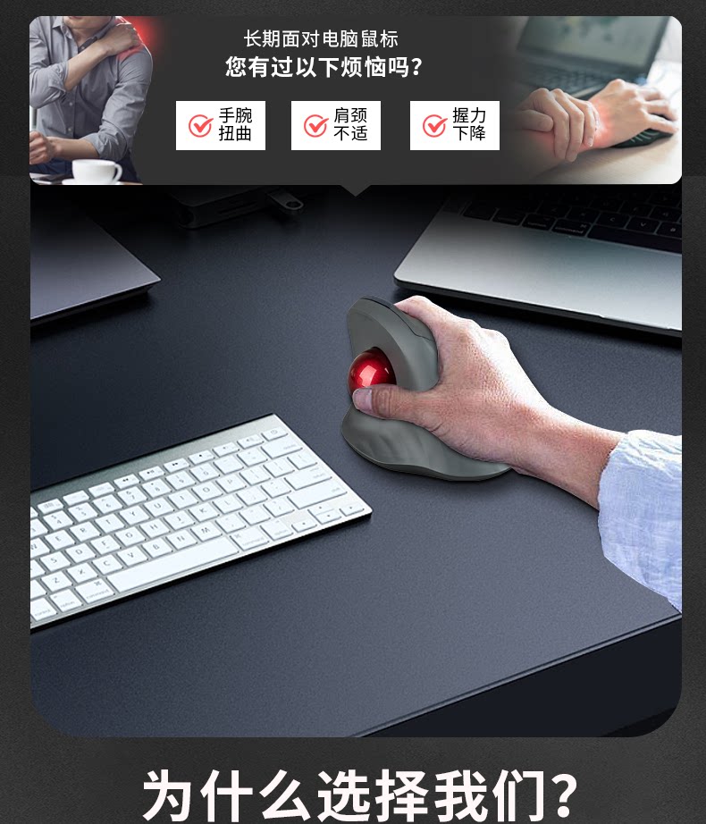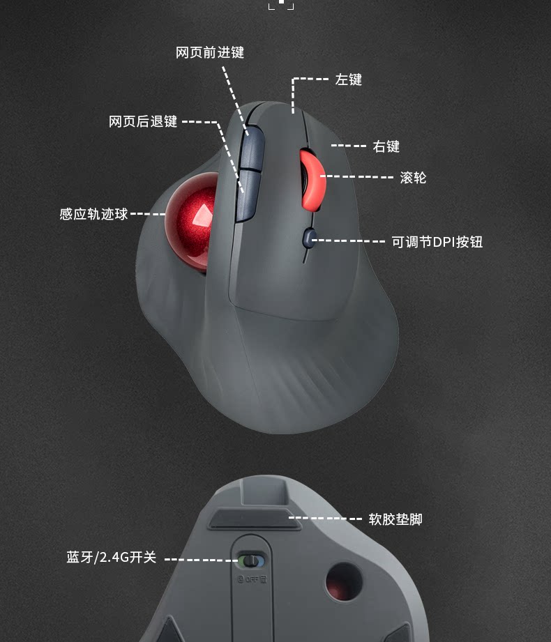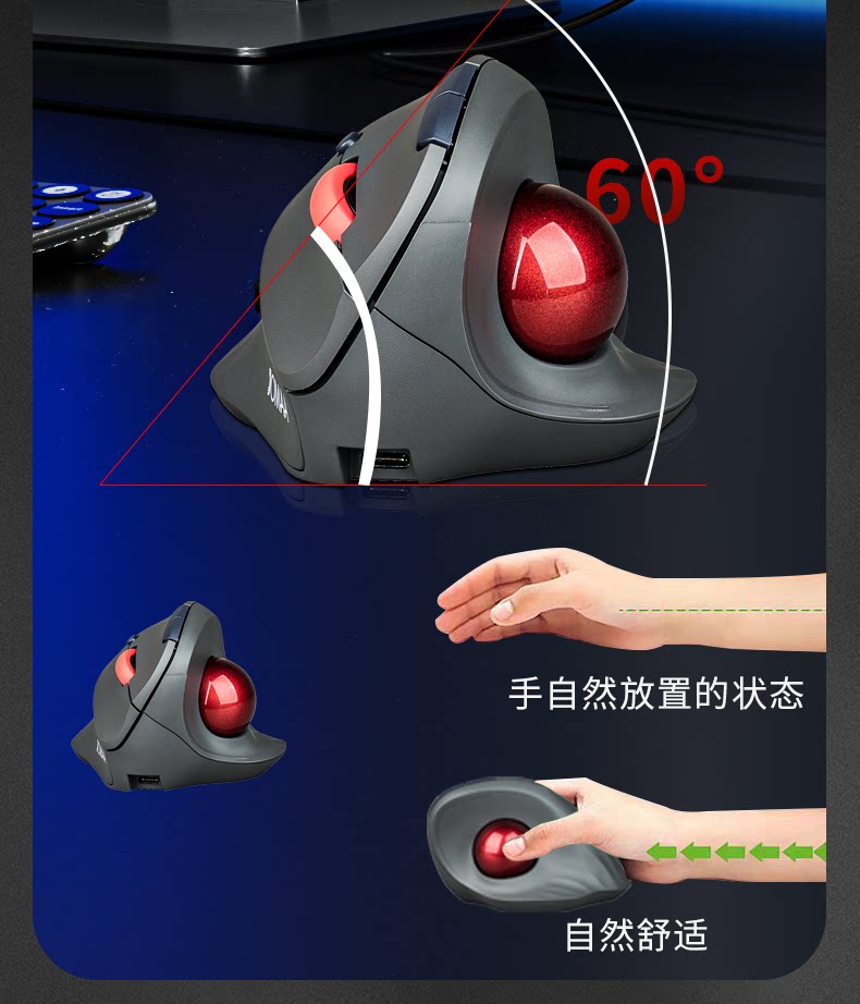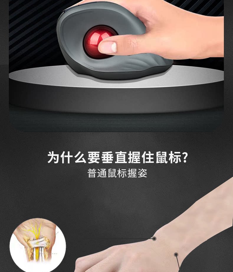 雙模垂直立式軌跡球滑鼠人體工學靜音拇指操控繪圖設計CAD電腦鼠