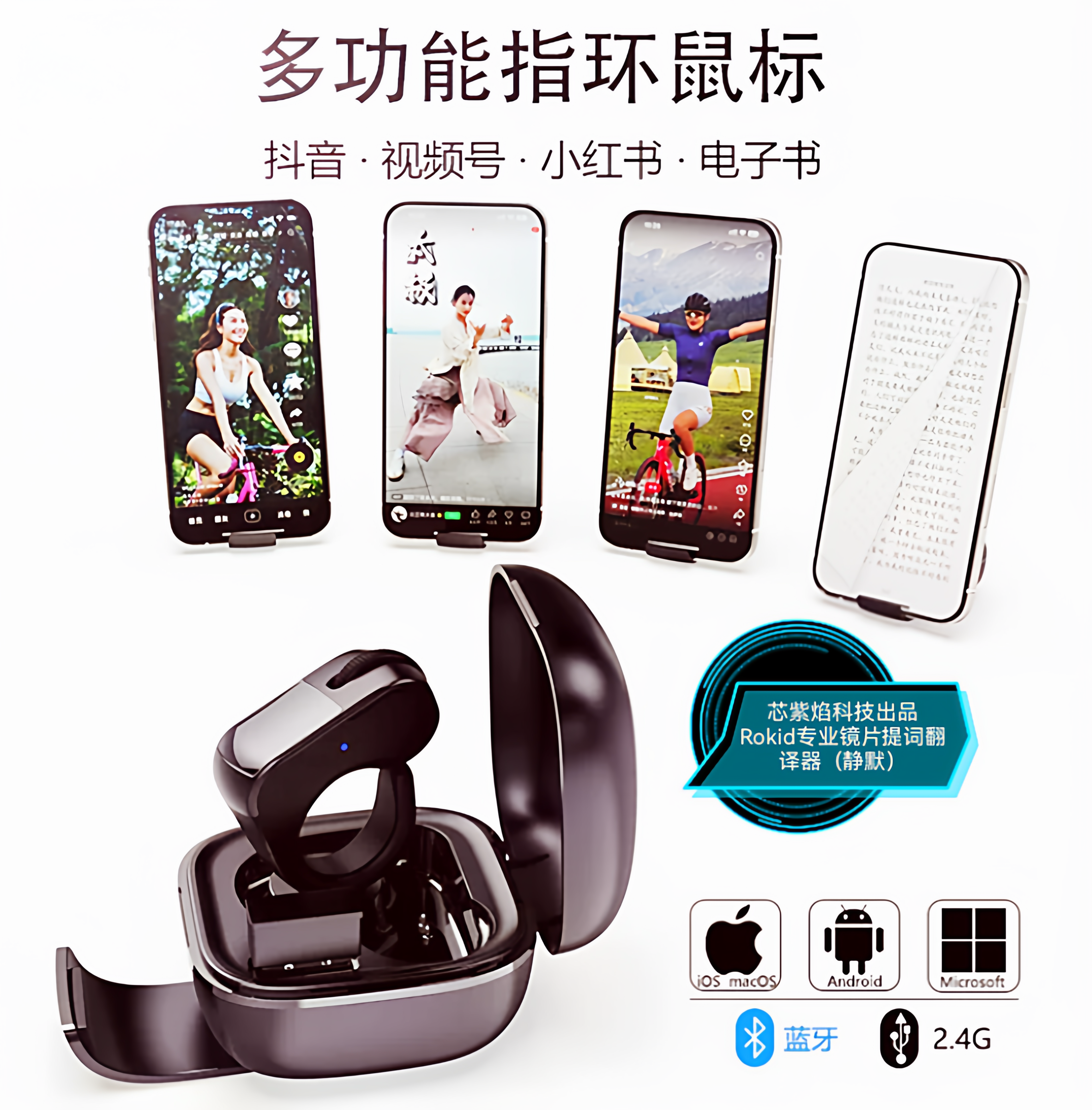 【rokid glasses】樂奇眼鏡標準版戒指繙頁提詞繙頁器-澳台直郵