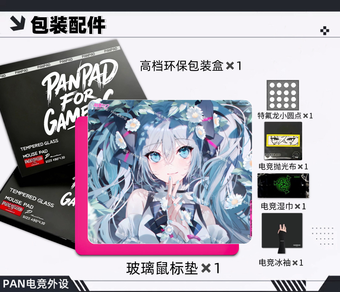 WALLHACK 初音miku4.0限定款電競鋼化玻璃滑鼠墊順滑玻璃墊復刻版