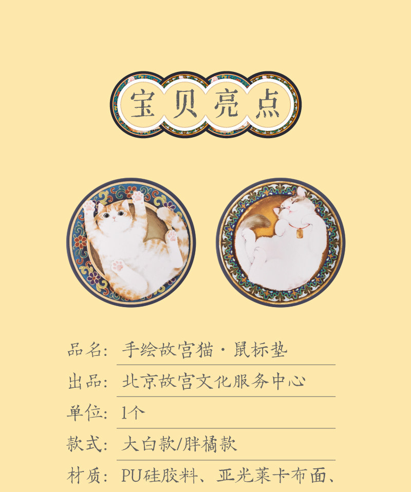 故宮淘寶|故宮貓滑鼠墊小號卡通可愛辦公加厚博物館文創禮物