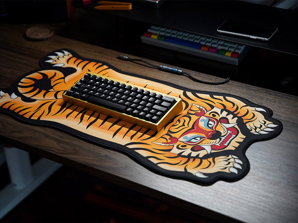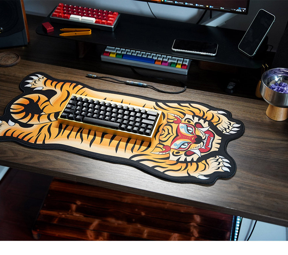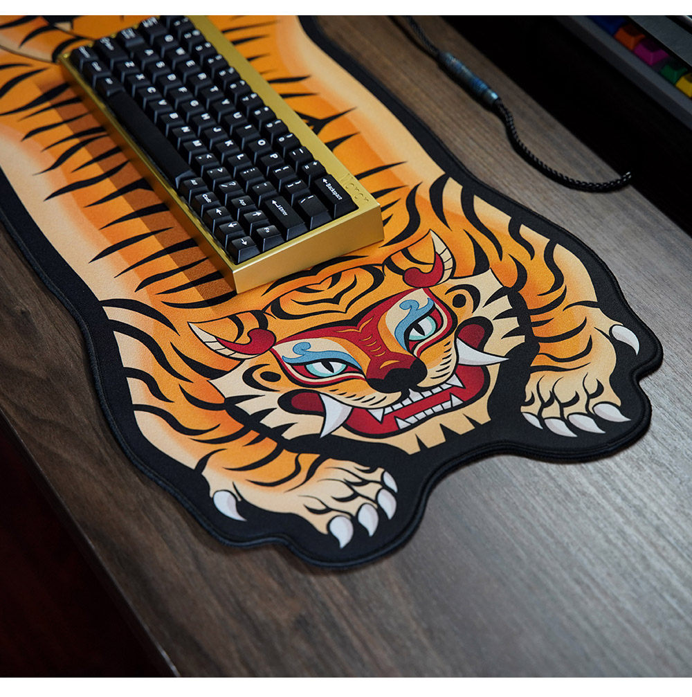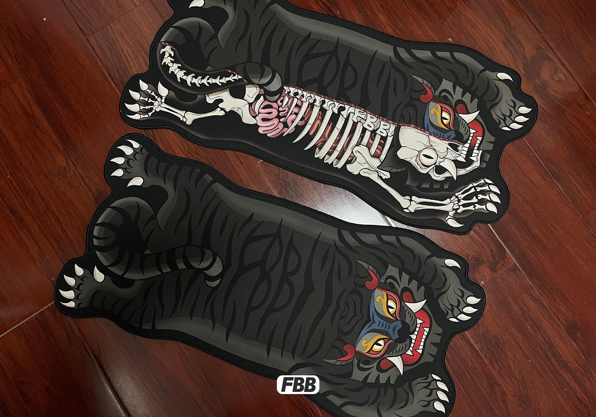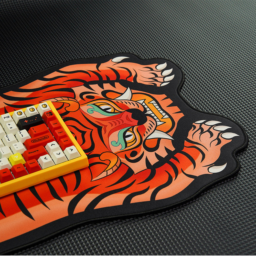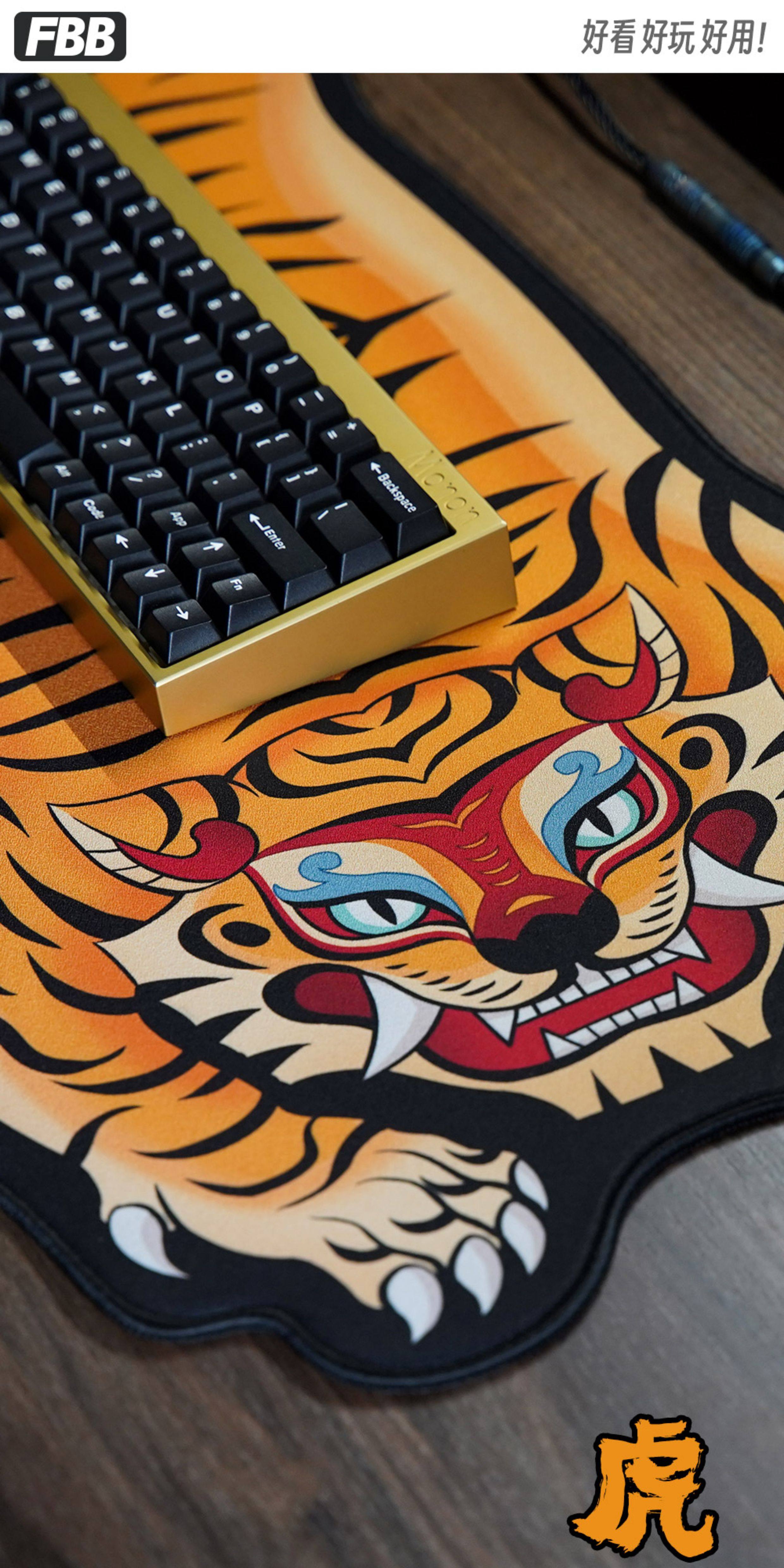 FBB原創國潮老虎異形滑鼠墊亂紋布粗面桌墊鎖邊個性創意墊子骷髏