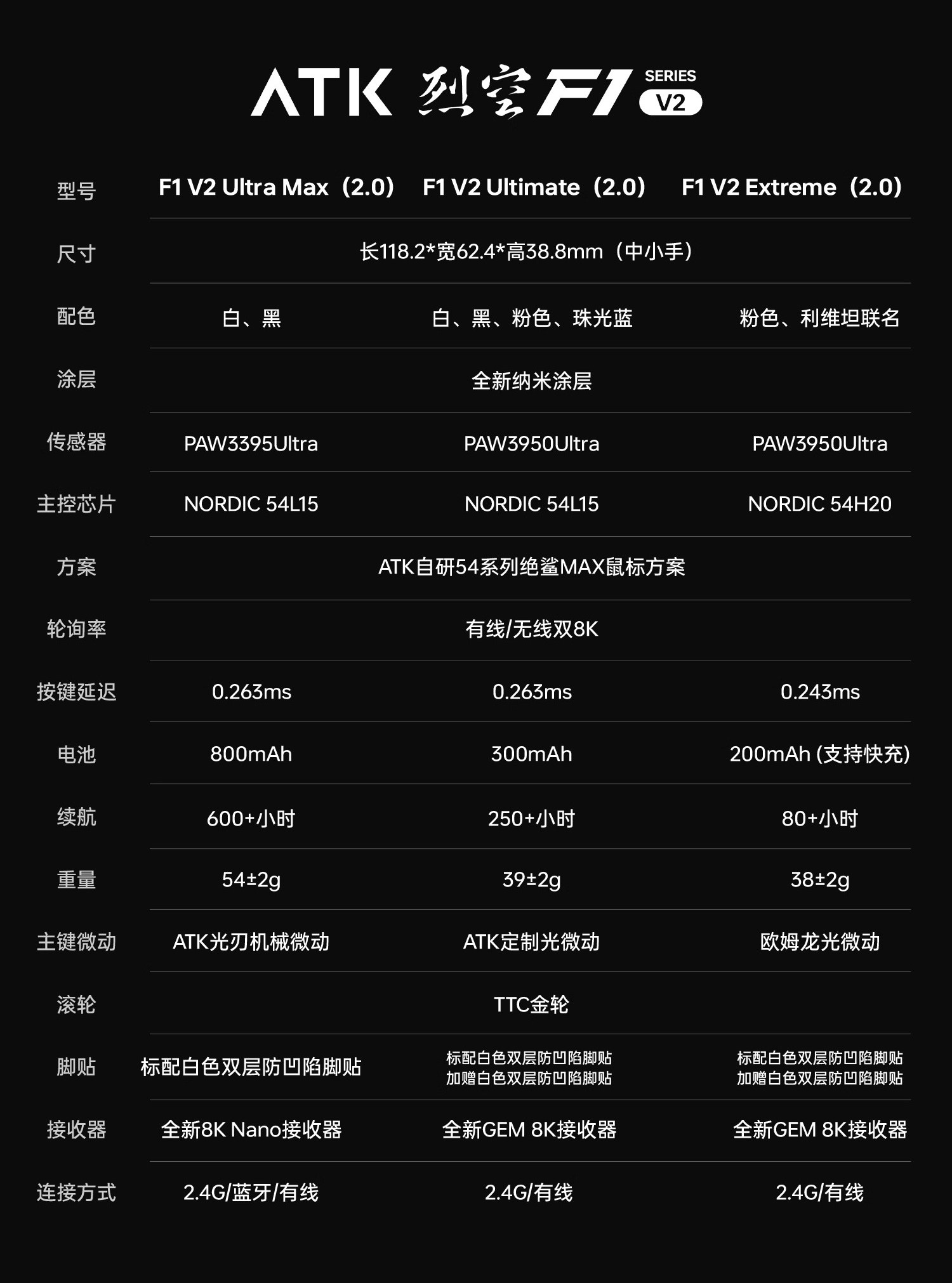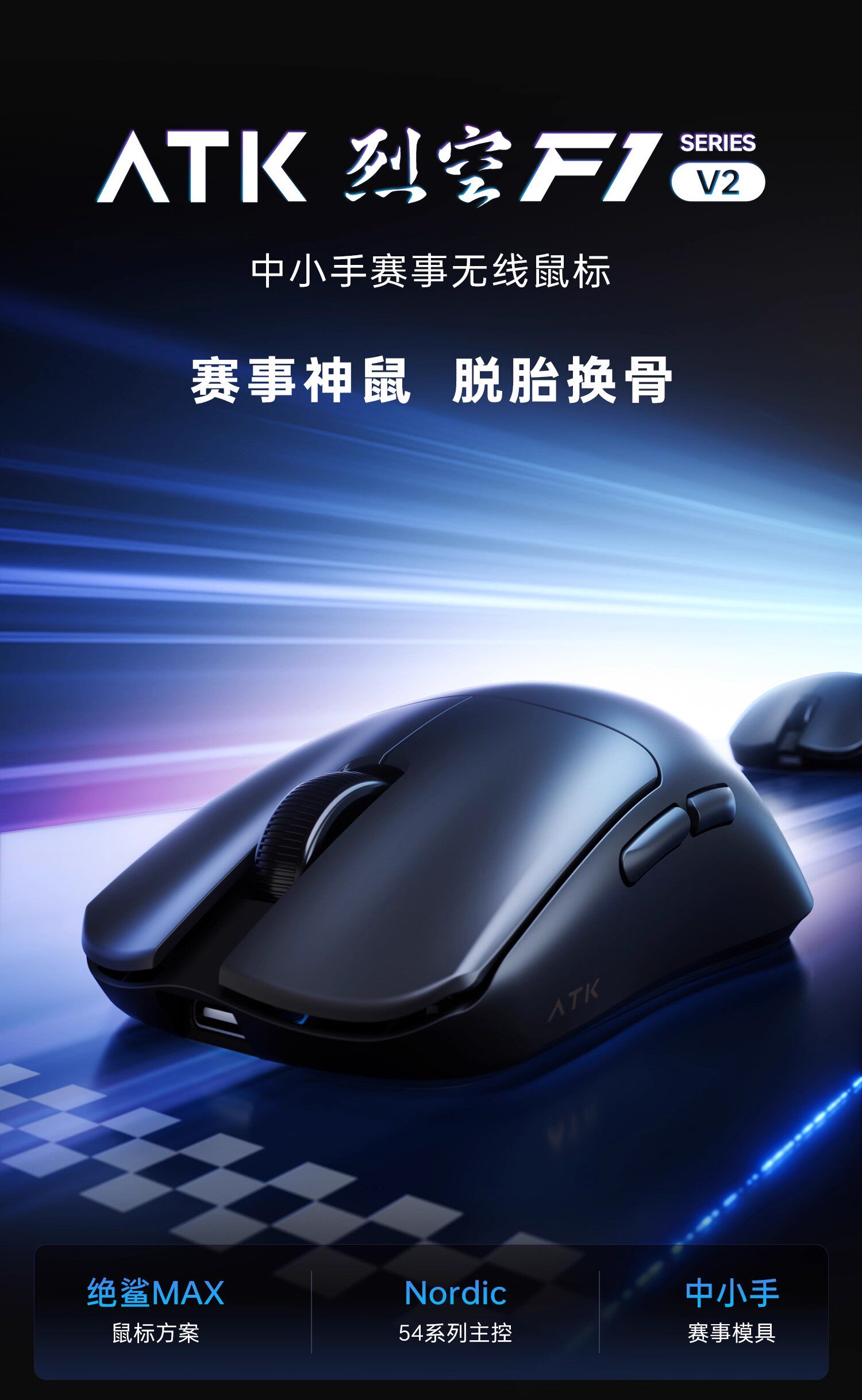 ATK 烈空F1V2中小手無線滑鼠輕量化遊戯電競辦公旗艦人體工學裂空