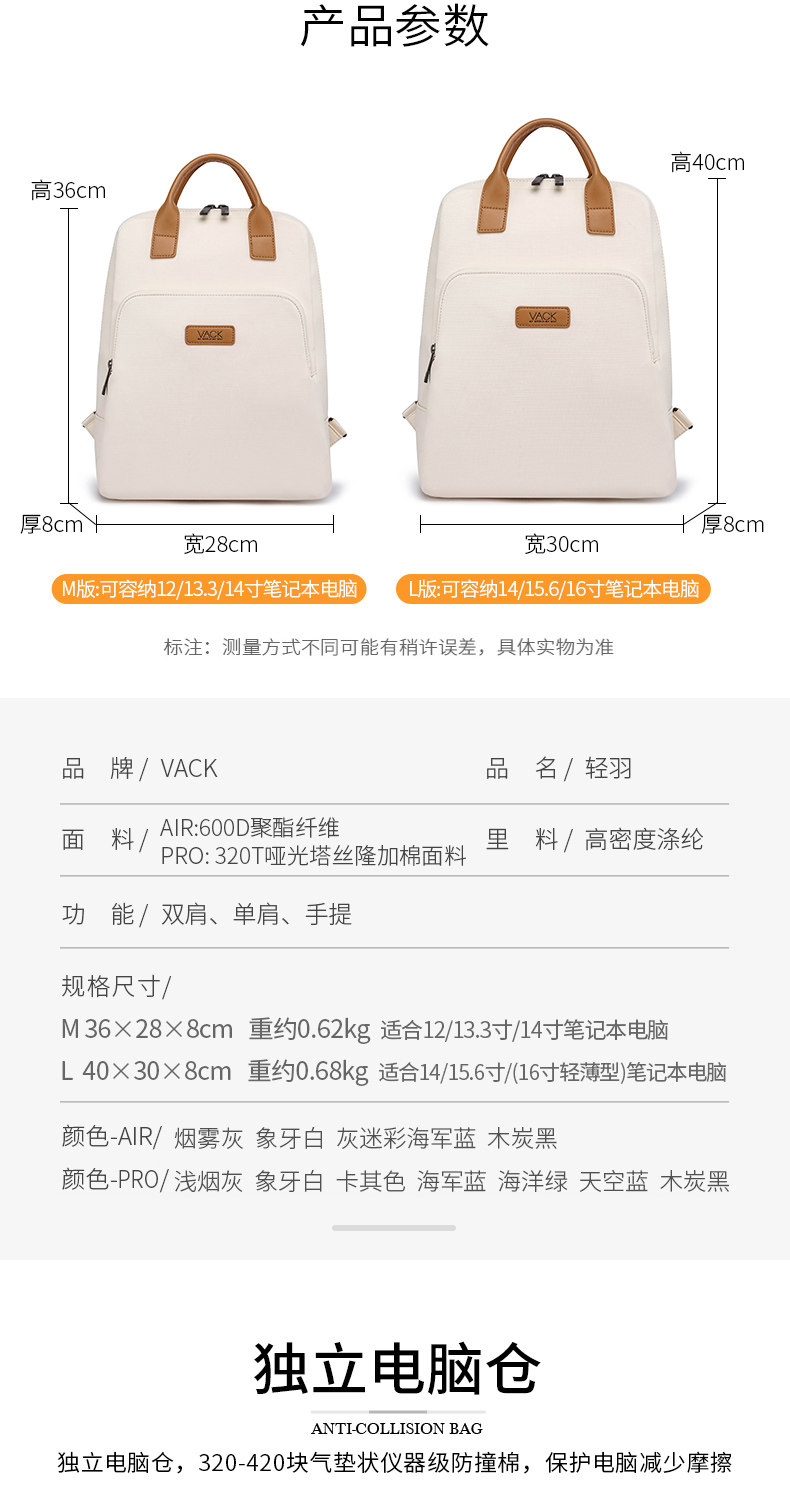 VACK簡約輕薄時尚男女雙肩16寸電腦包防震防水14手提13.3輕量後後背包