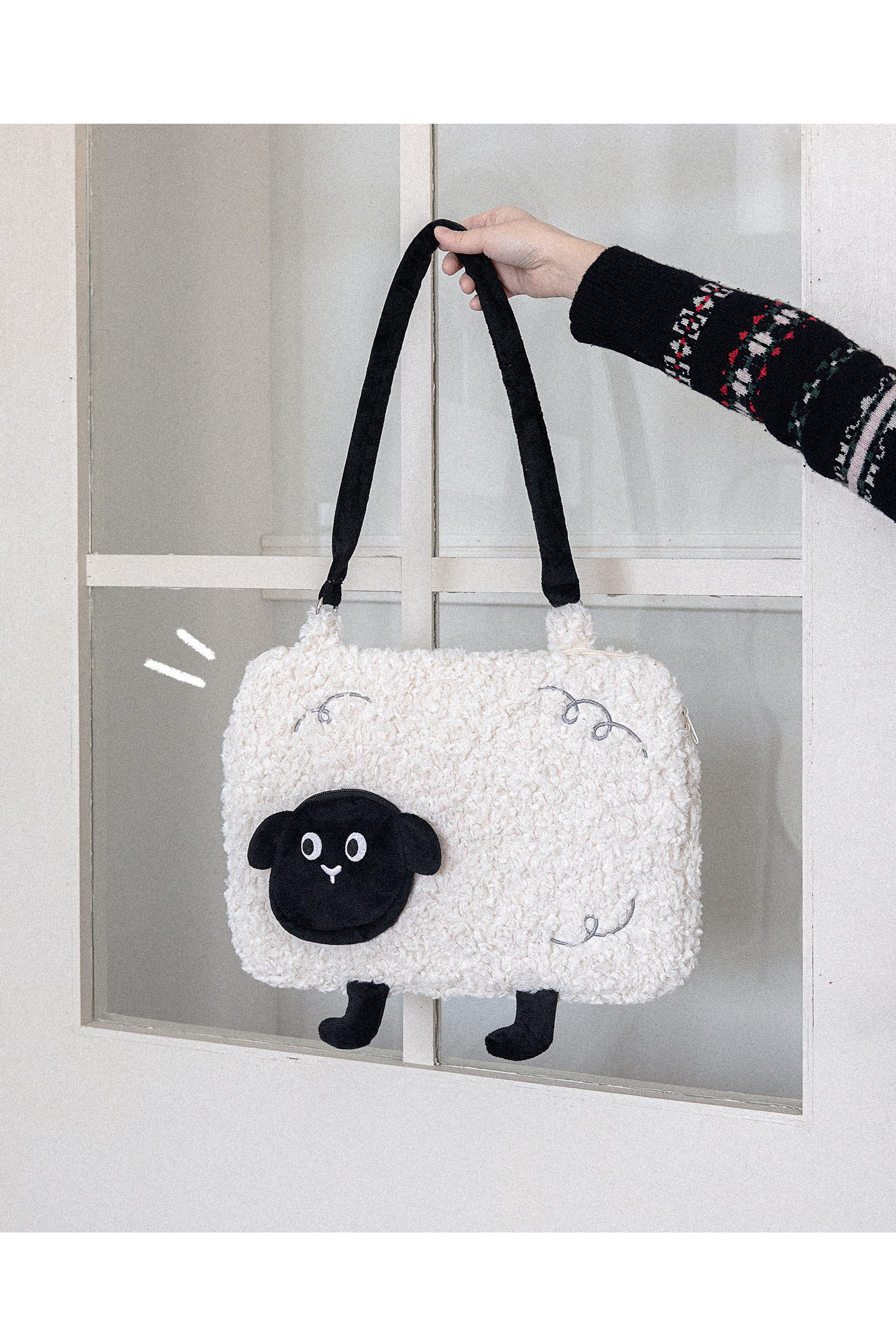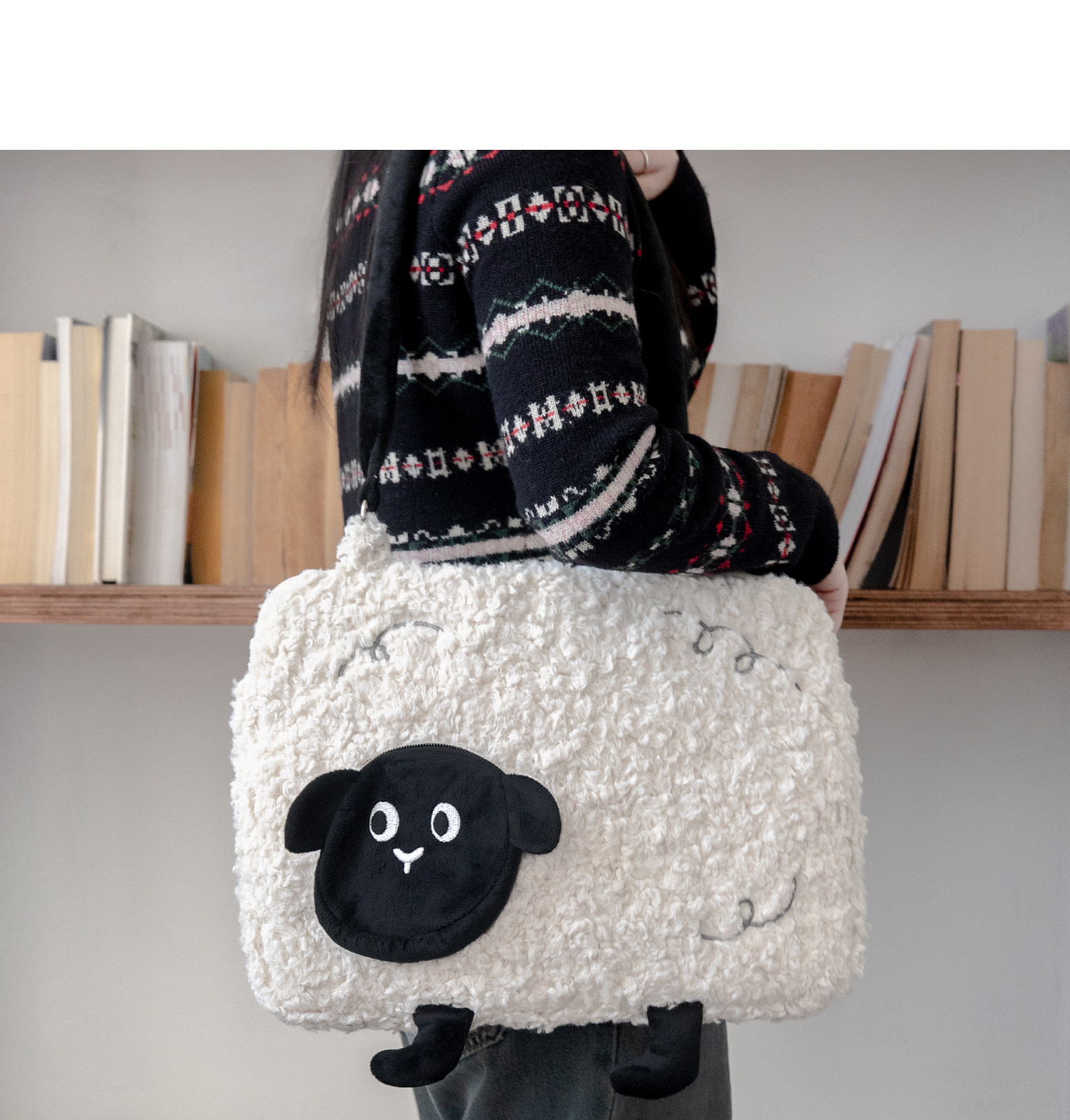 人間八月八丨原創綿羊電腦包羊羔絨可愛單肩防震保護ipad筆電收納包手提上課羊羔絨補習筆電收納包學生