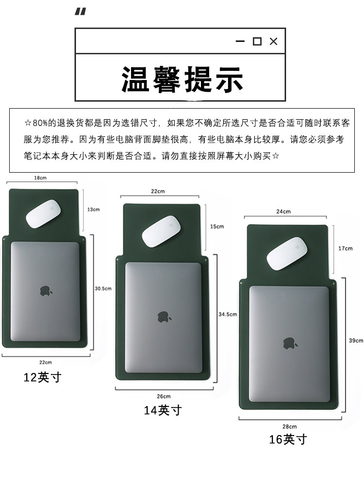 適用於華爲matebook14電腦包16寸蘋果13寸macbook內膽包筆記型電腦保護套matepad11寸平板包ipad收納包數碼