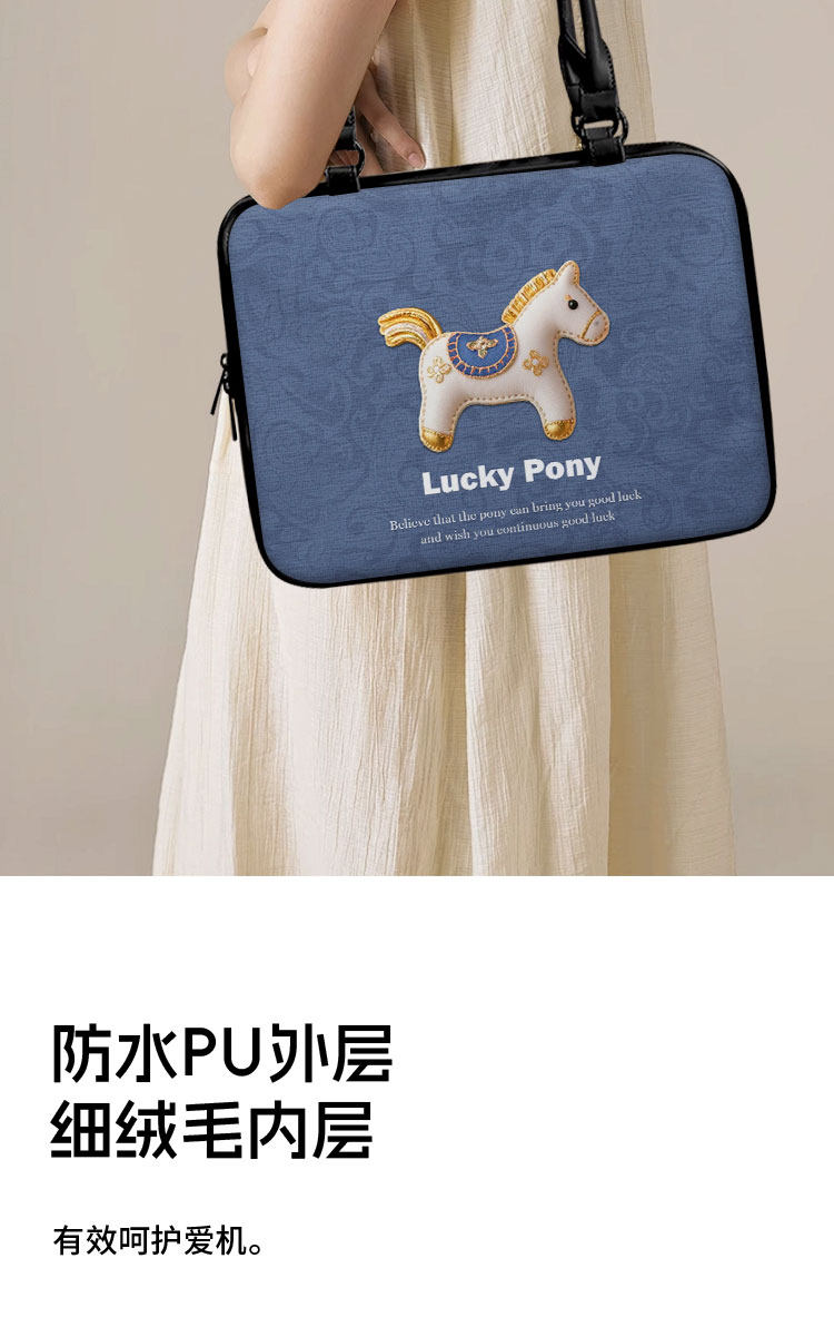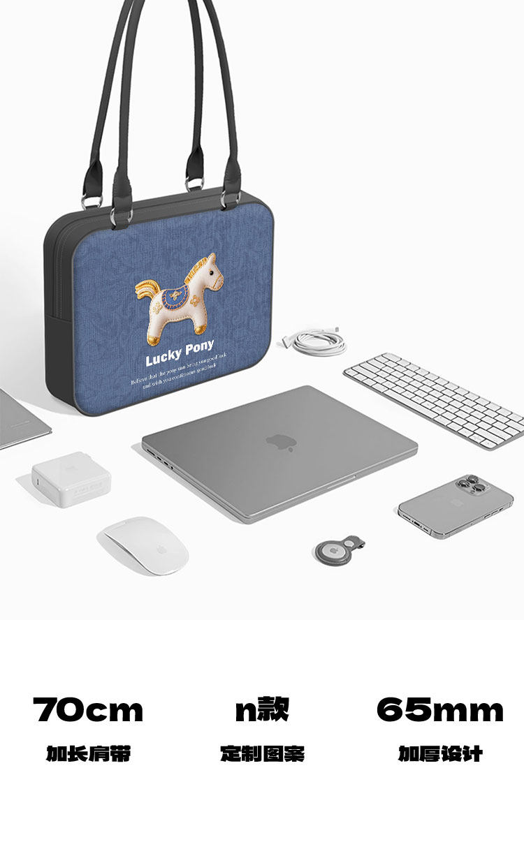 【趣物研所】創意小馬重磅單肩筆記型電腦包適用於蘋果macbook14寸小新air13華爲matebook聯想內膽包收納包