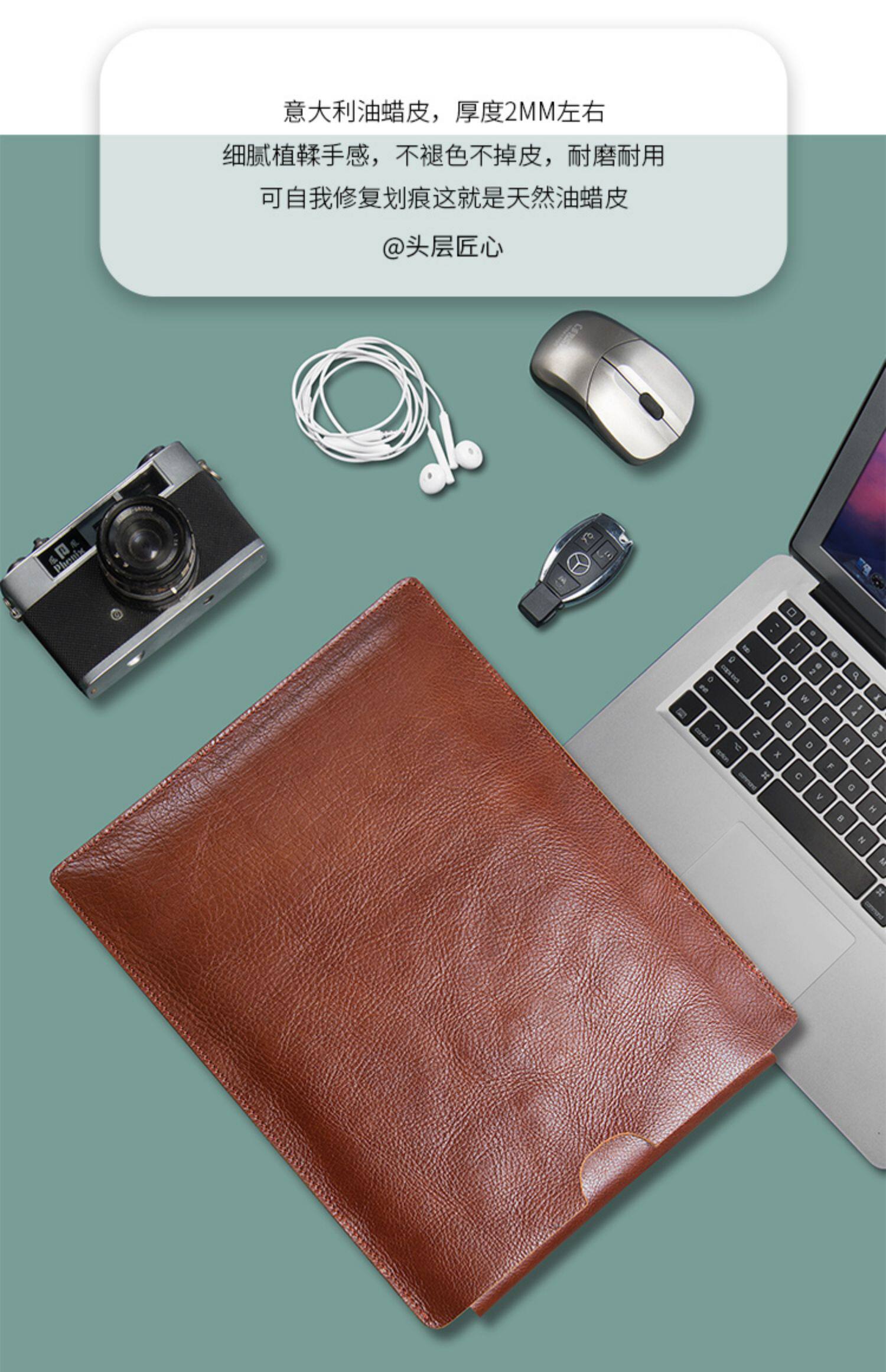真皮電腦包頭層牛皮筆電內膽包適用於蘋果華爲13寸14寸15寸16寸