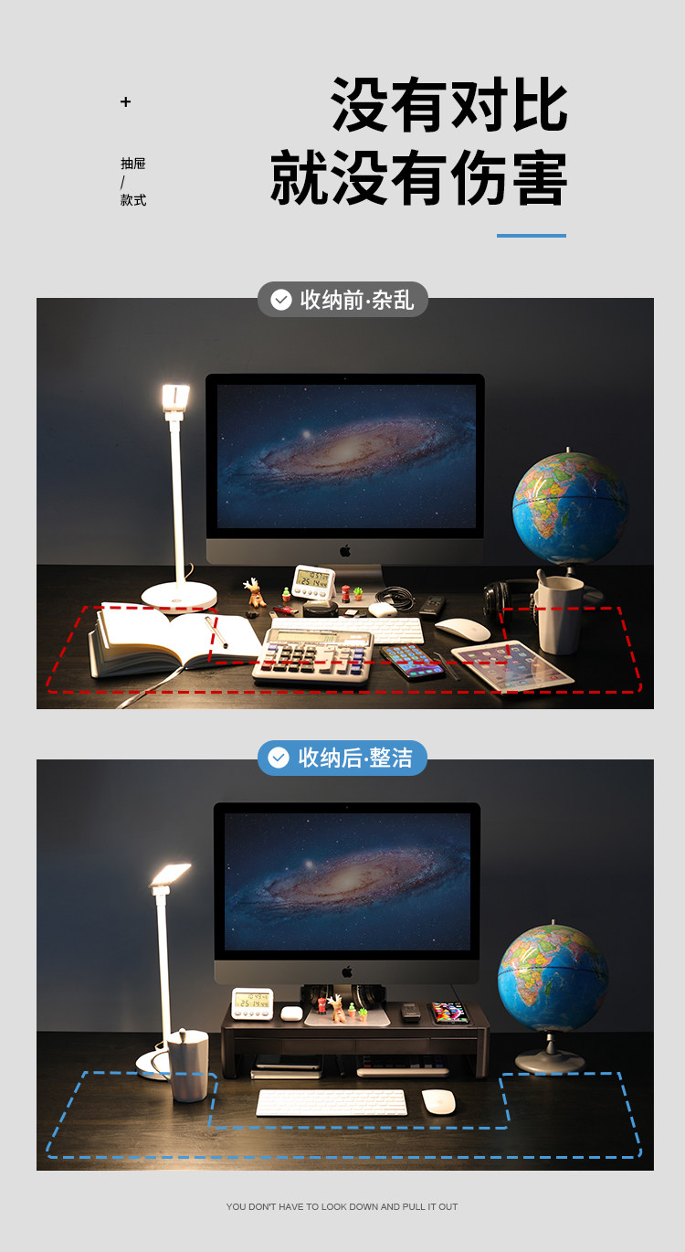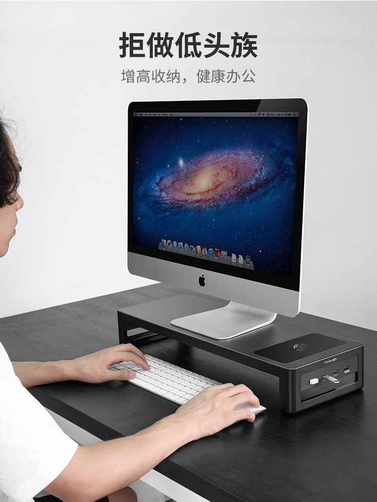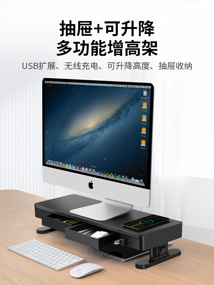 可調升降顯示器增高架辦公室桌面筆電桌上型機托架帶鍵盤收納抽屜