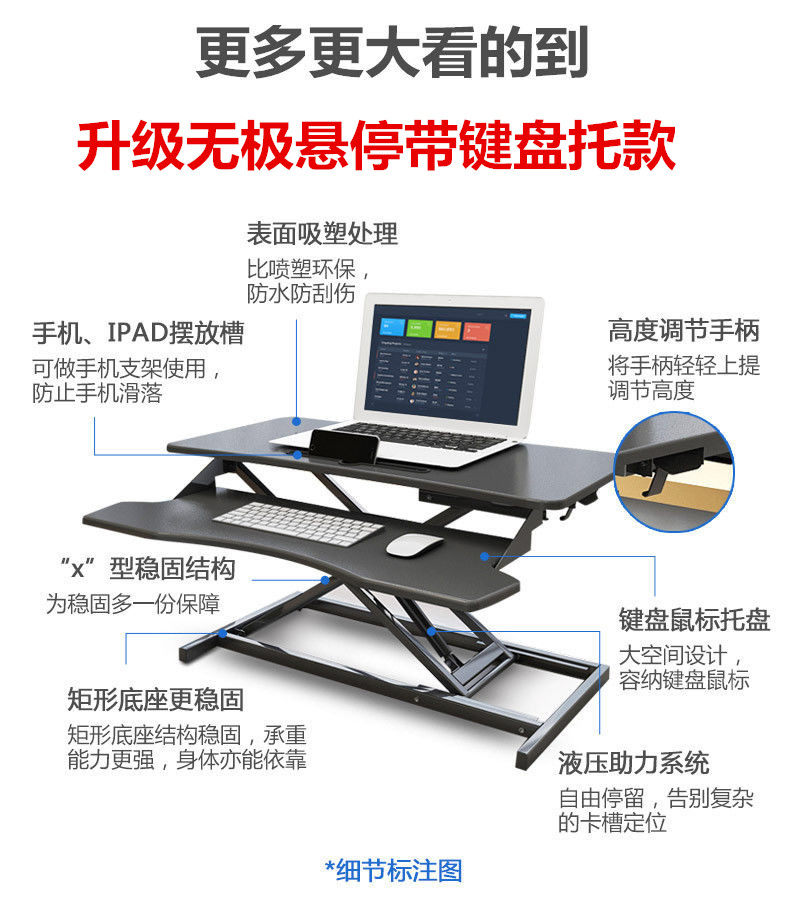 站立式電腦升降支架折曡站立辦公筆記型電腦桌桌上型桌面增高工作台