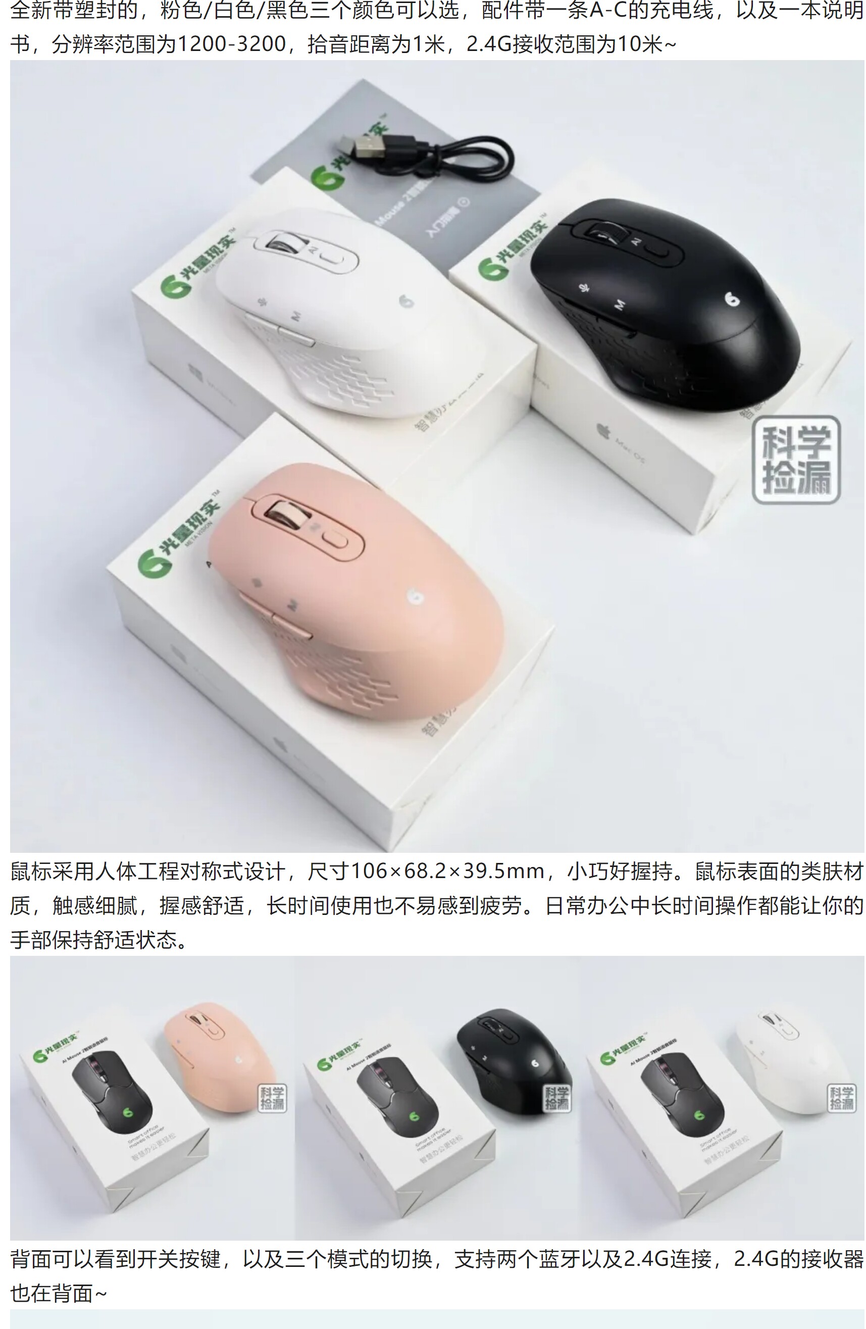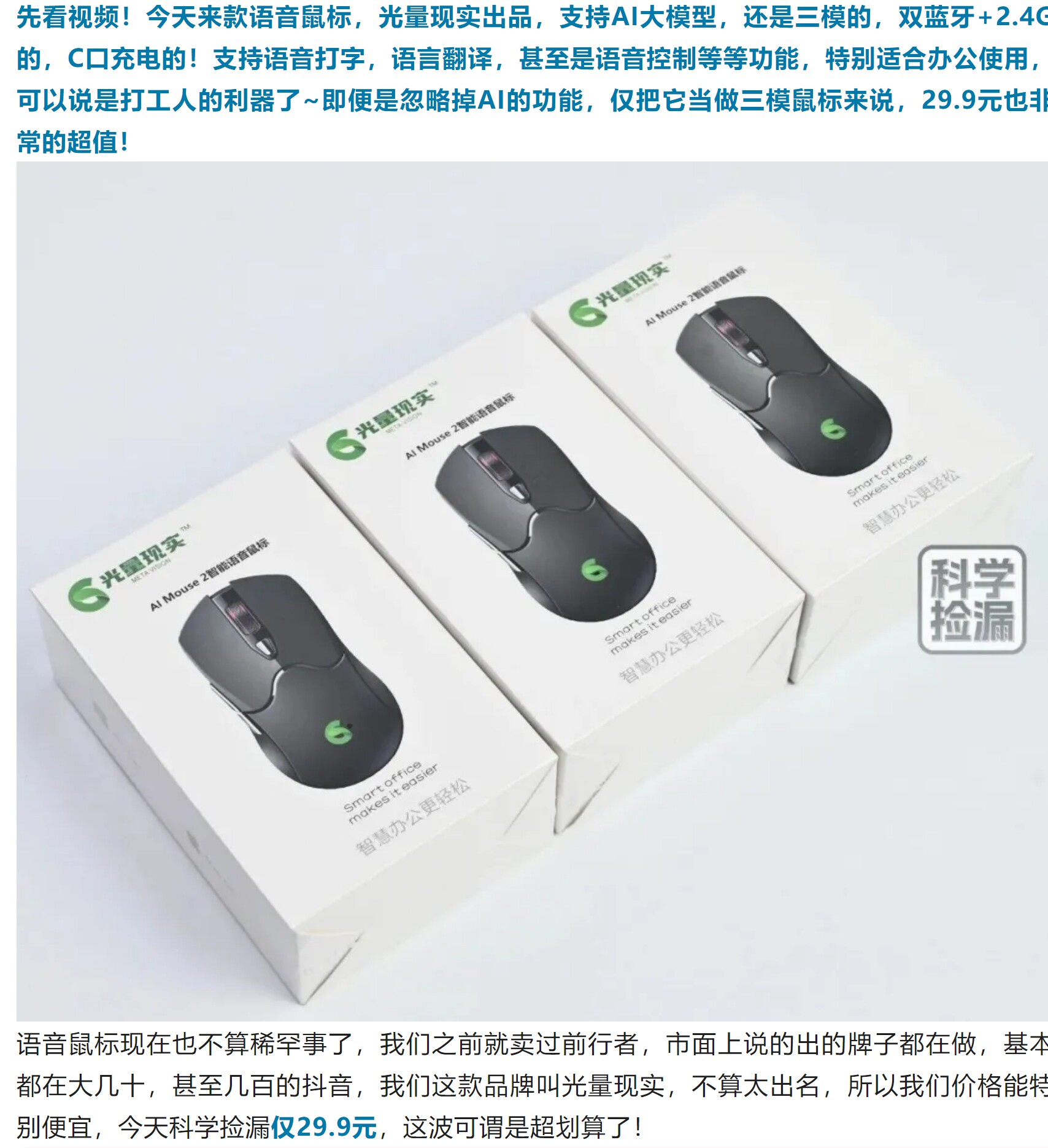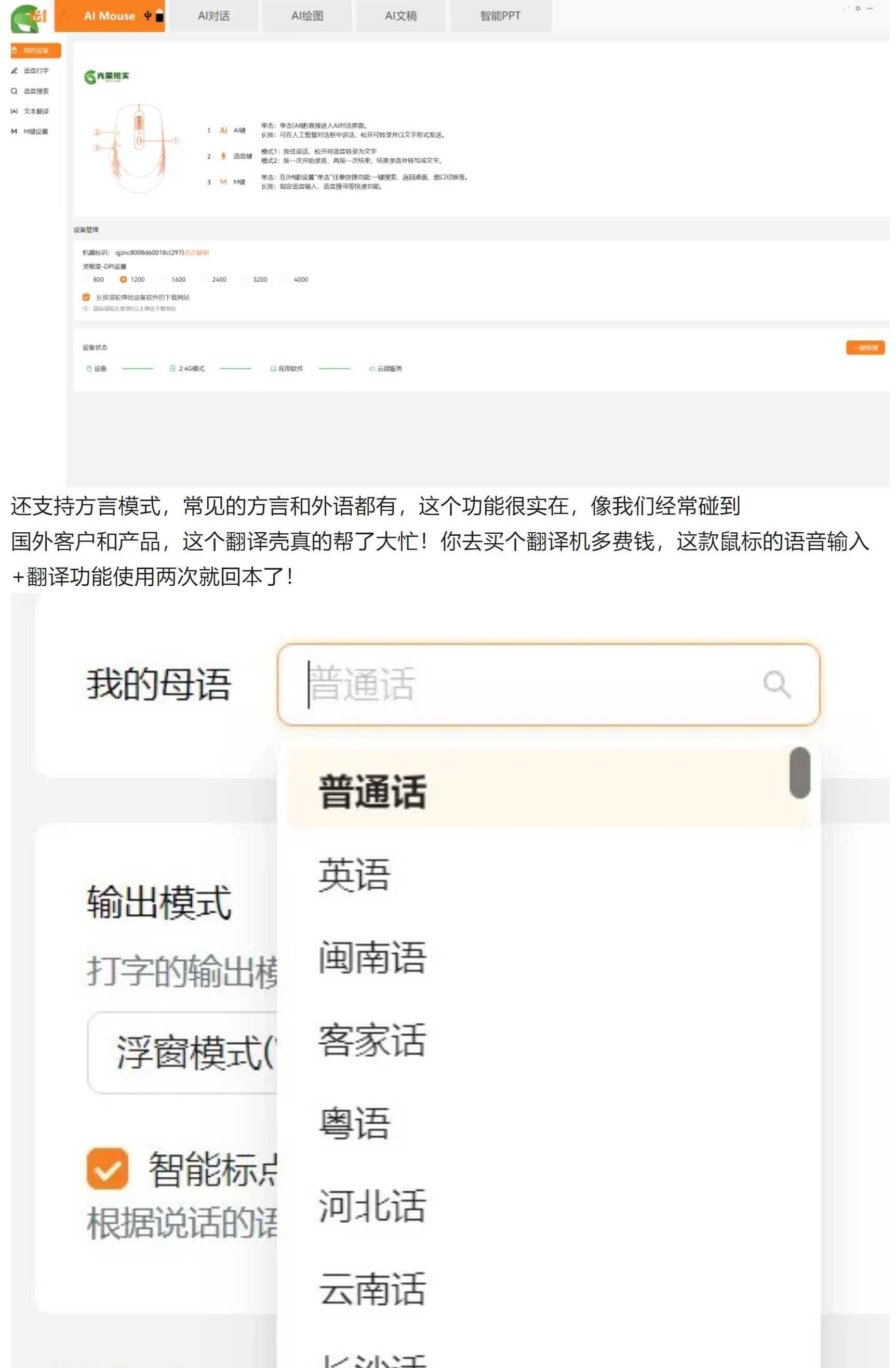 光量現實智能AI語音滑鼠無線藍牙2.4G可充電可攜式寫作PPT辦公