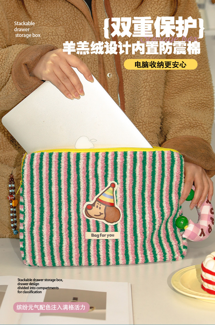 電腦包羊羔絨平板收納袋可攜式手提辦公包防磕碰手提筆電收納袋