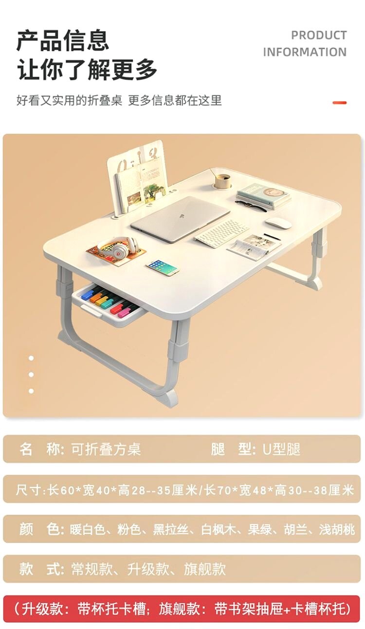 床上書桌折曡小桌子可升降懶人桌學生學習桌飄窗臥室坐地宿捨神器