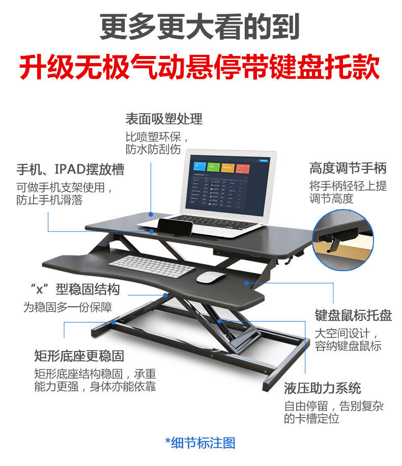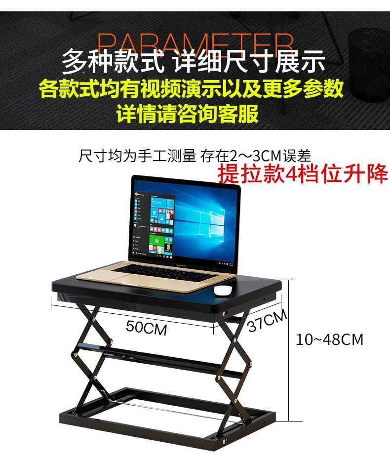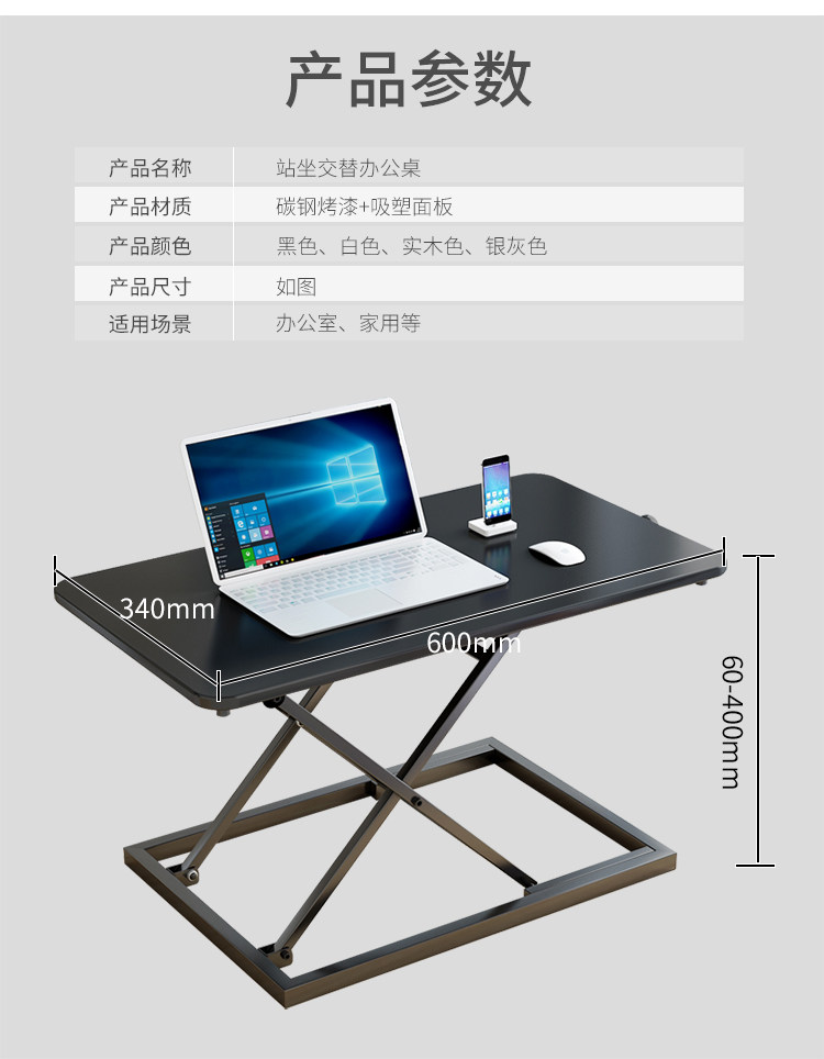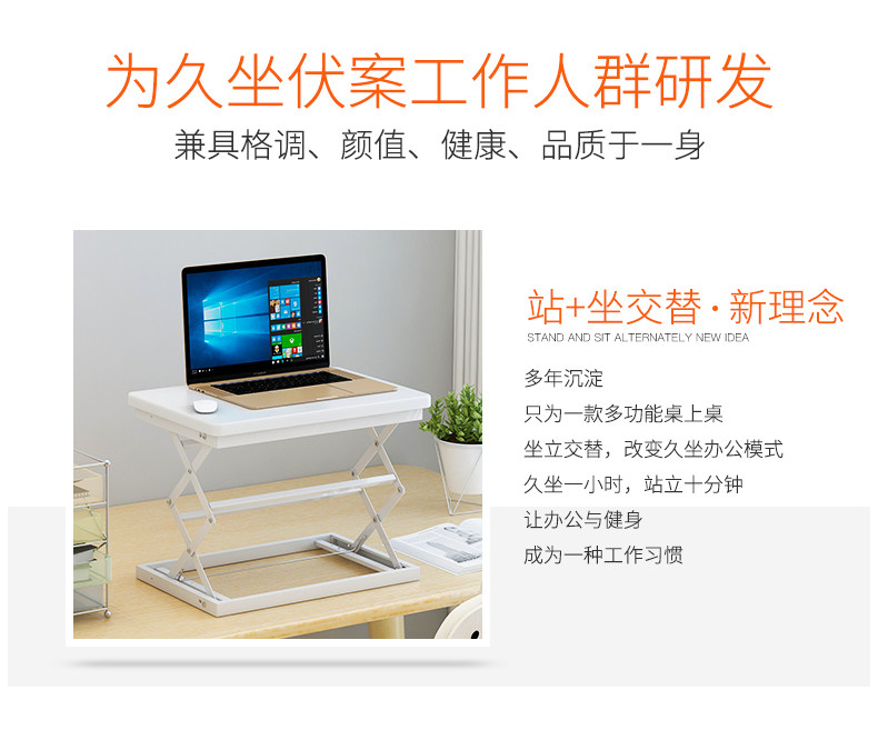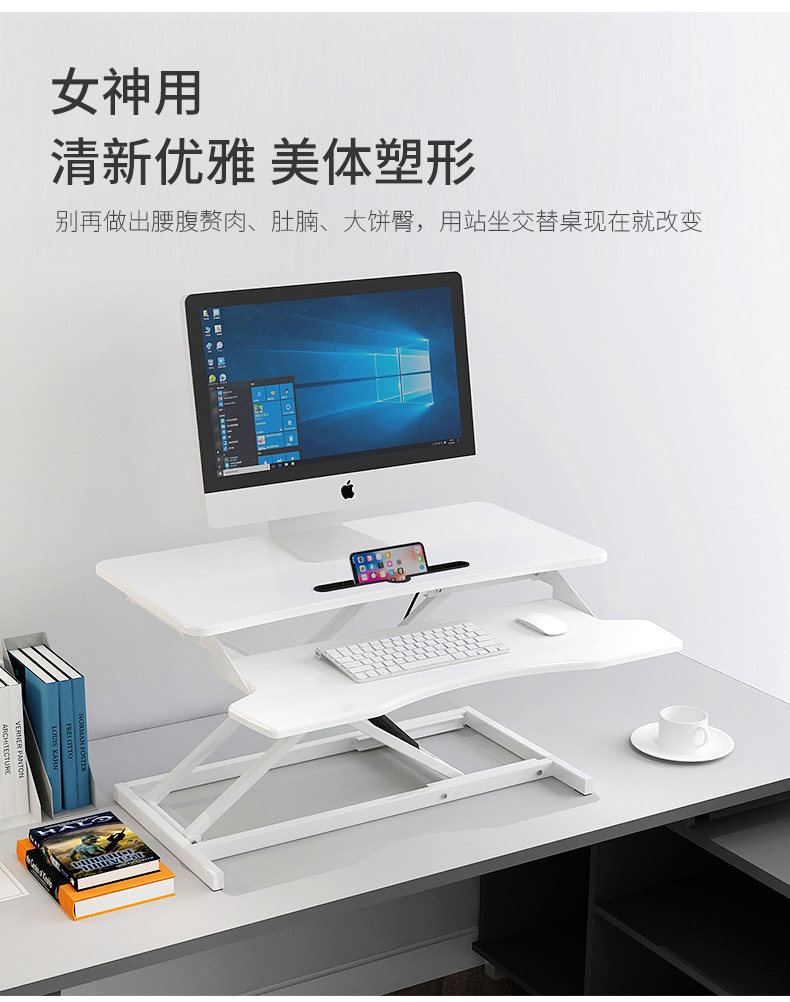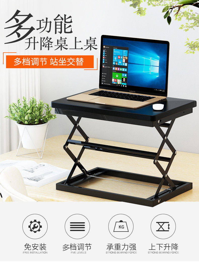 站立式辦公工作台筆電桌上型電腦支架桌面增高架站立升降折曡桌子