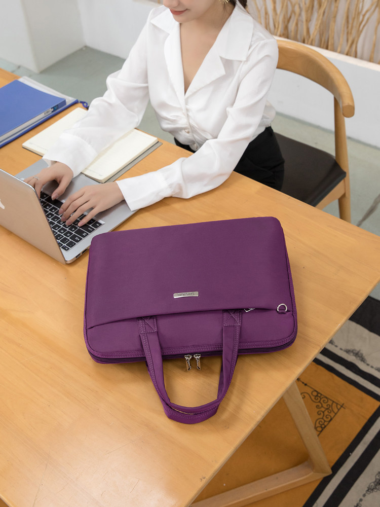 手提新款文件袋平板筆記型電腦包時尚商務高級紫色公文包女高級感