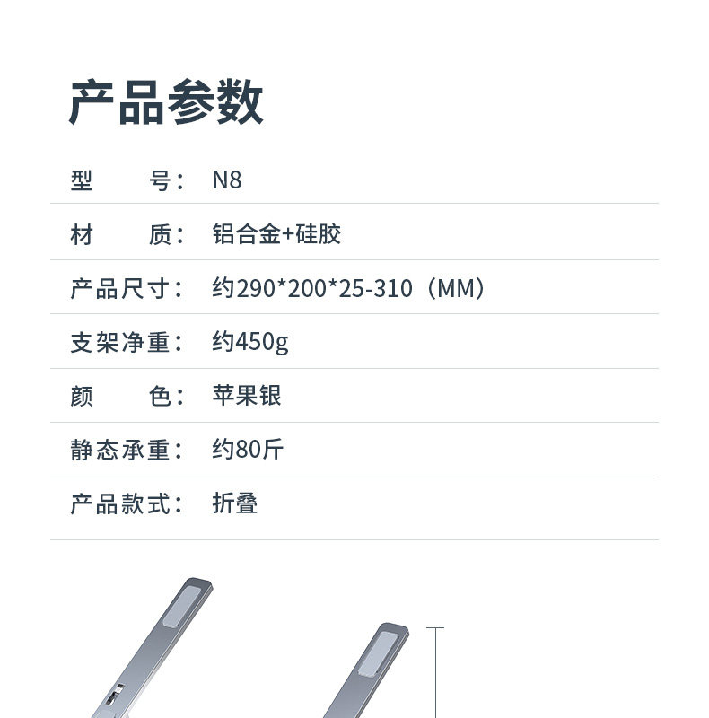 諾西N8鋁合金筆記型電腦支架懸空可調節升降桌面雙層增高散熱托架