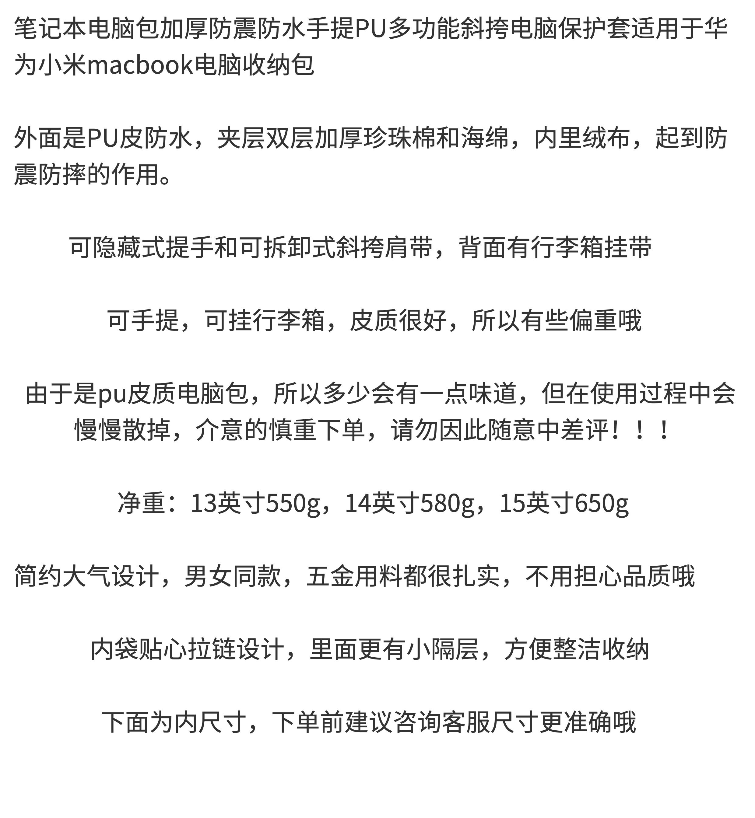 筆記型電腦包加厚防震防水手提PU多功能斜背電腦保護套適用於華爲小米macbook電腦收納包