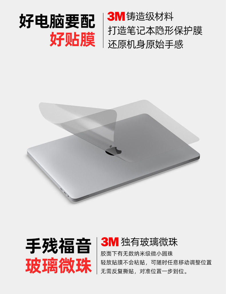 原色工場3M透明機身貼膜適用於蘋果MacBookair13寸pro16外殼保護