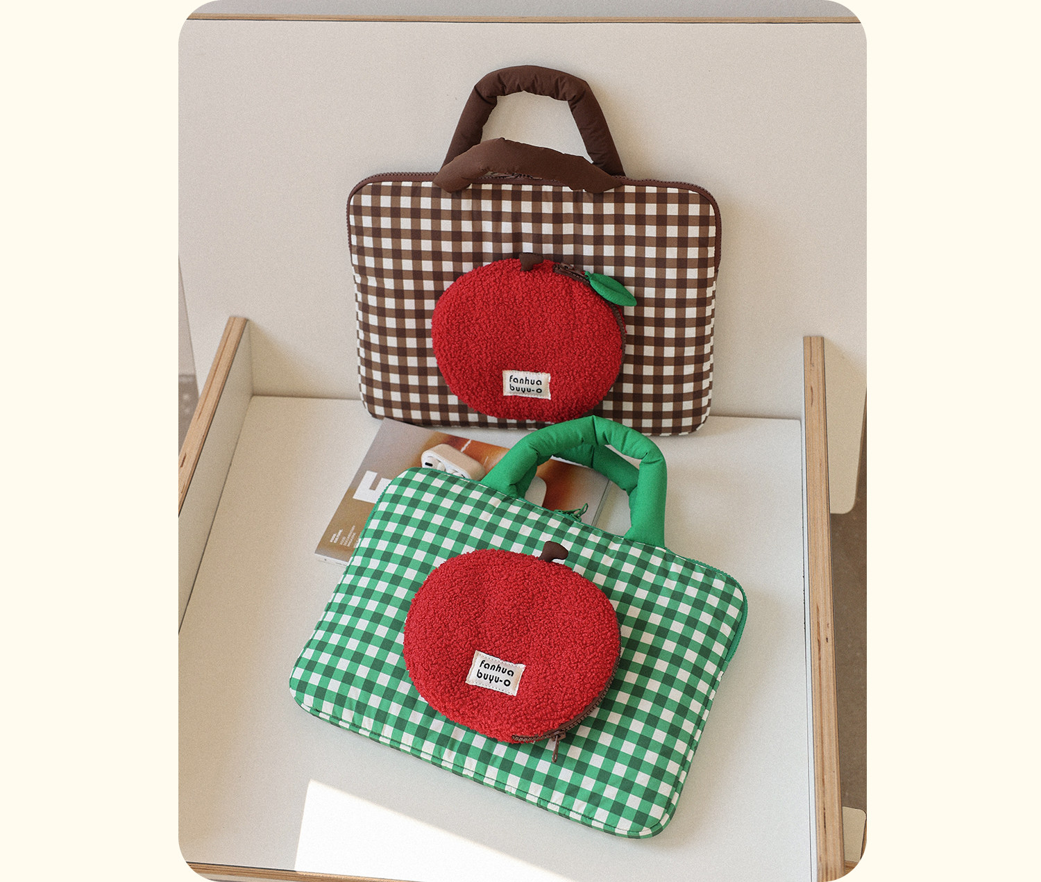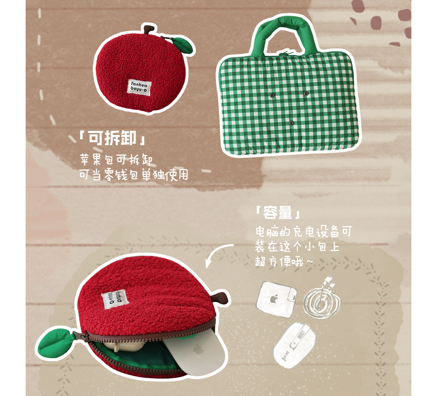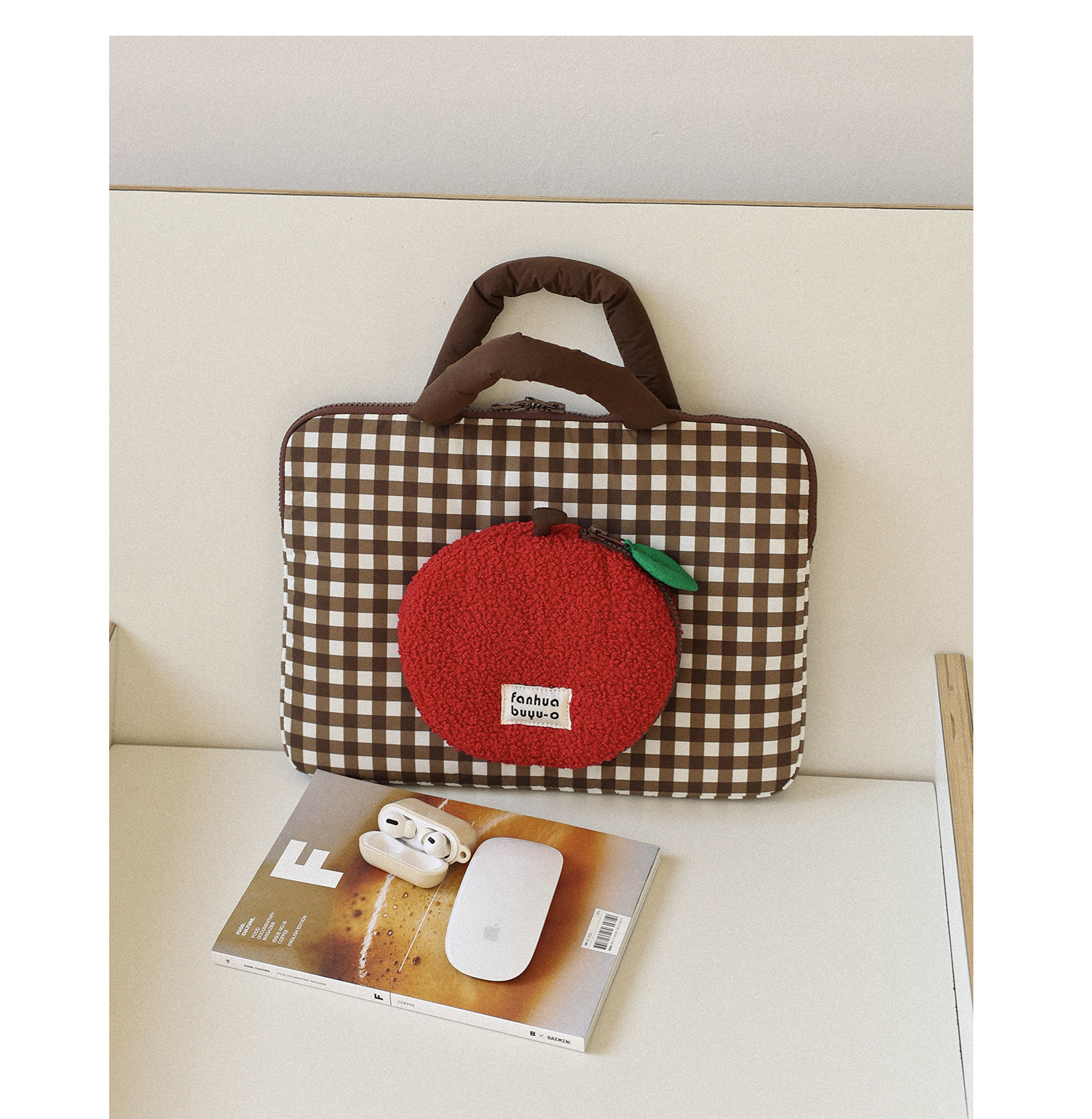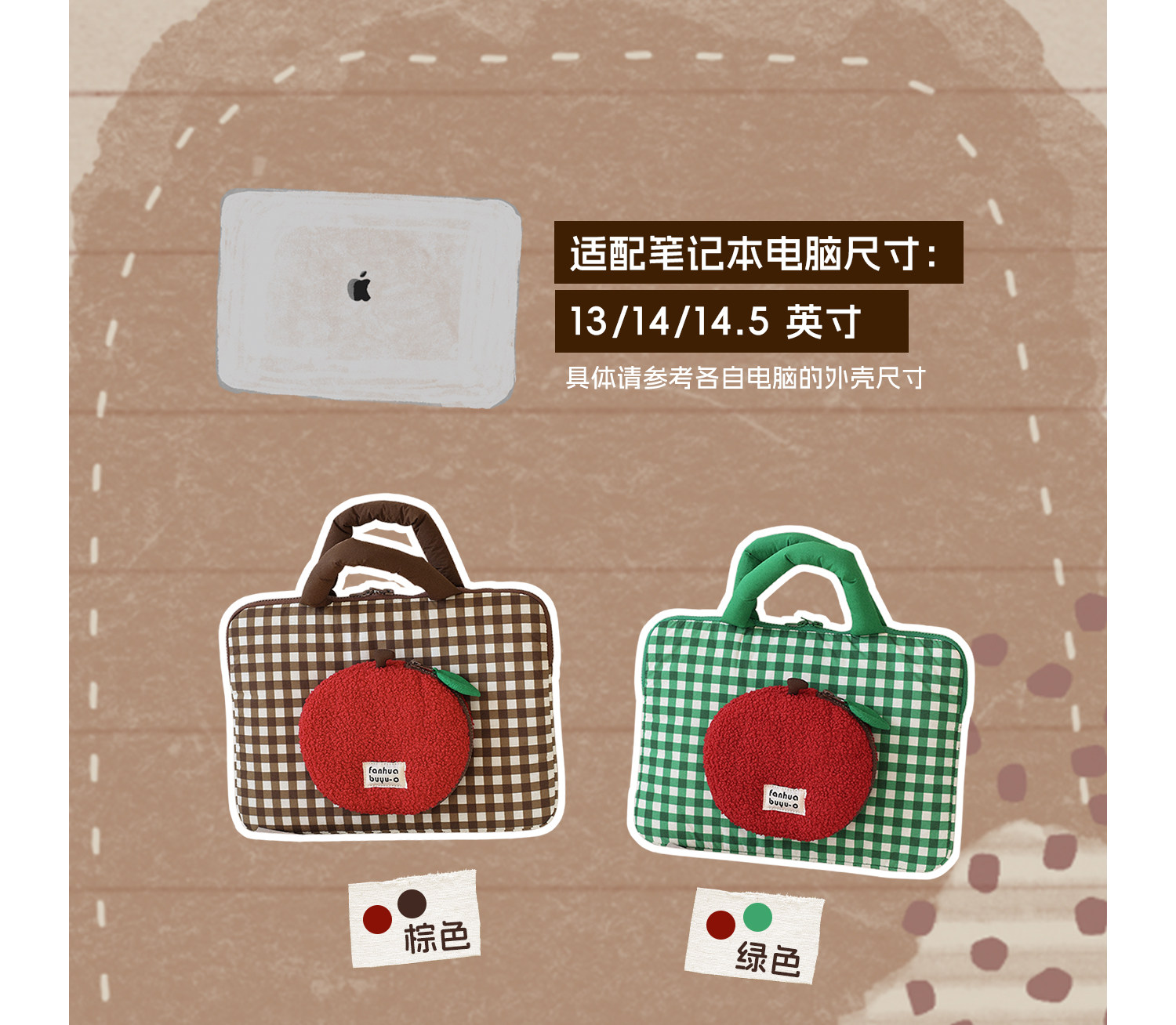 梵花不語可愛蘋果手提筆記型電腦包14寸可攜式手提包女適用蘋果小米華爲防震保護包平板收納包