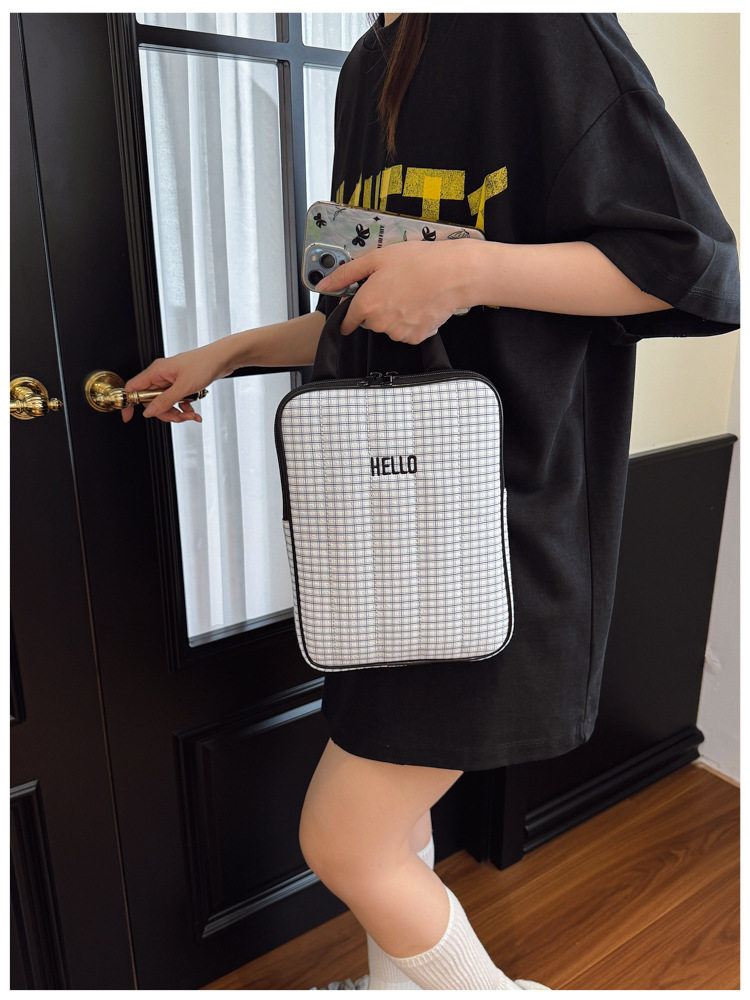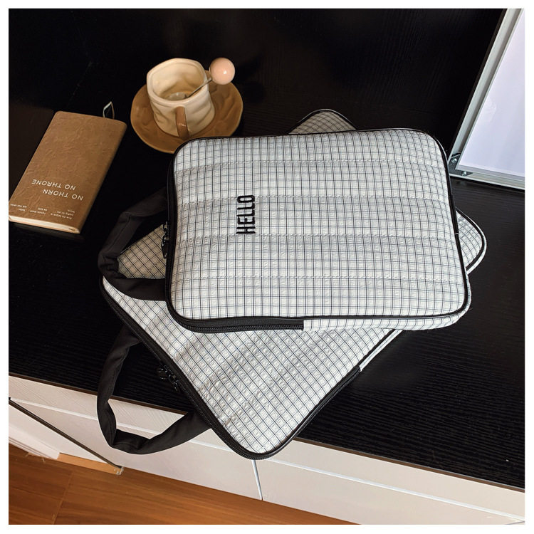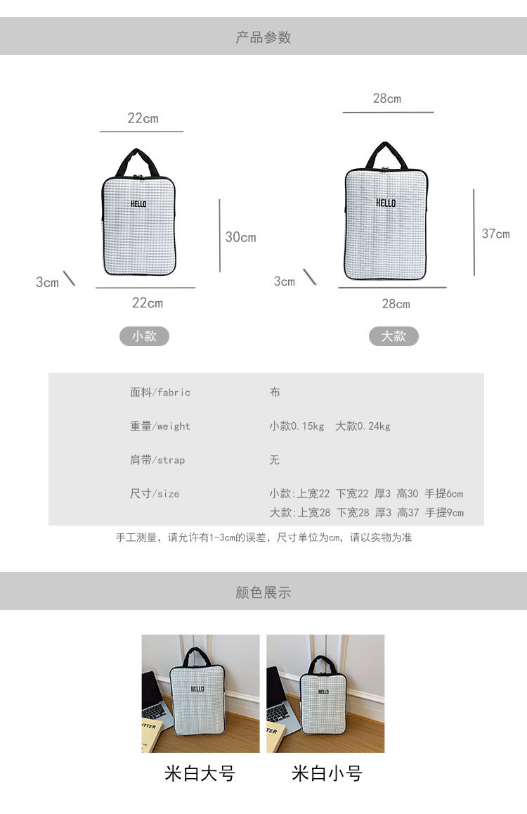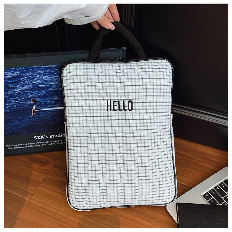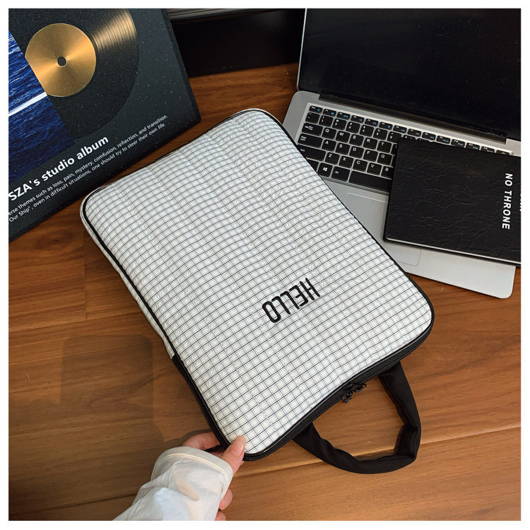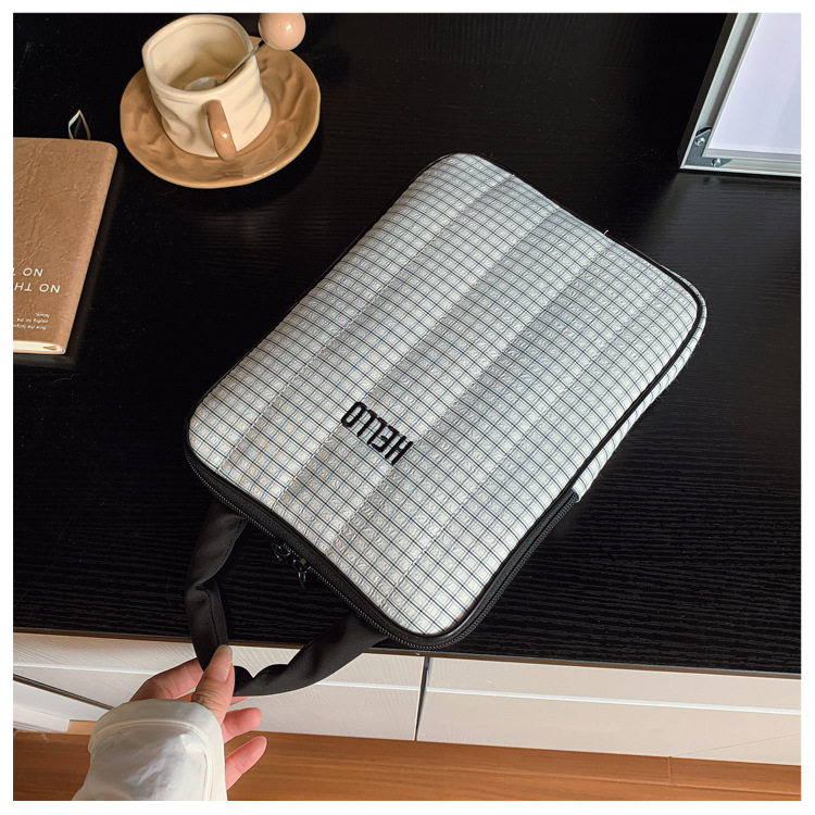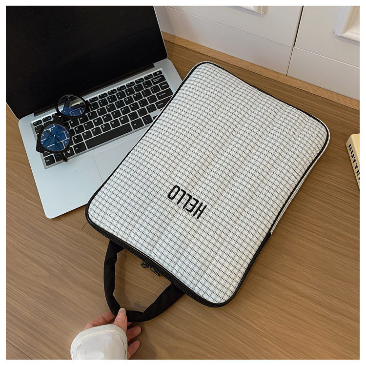 手提電腦包14寸韓版格子撞色適用蘋果macbookair/pro13.3聯想小新華爲筆記型電腦包iPad收納平板包