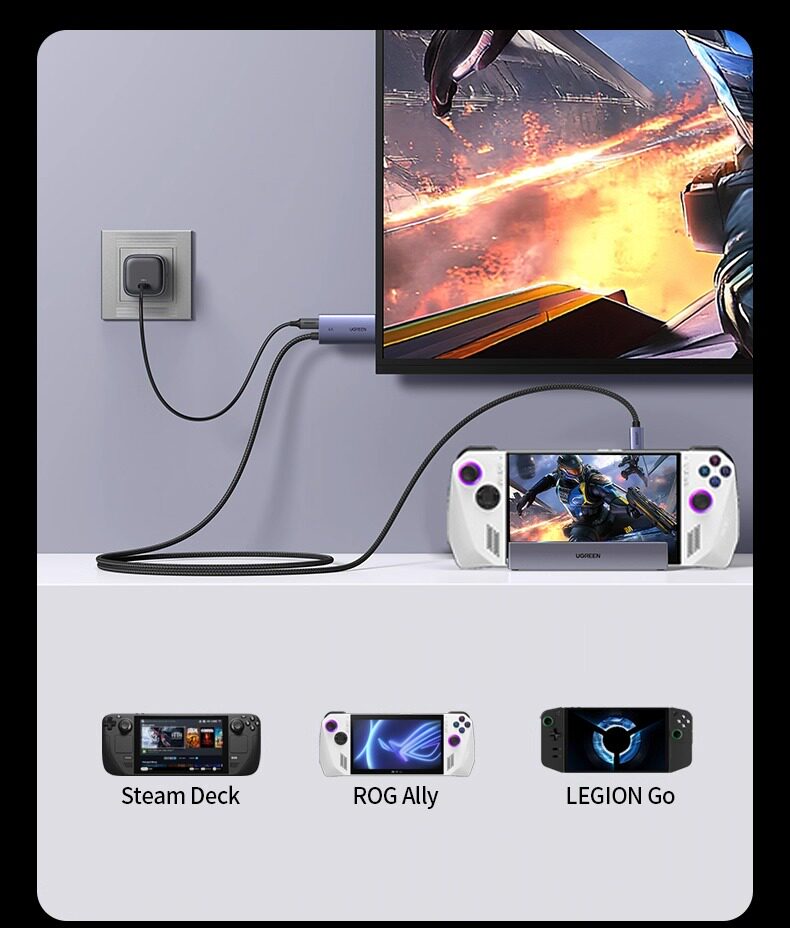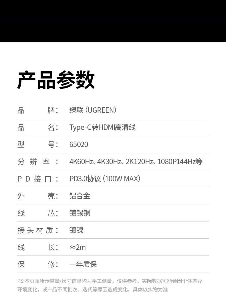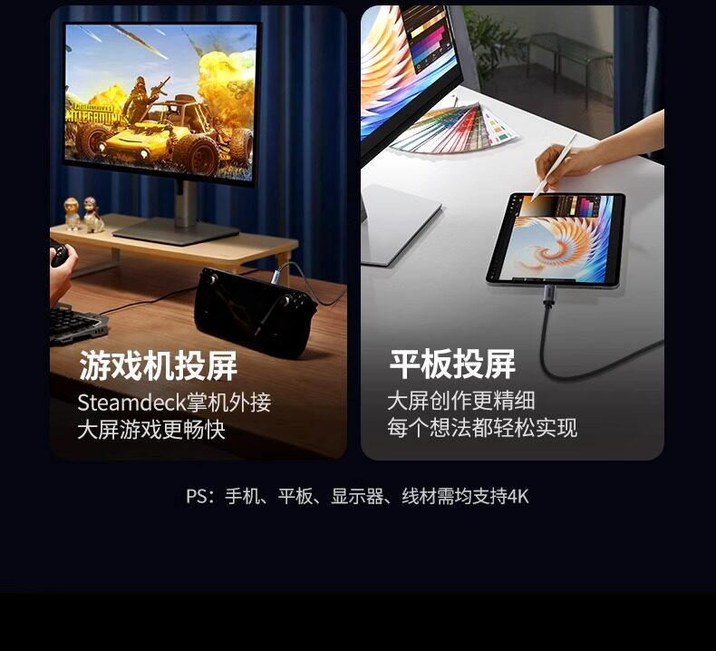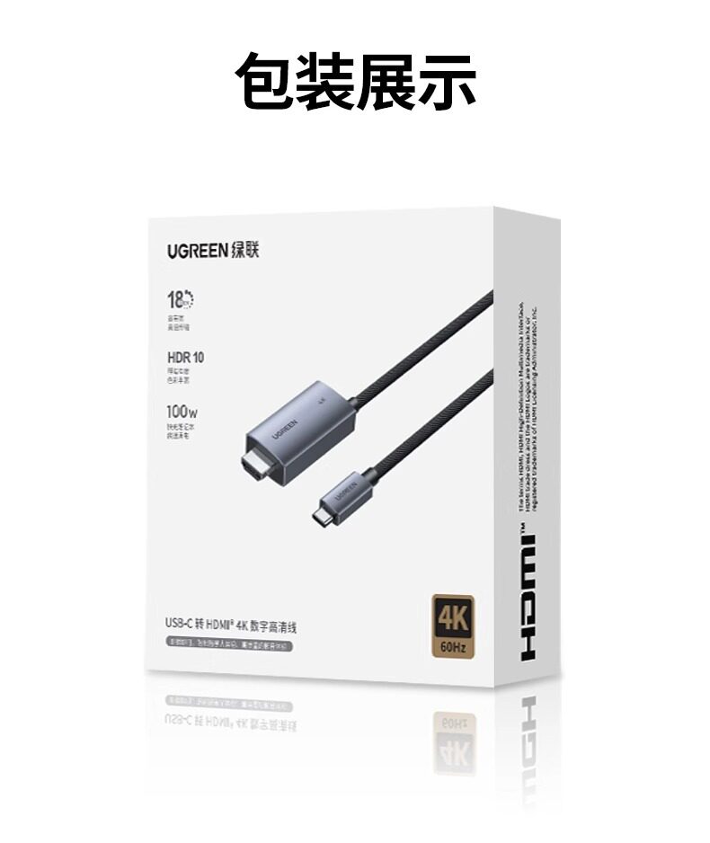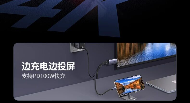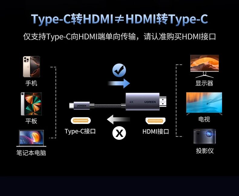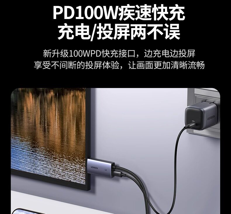 綠聯typec轉hdmi帶供電手機投影線連接電視筆記型電腦平板外接顯