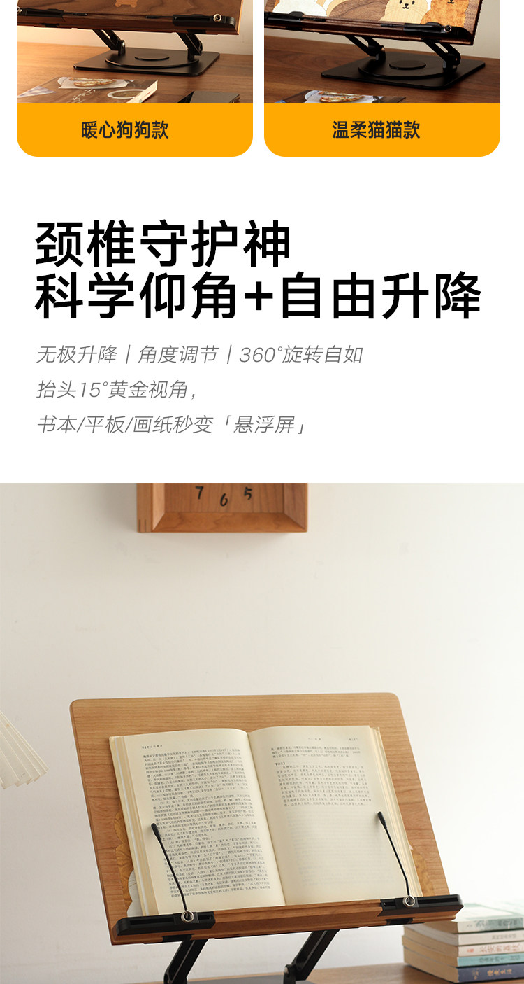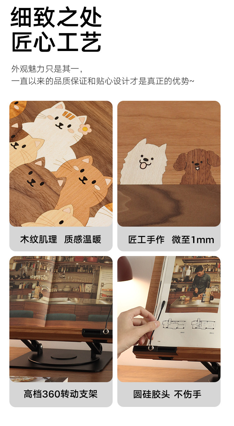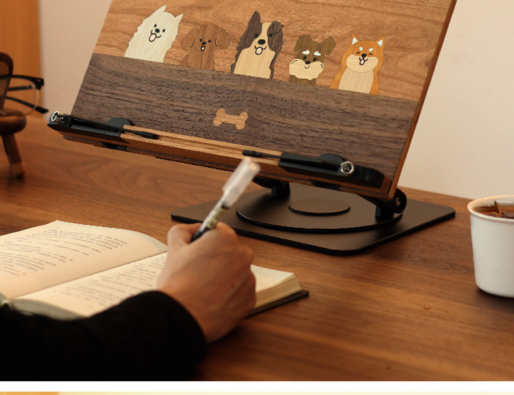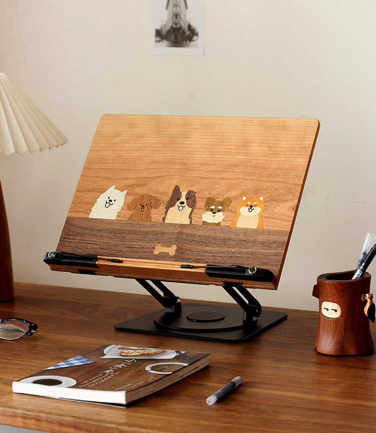 三思工房 書桌多功能支架木質可愛小狗閲讀架桌面電腦辦公支撐架