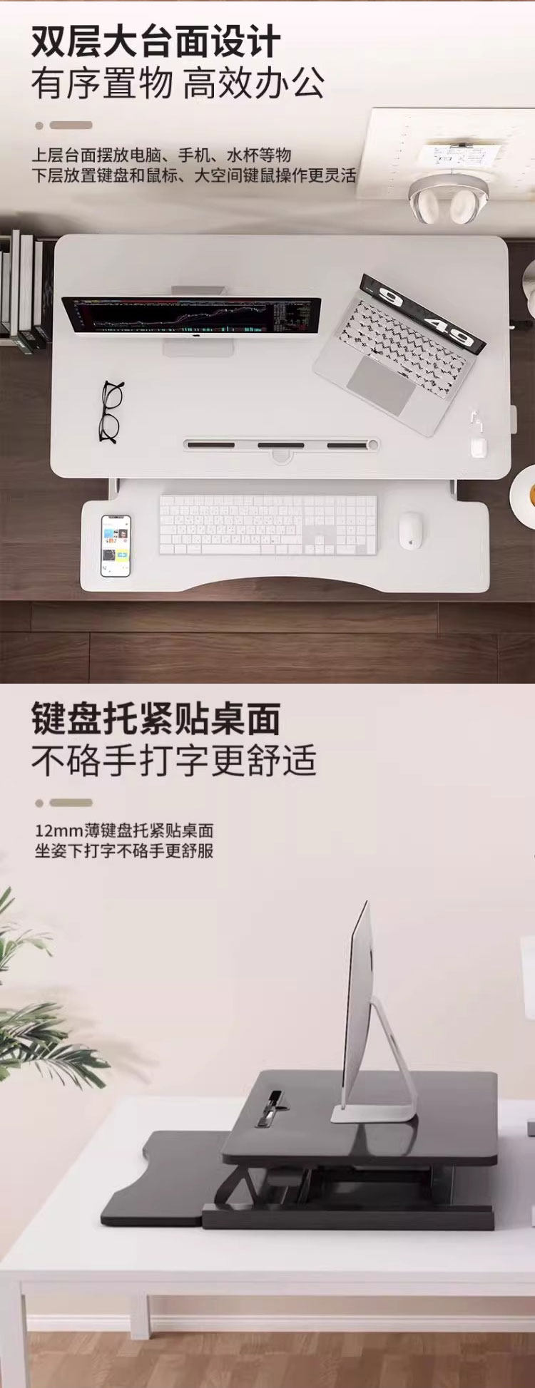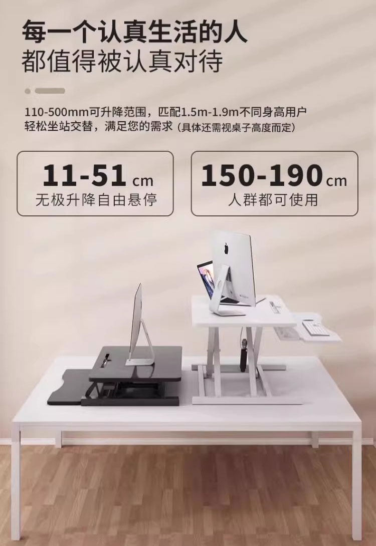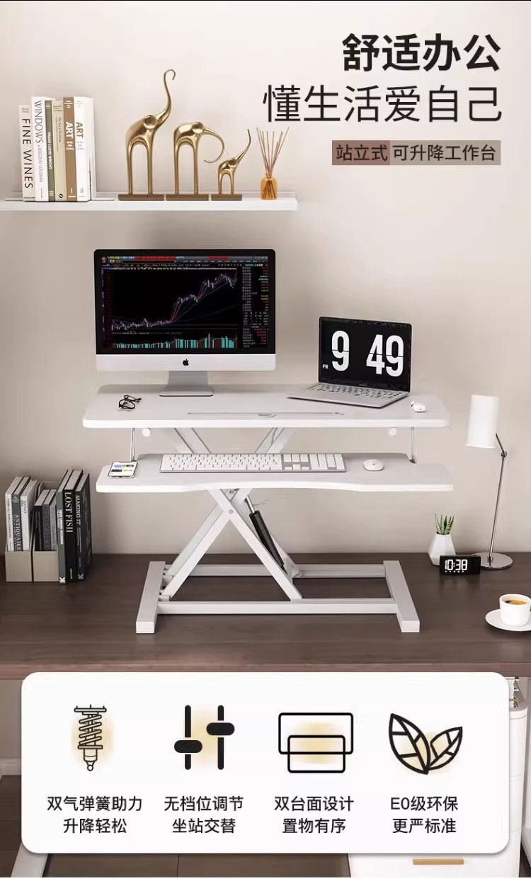 站立式工作台電腦桌可升降調節筆電辦公桌子折曡顯示器增高支架