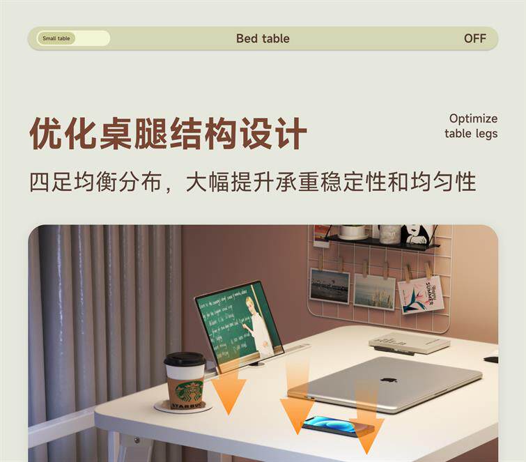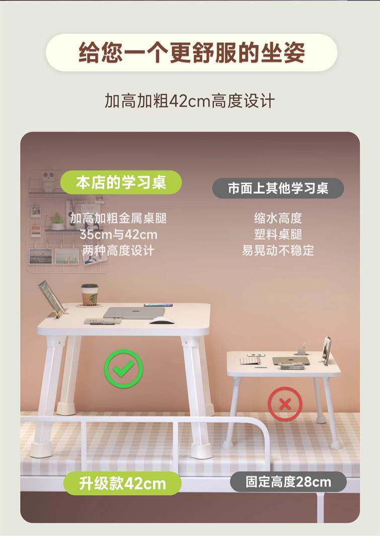 德國加高桌腳加粗宿捨床上桌子學生書桌床上飄窗折曡吃飯辦公小桌