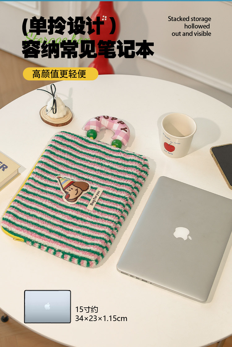| 型號 | 粉綠條紋羊羔絨彈力皮小狗電腦包 |