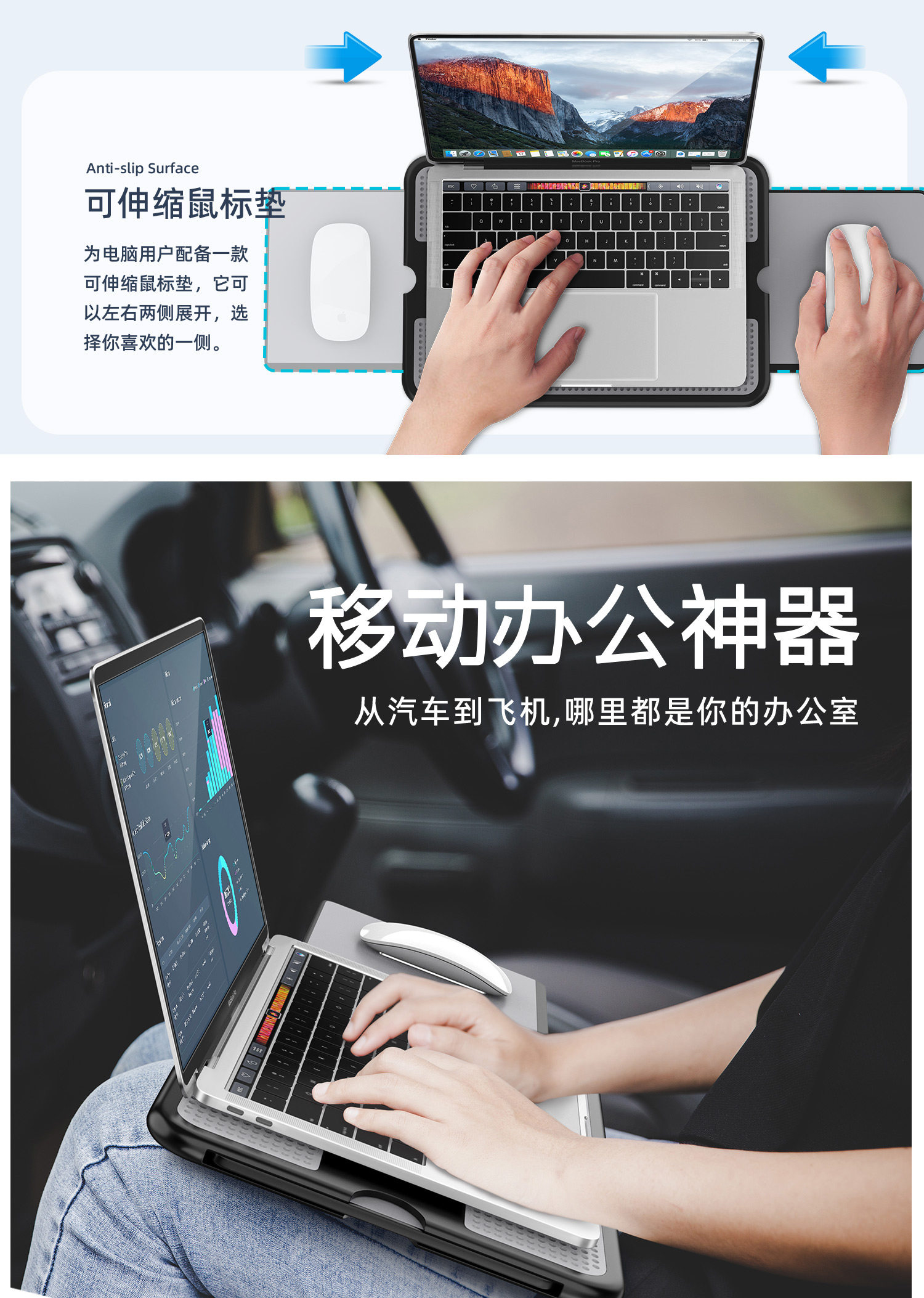 ABOVETEK可攜式膝上桌車用桌後排出差多功能辦公筆記型電腦小桌板