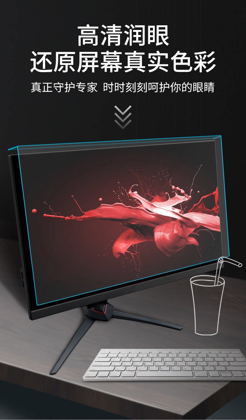 電腦視防藍光輻射罩曲掛屏27膜防砸顯示器34擋板護眼32寸免貼高清