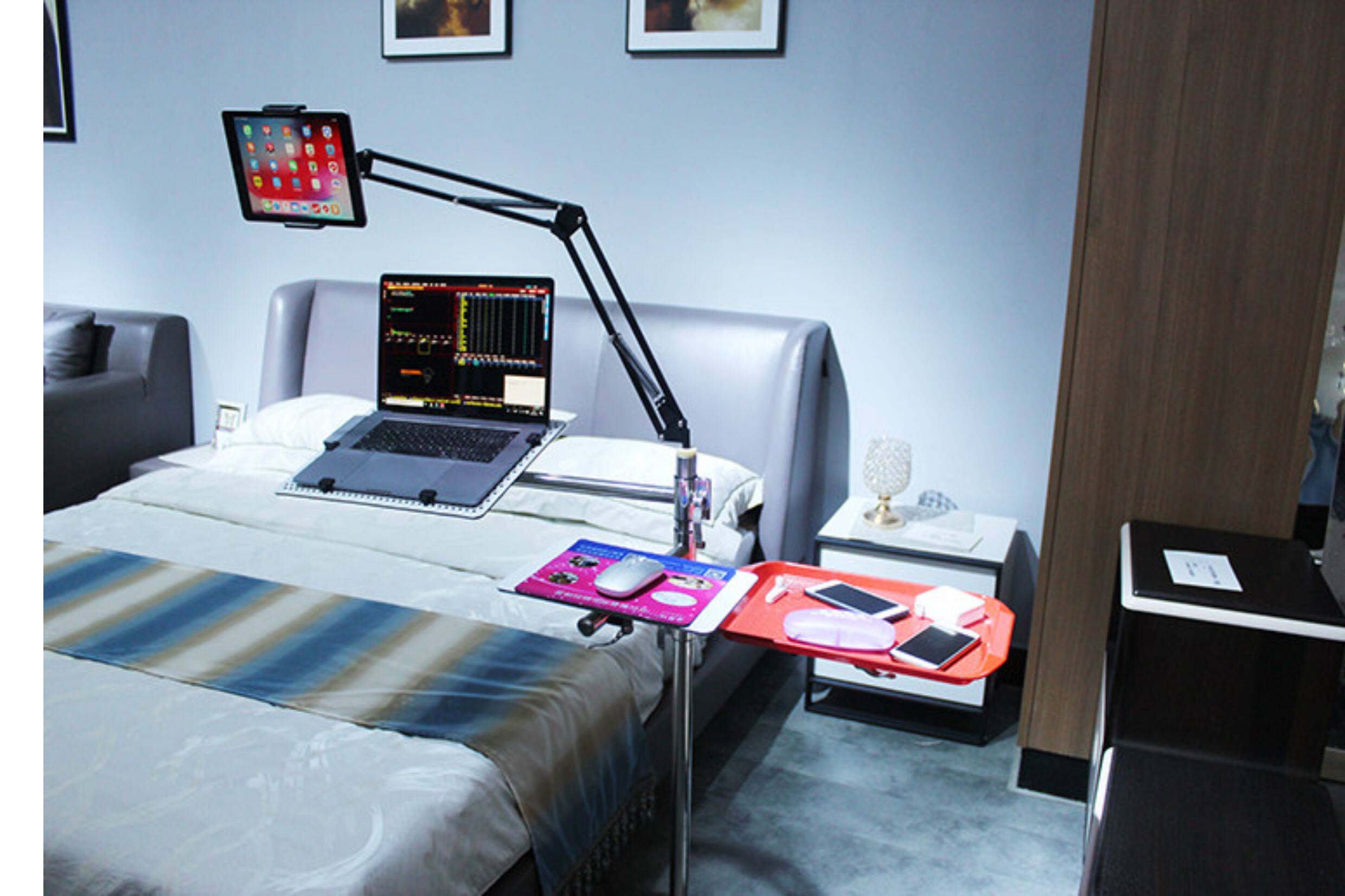 懶人筆電支架頸椎電腦桌床上用落地升降移動平躺伸縮電腦托架子