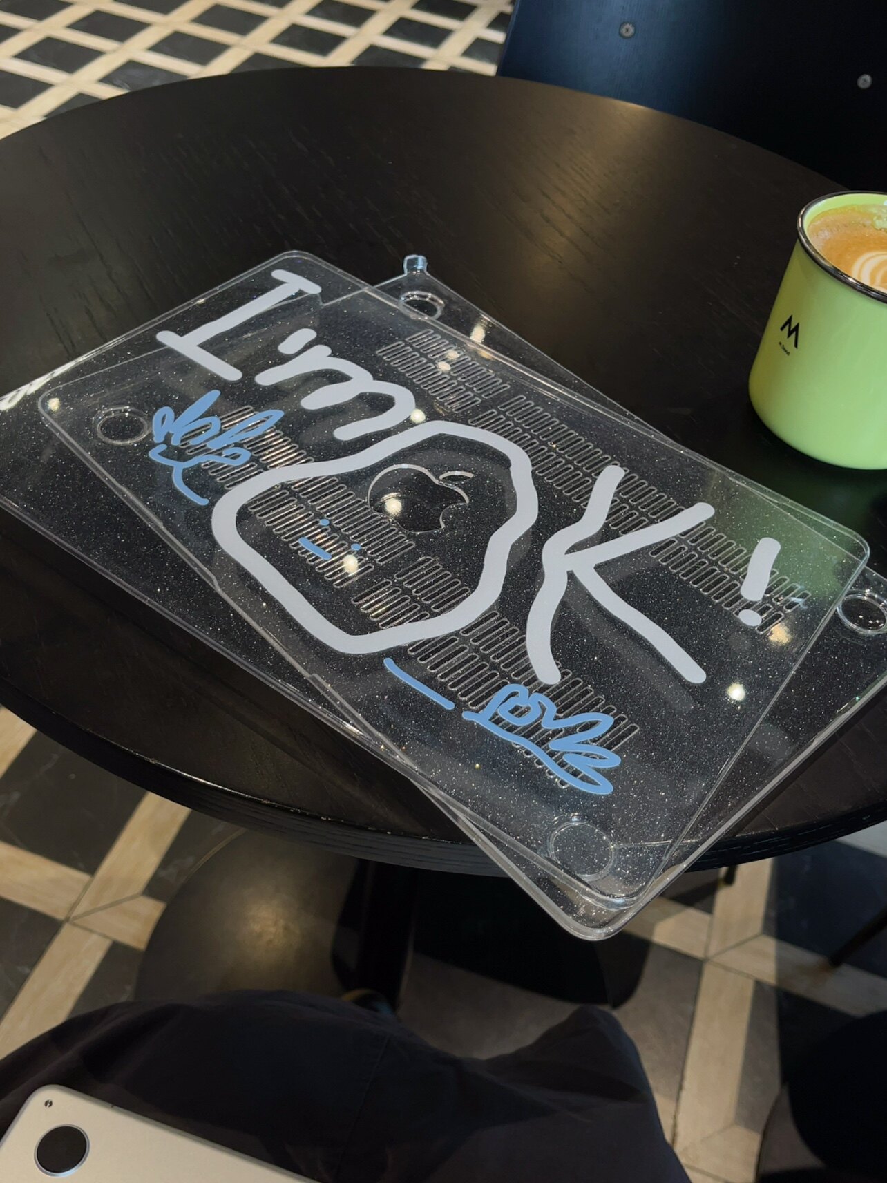 汪三嵗原創「imok」MacBook保護殼蘋果筆電殼2025款M4pro14寸16寸air13寸M1M2M3細閃殼