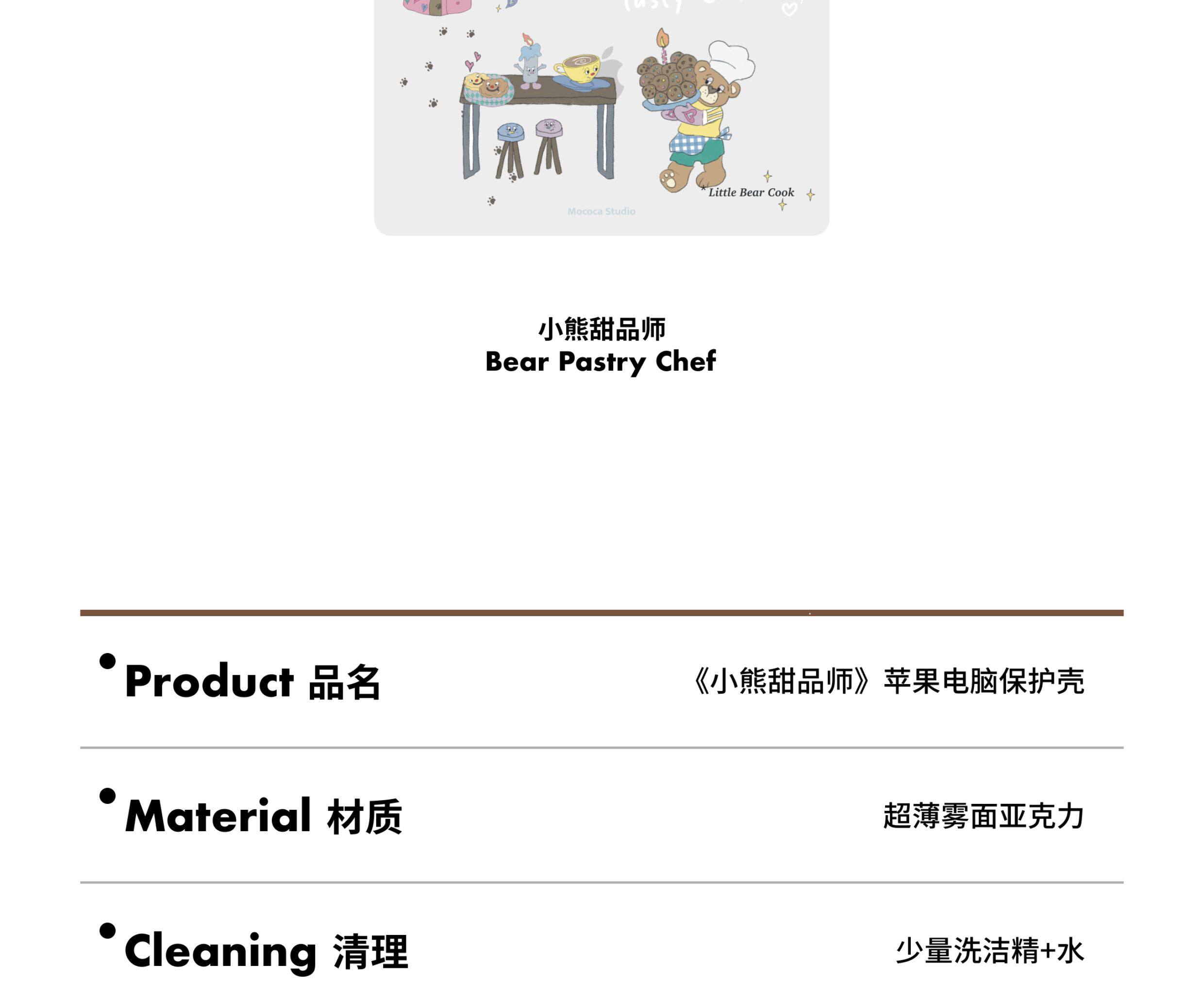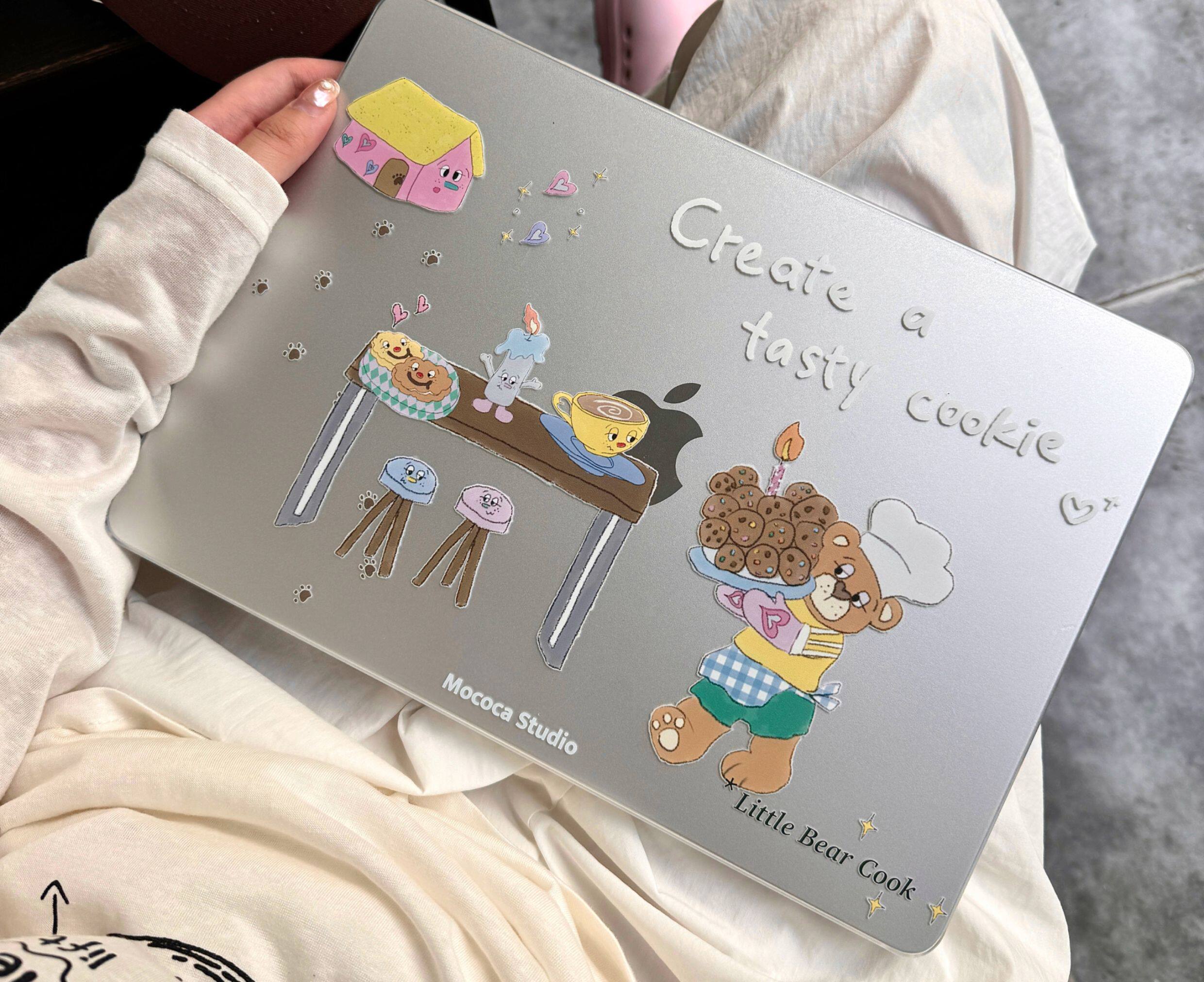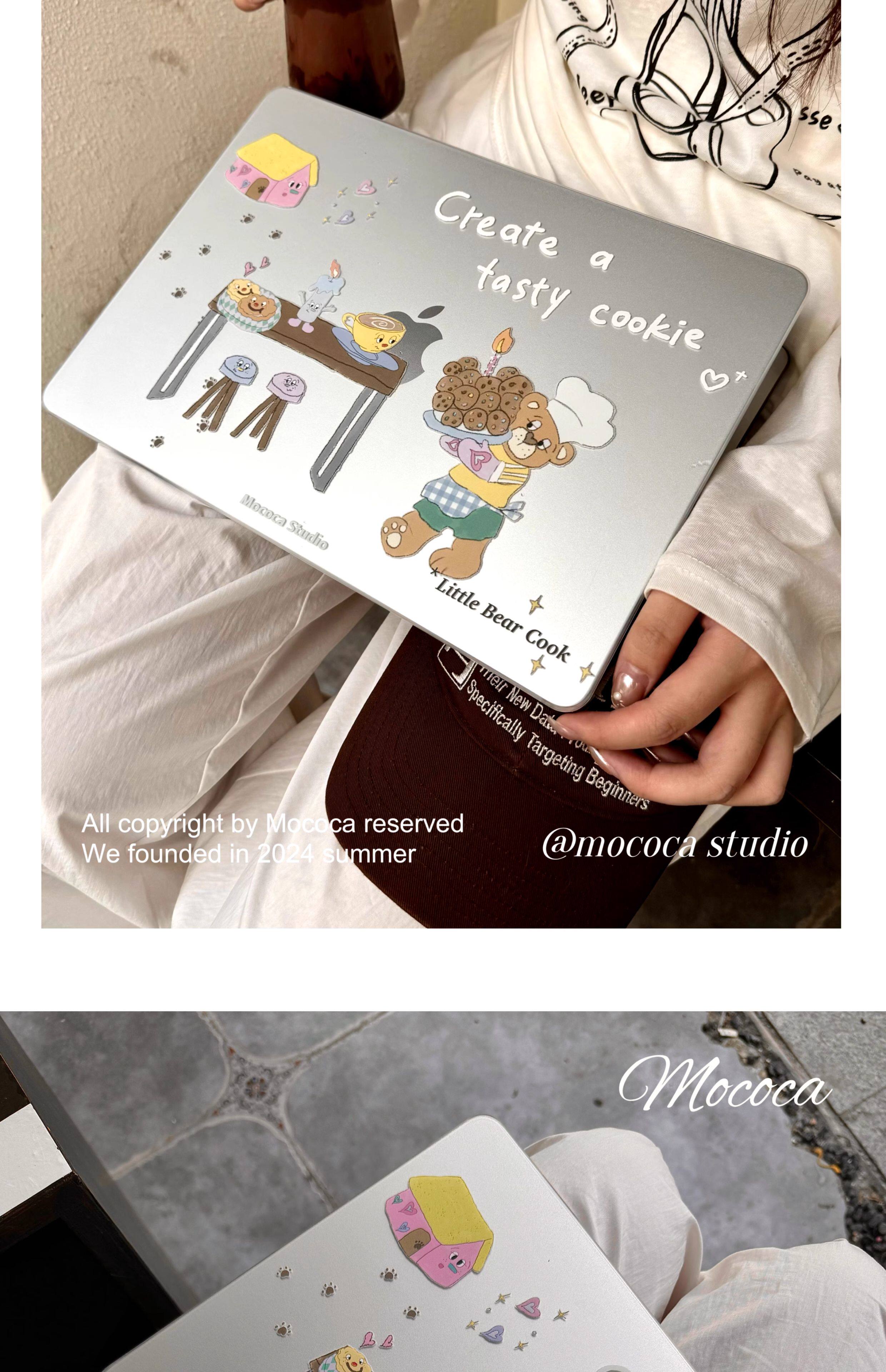 MOCOCA《小熊甜品師》韓國可愛原創插畫進口pc透明硬殼防磕碰適用於Macbook蘋果pro電腦air保護套13寸14寸