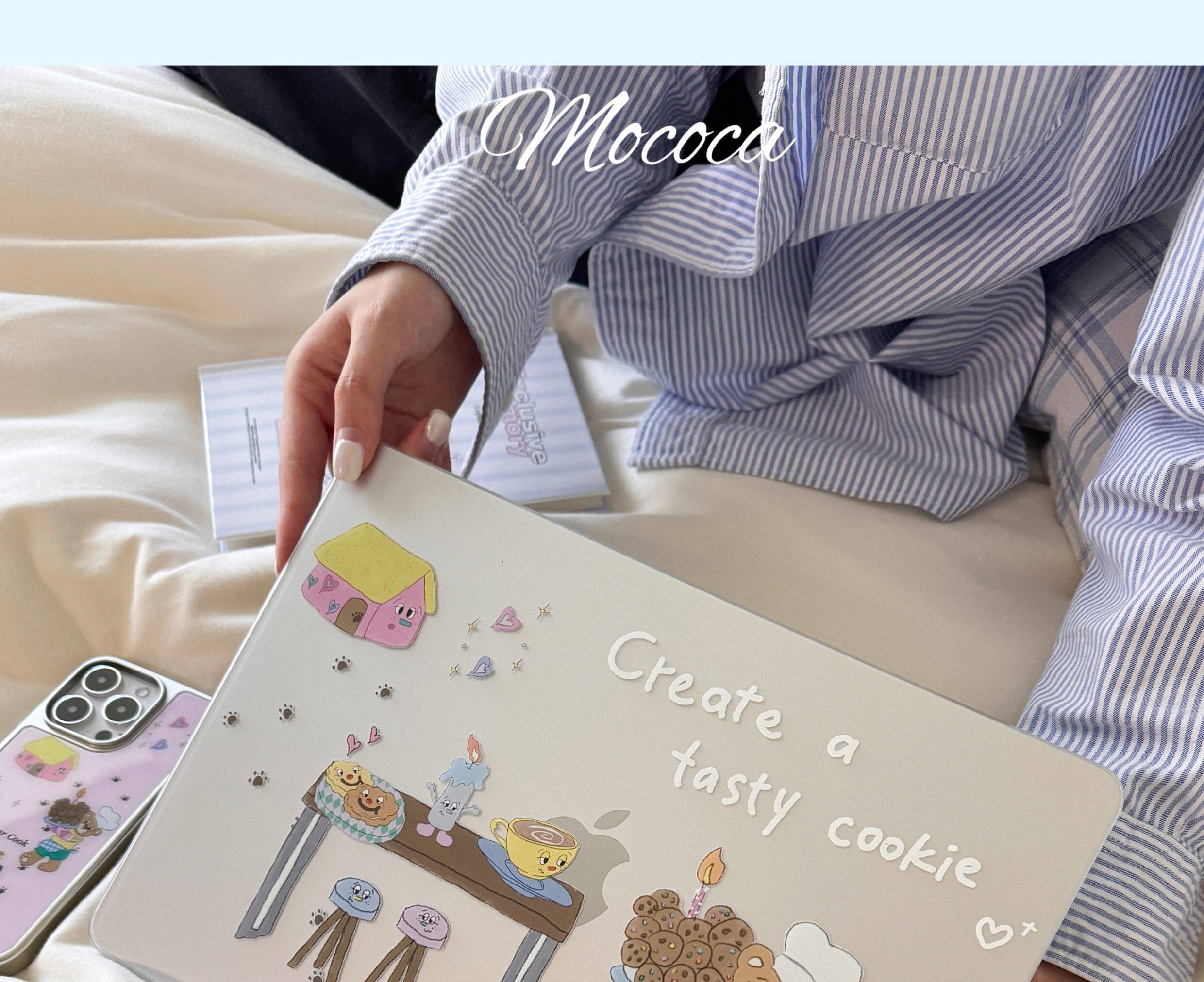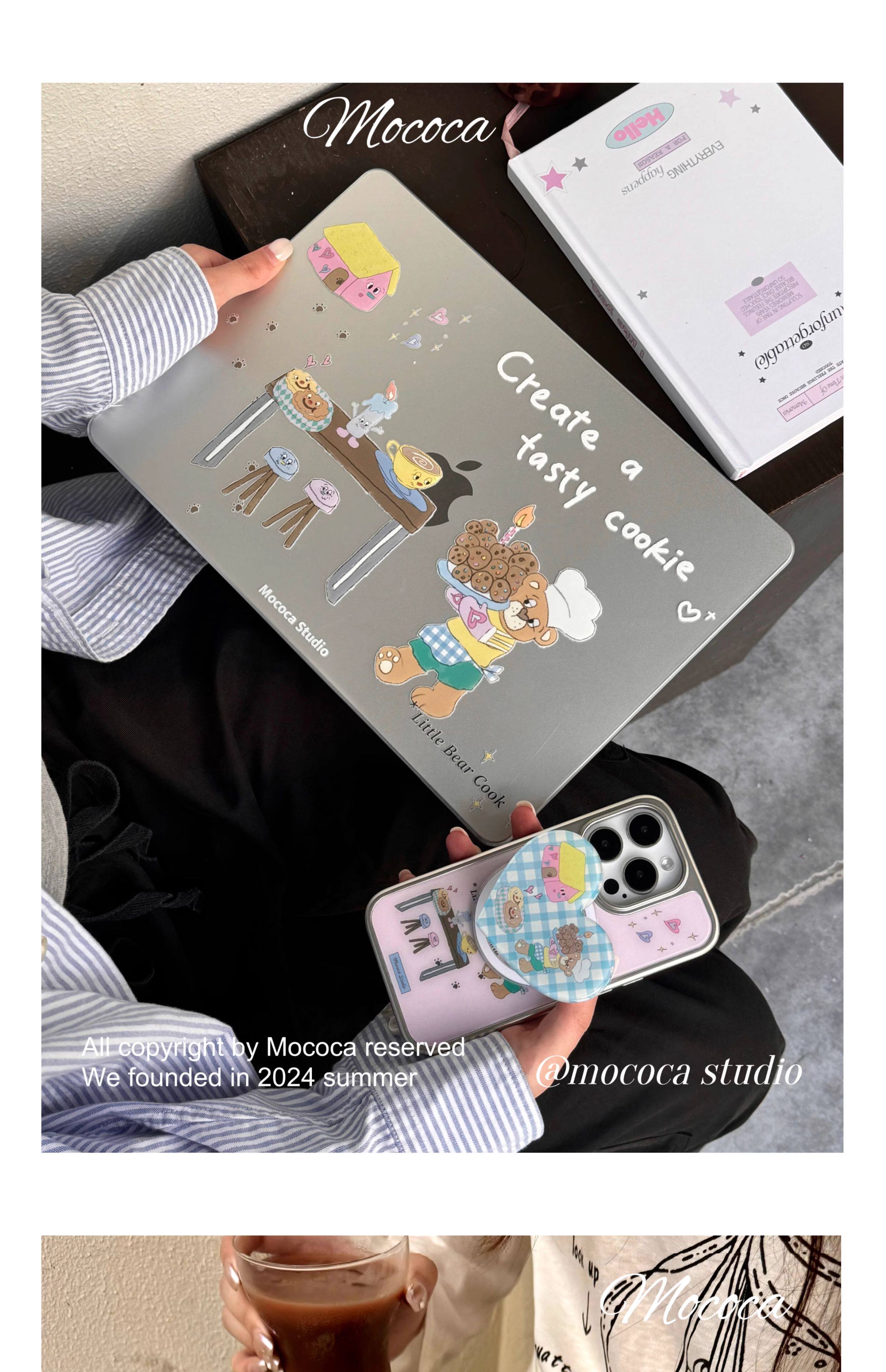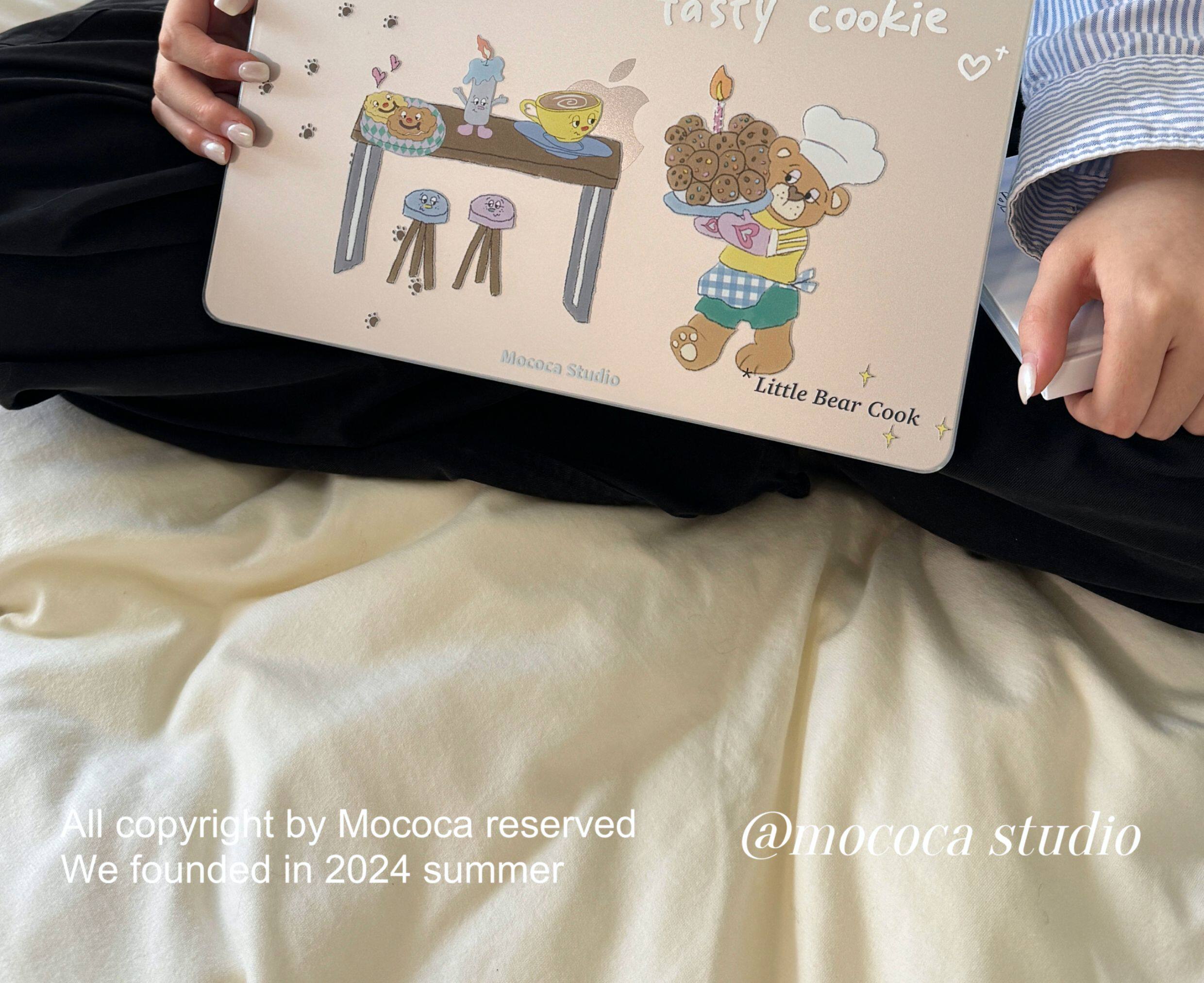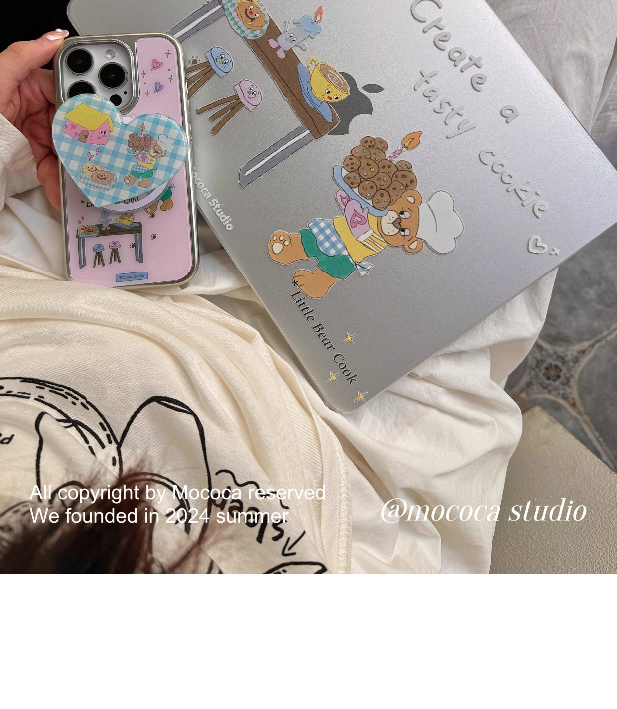 MOCOCA《小熊甜品師》韓國可愛原創插畫進口pc透明硬殼防磕碰適用於Macbook蘋果pro電腦air保護套13寸14寸