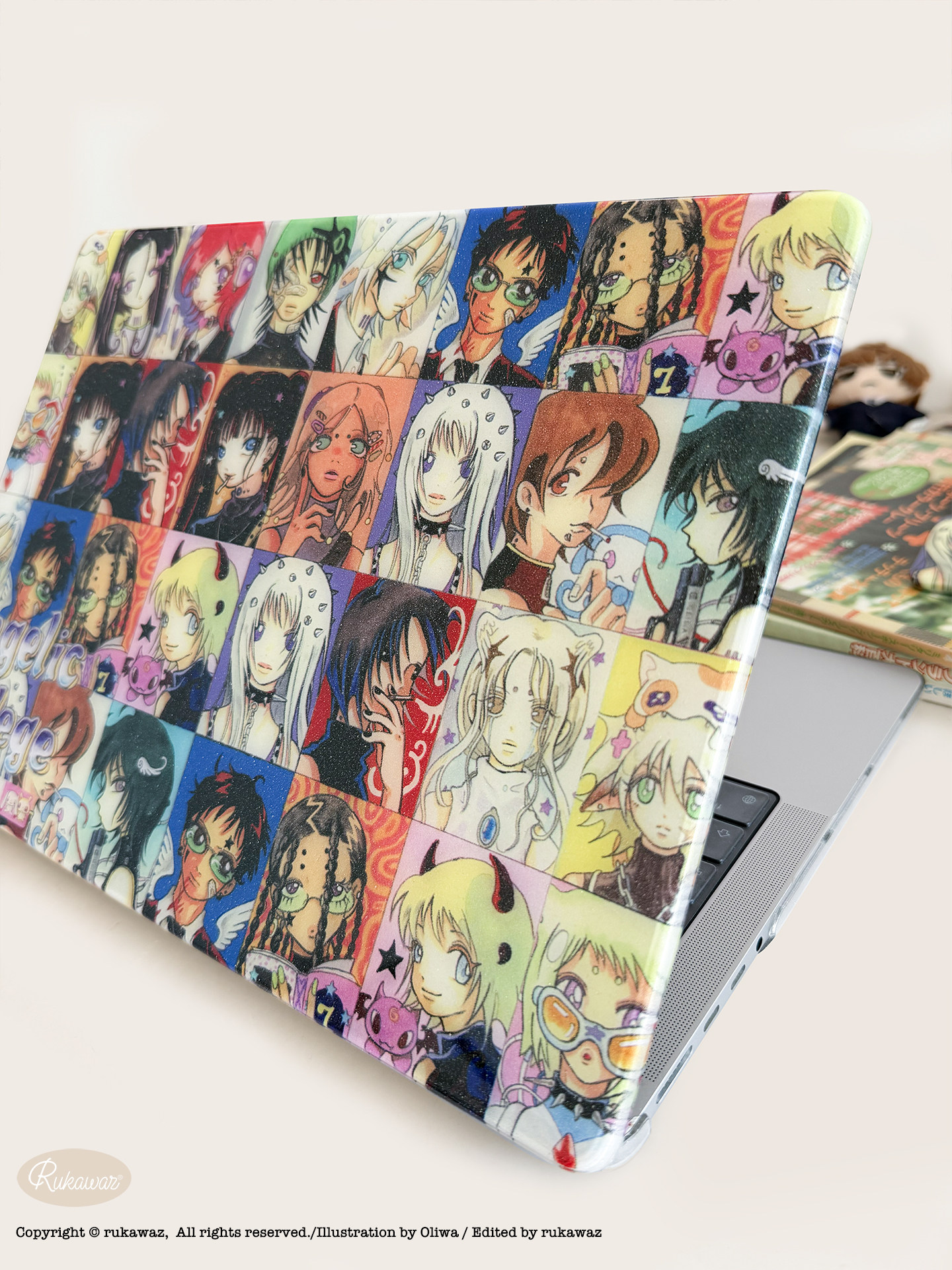 RUKAWAZx奧莉蛙Oliwa原創復古天使學園適用蘋果電腦筆電MacbookproM4/air 14/13寸滿天星亮面保護殼
