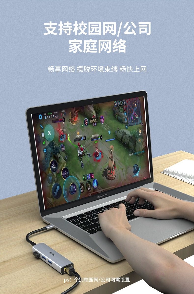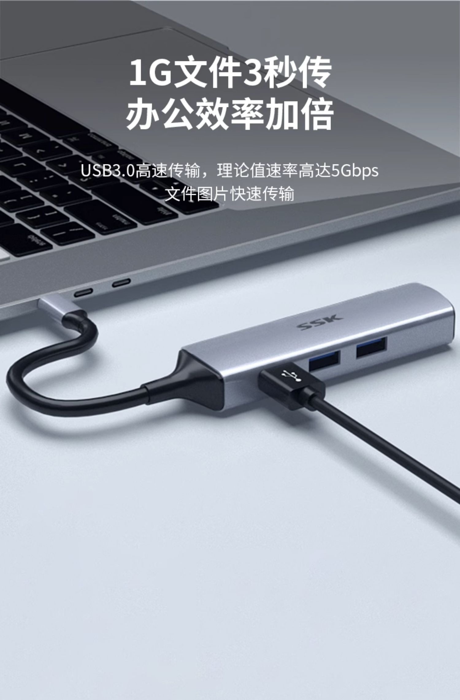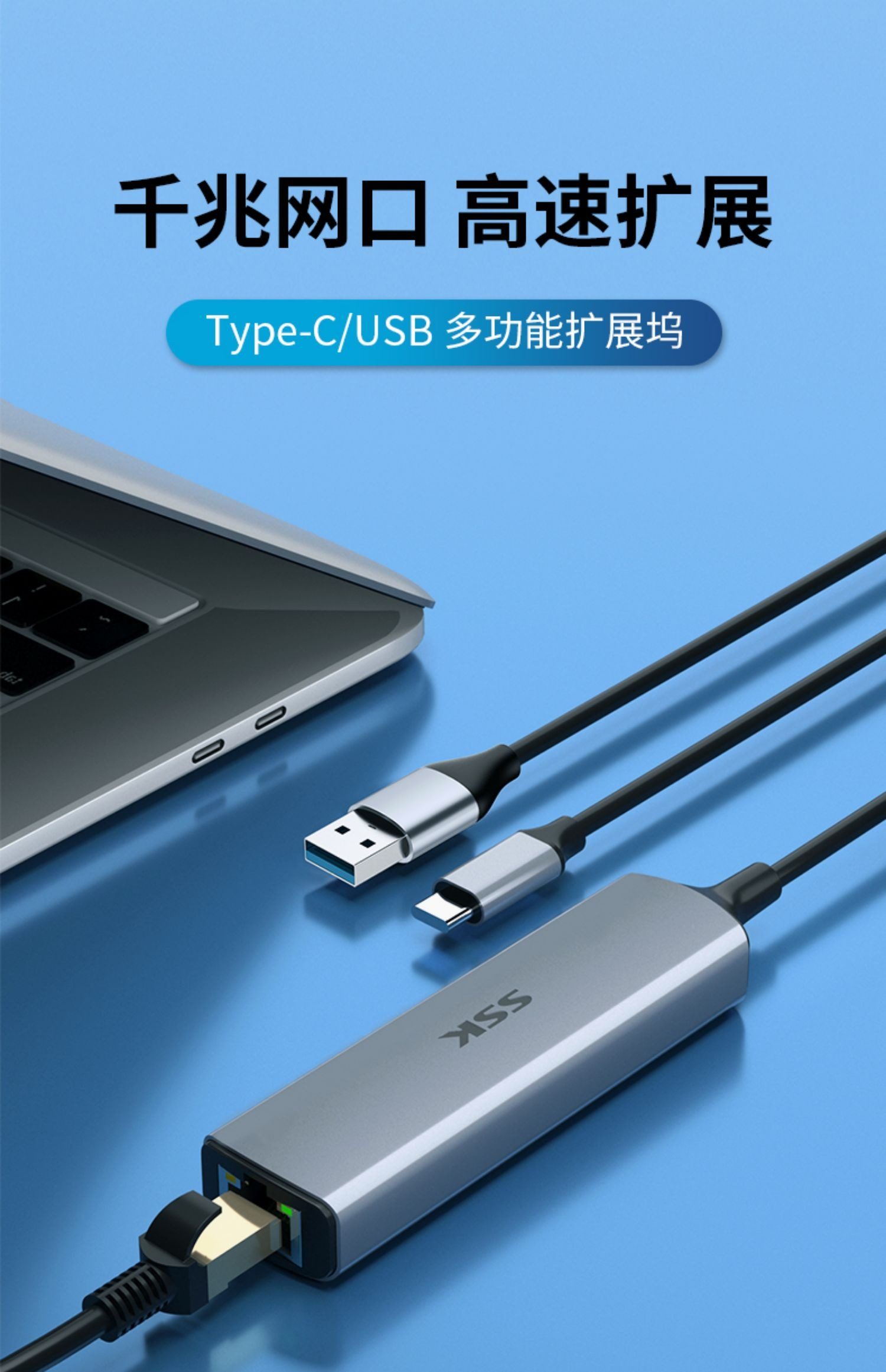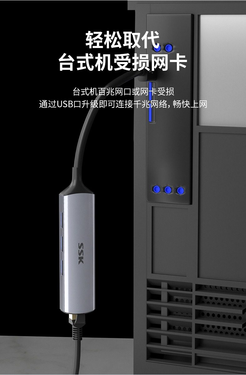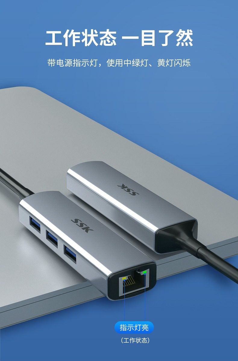 SSK飚王TypeC拓展隖usb擴展隖轉千兆網口5Gbps轉網線接口轉換器