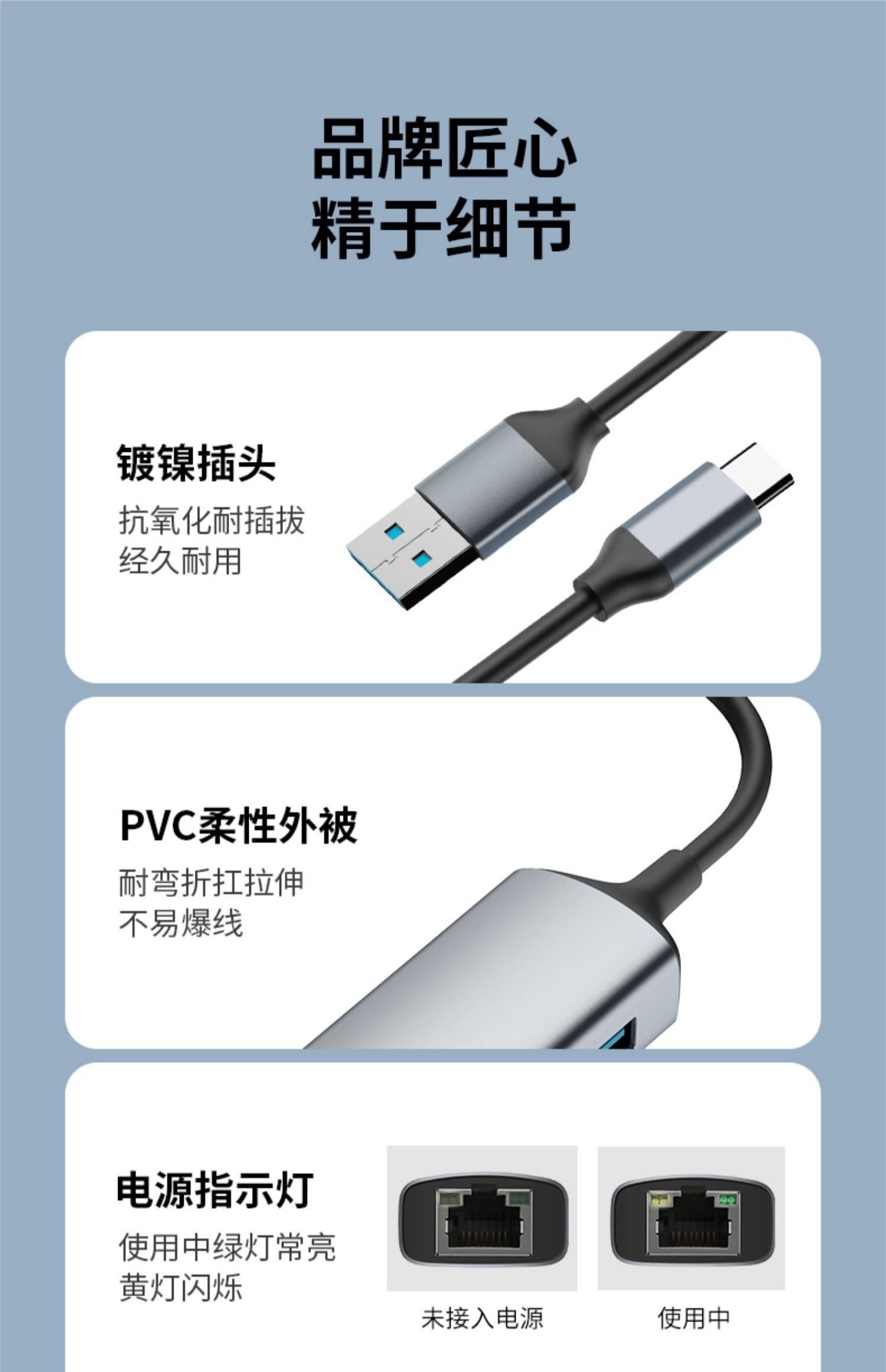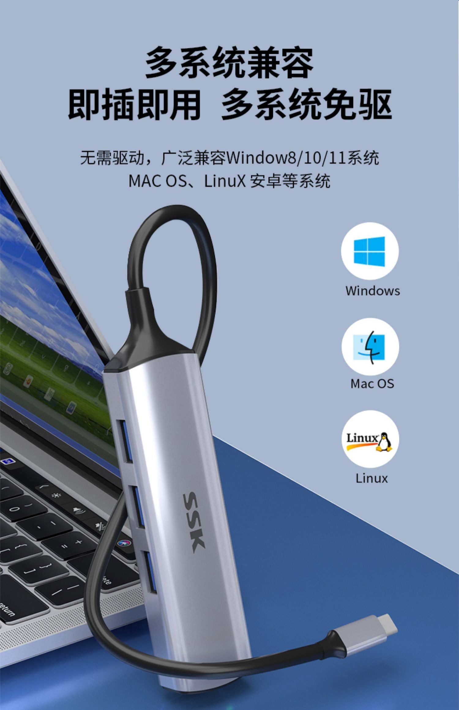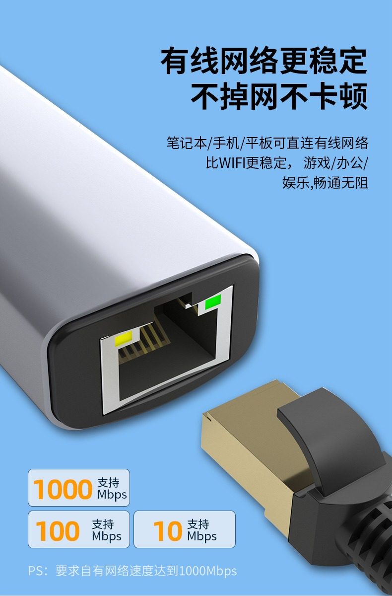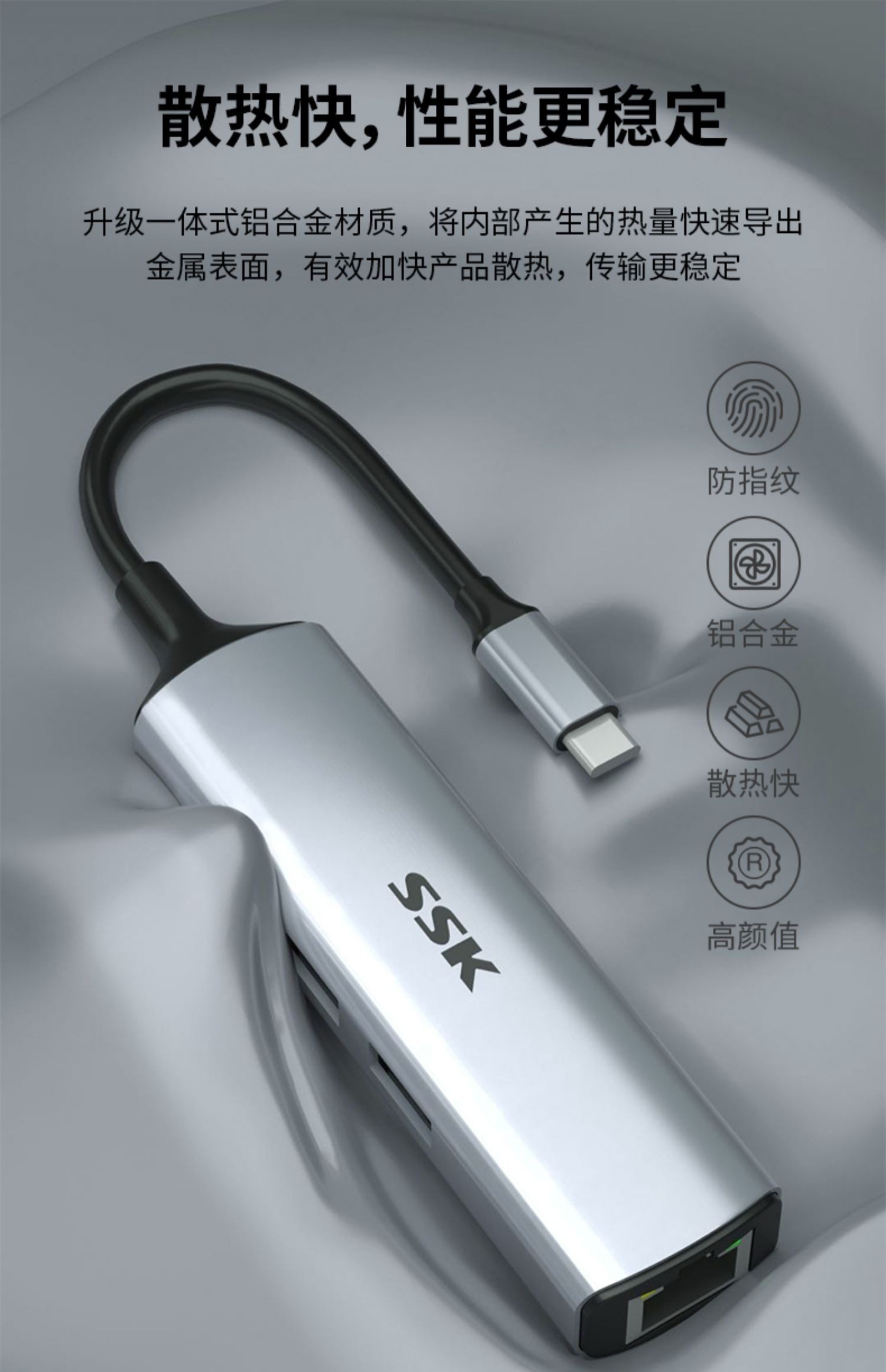 SSK飚王TypeC拓展隖usb擴展隖轉千兆網口5Gbps轉網線接口轉換器