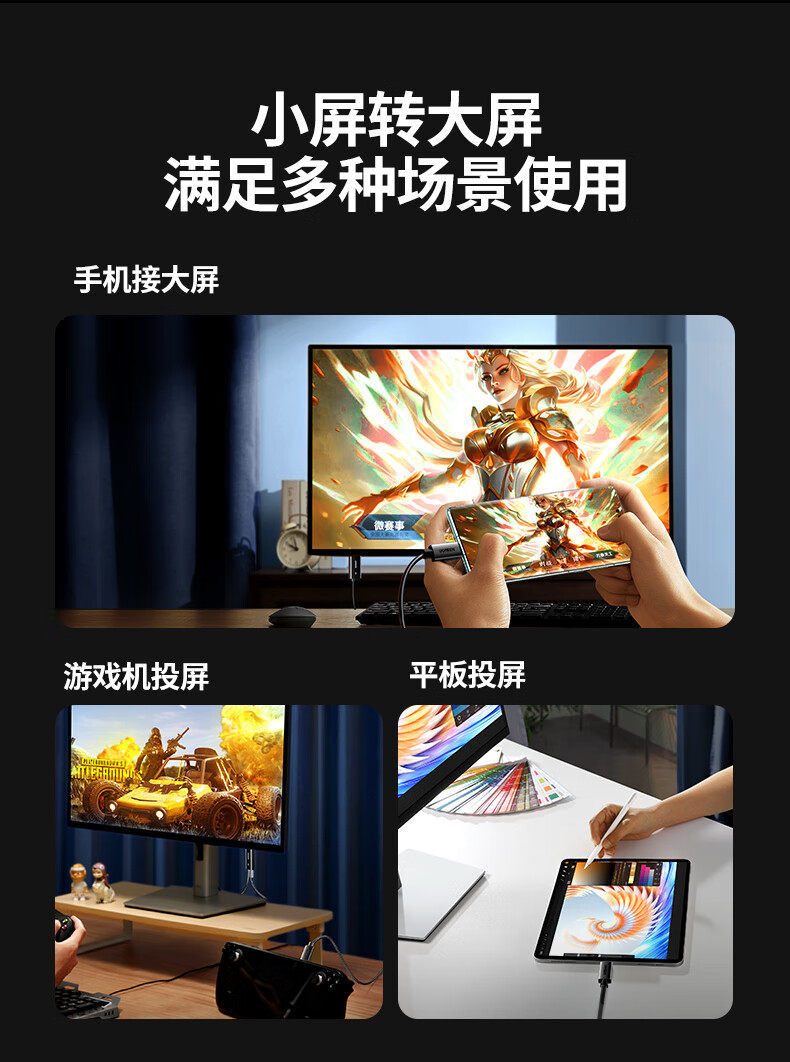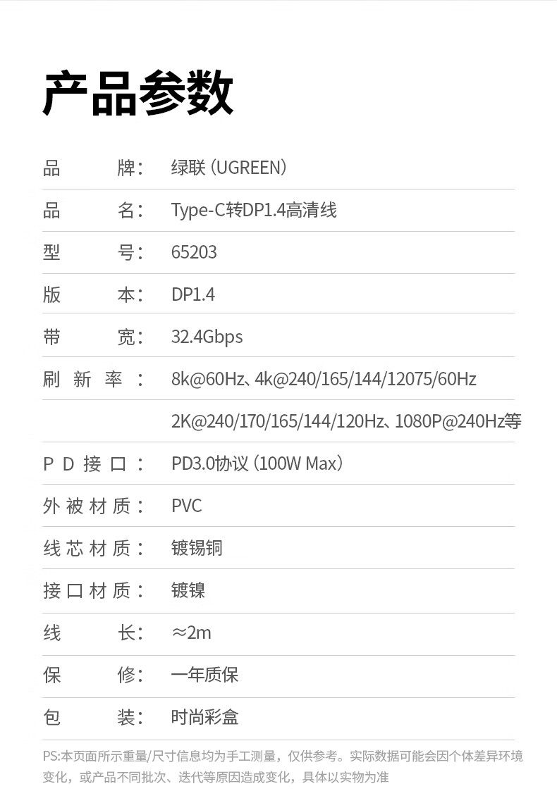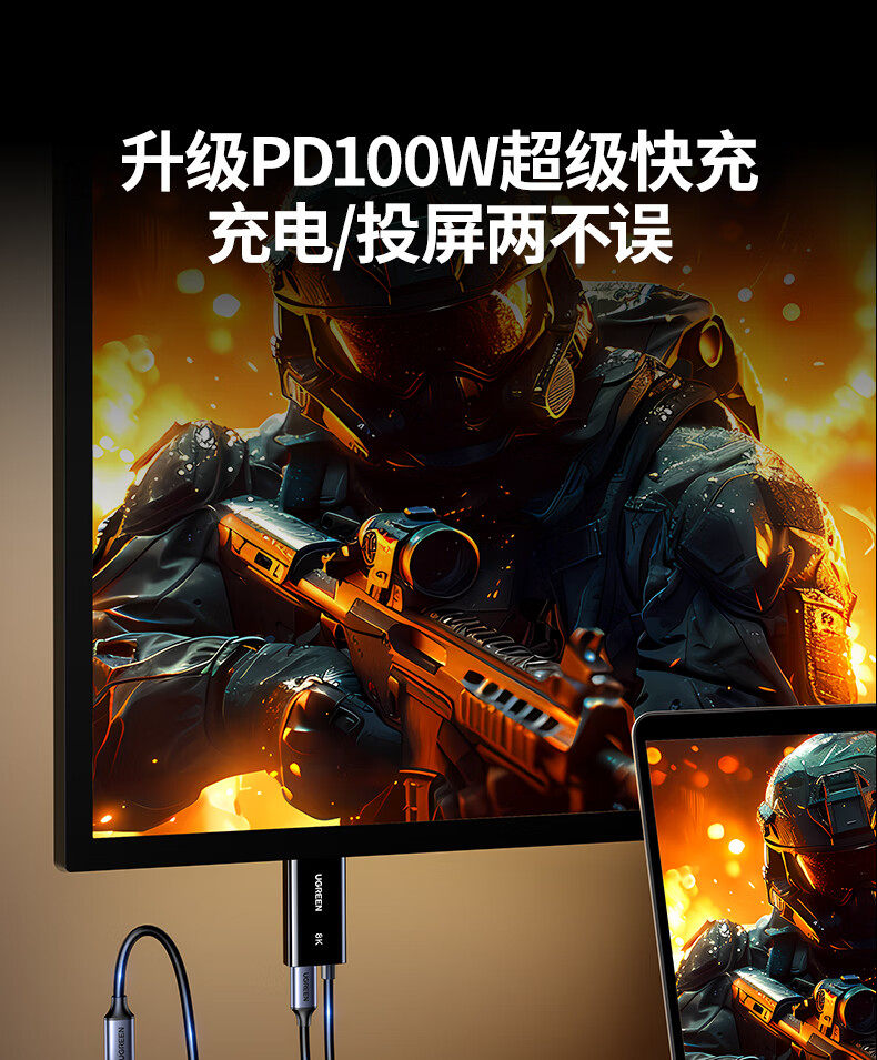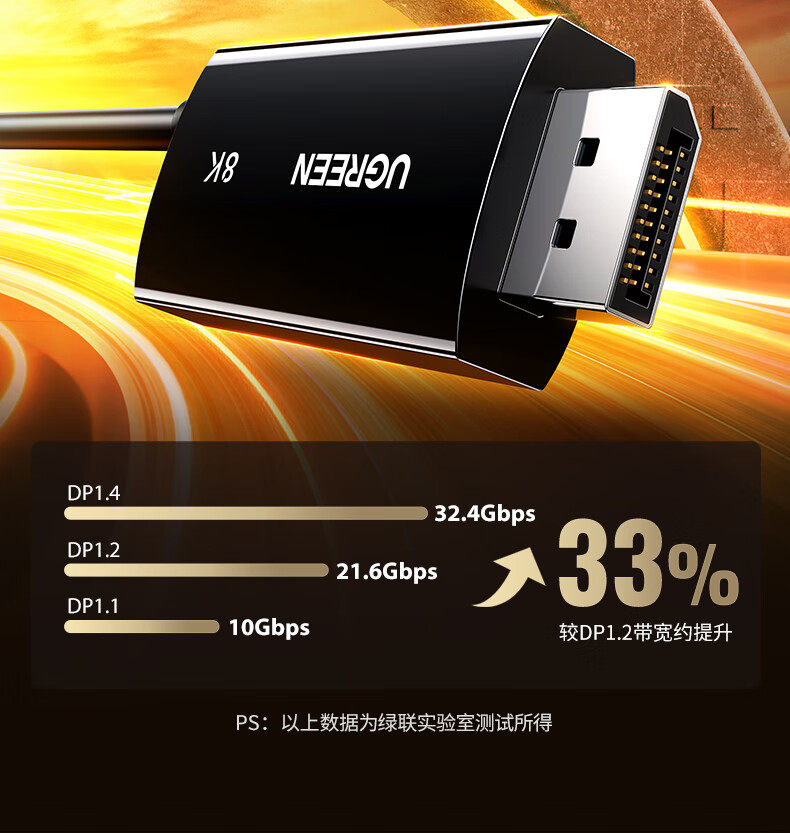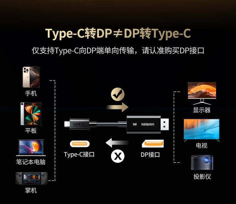 綠聯Type-C轉DP1.4線帶PD100W充電雷電4/5轉換器USB-C轉接8K60Hz