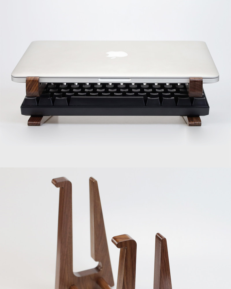 戰蛛胡桃木Mac配件果Macbook Air Pro蘋本支架妙控鍵盤托底座收納