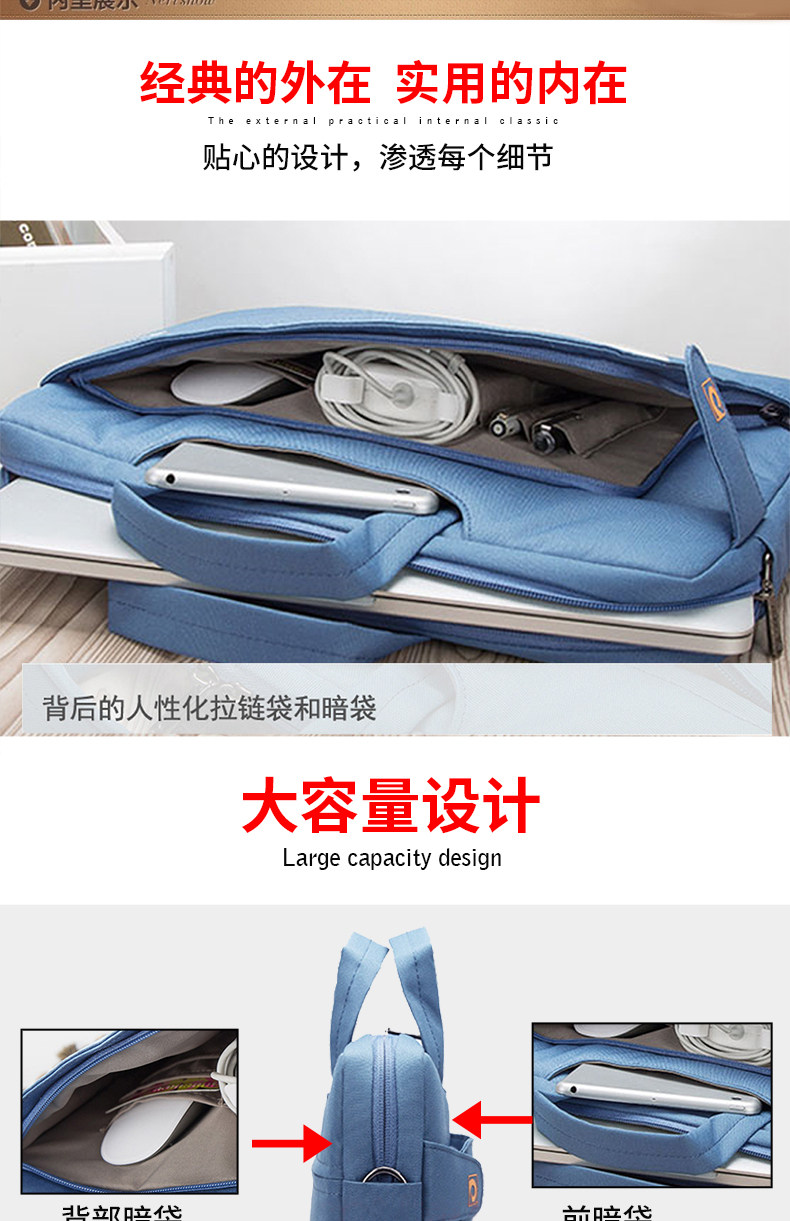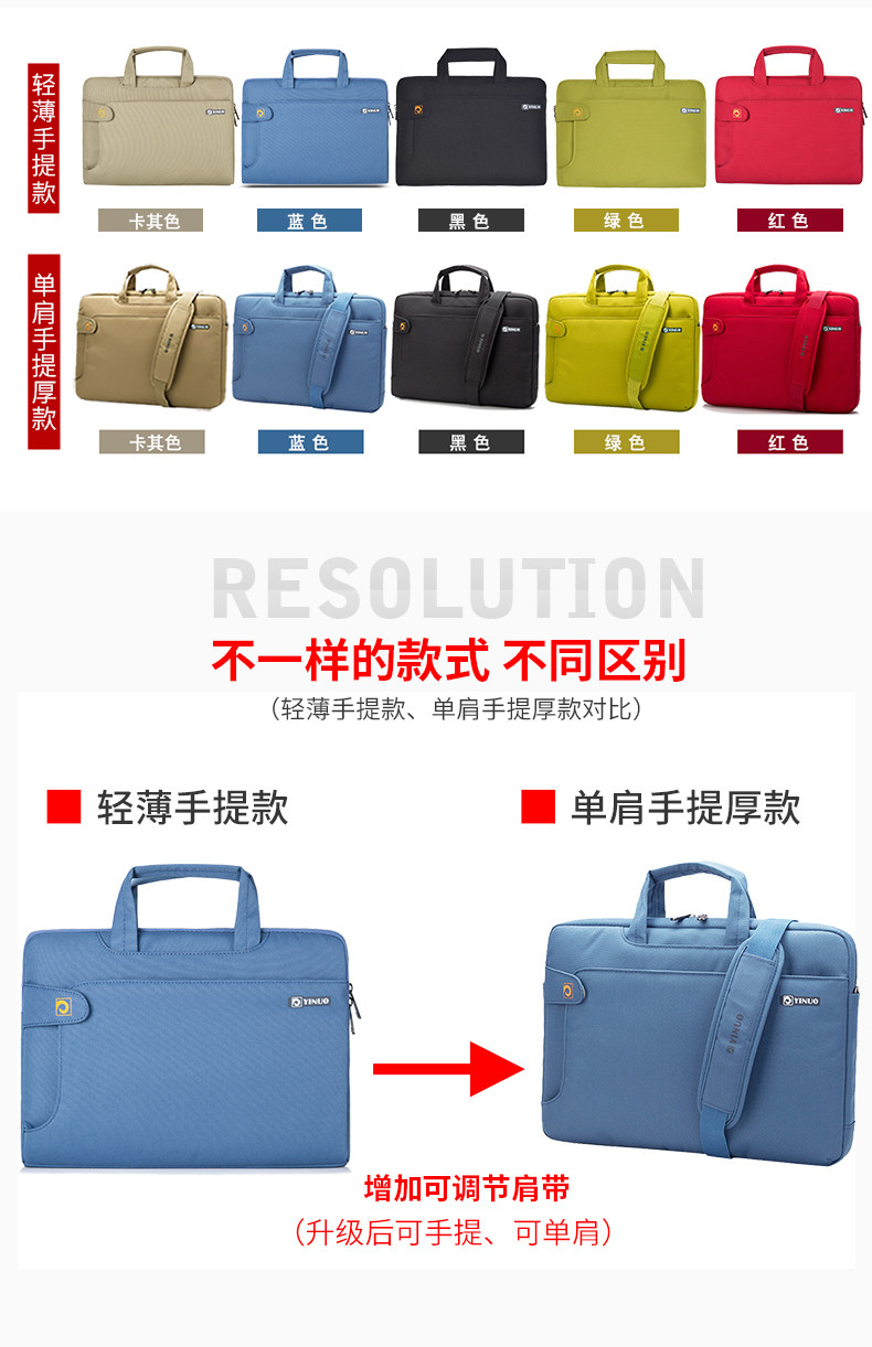 以諾適用於蘋果華爲12單肩14手提筆記型電腦包15.6包男女13.3寸