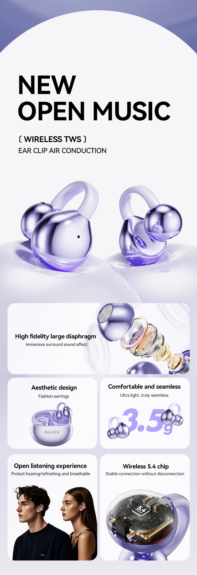 Silnek M91無線藍牙耳機耳夾式不入耳開放式音樂環境降噪耳機