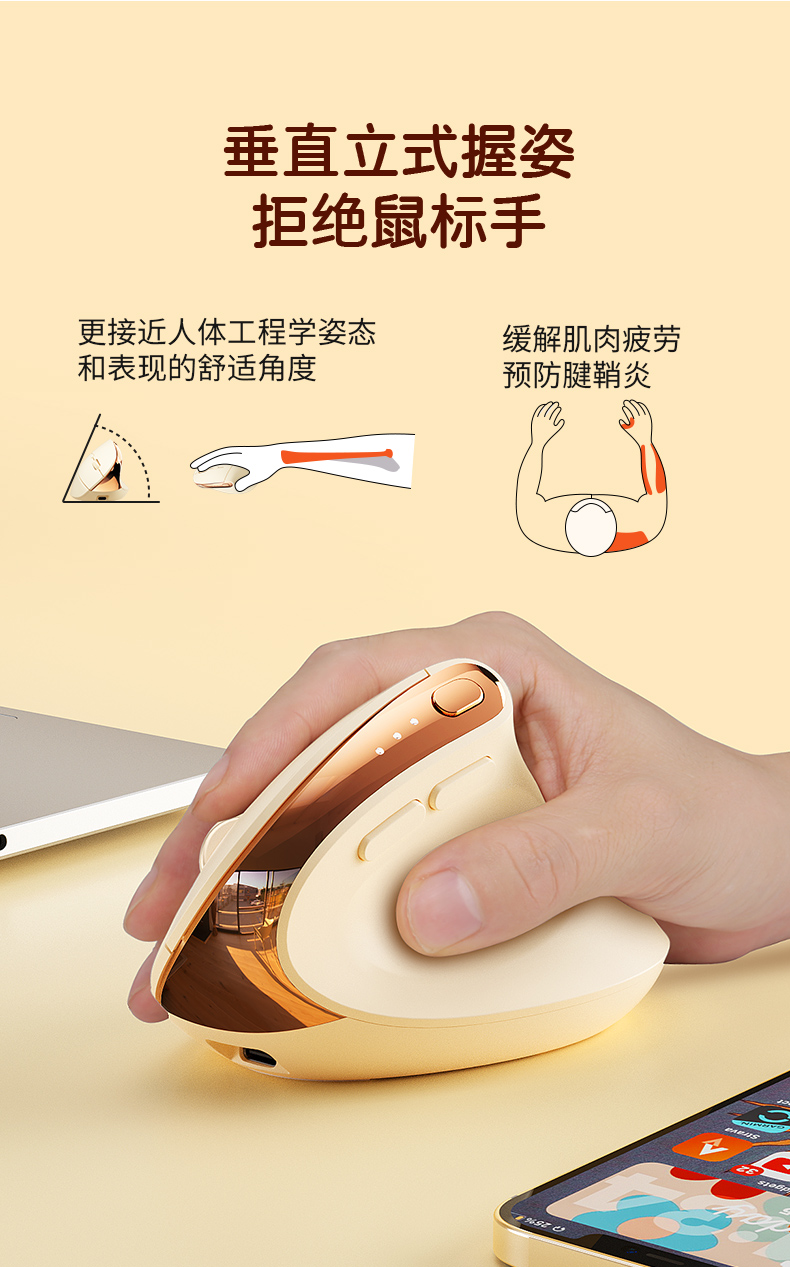 BOW優品 人體工學垂直立式無線滑鼠桌上型筆記型電腦通用辦公靜音