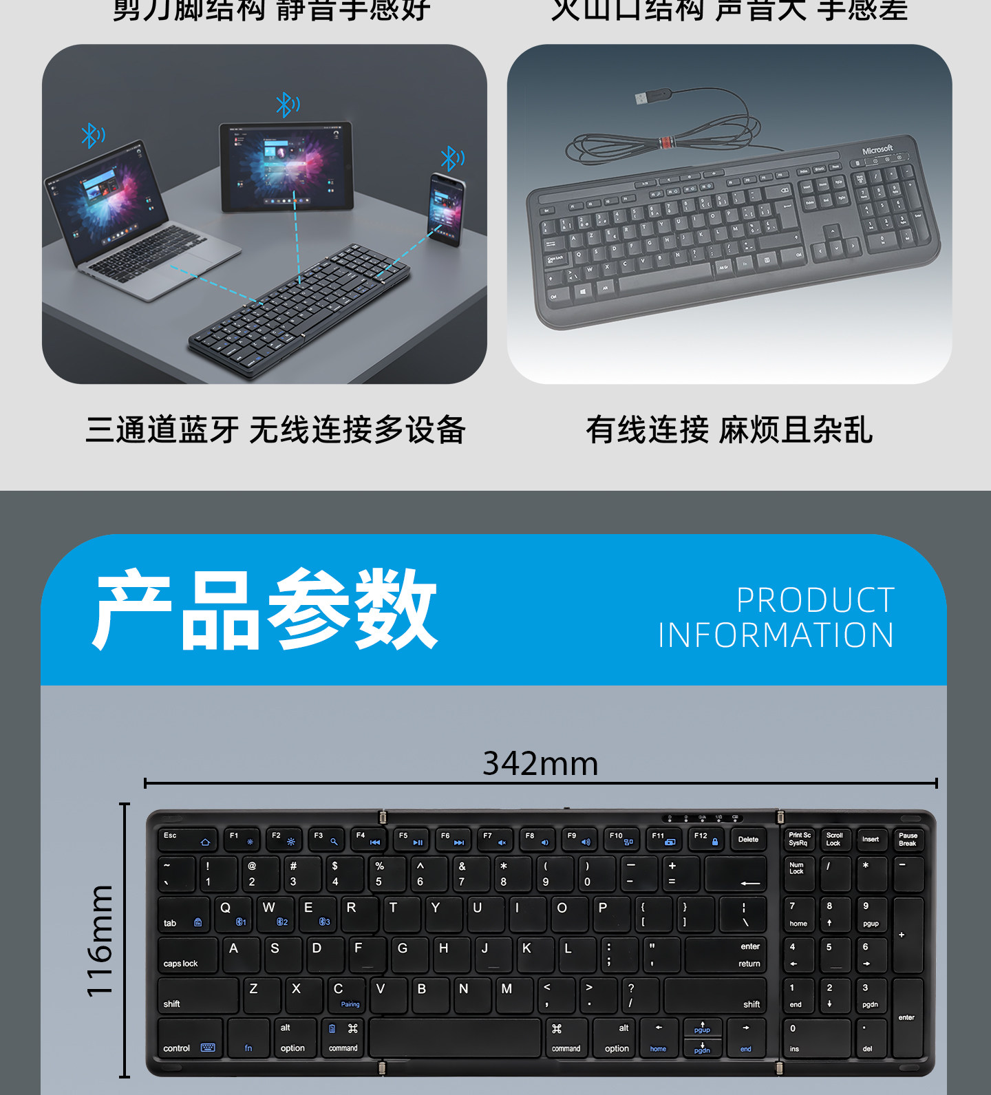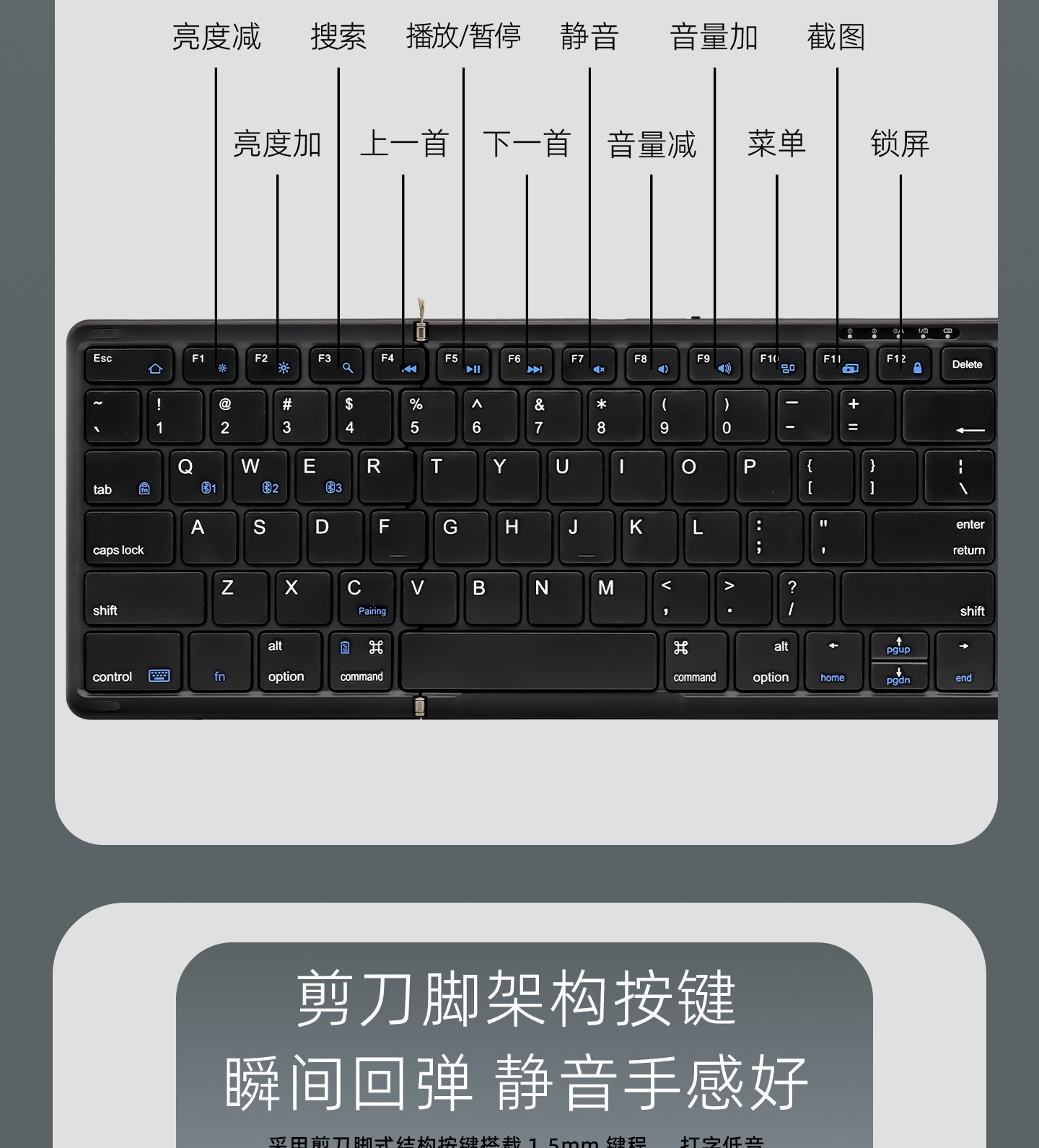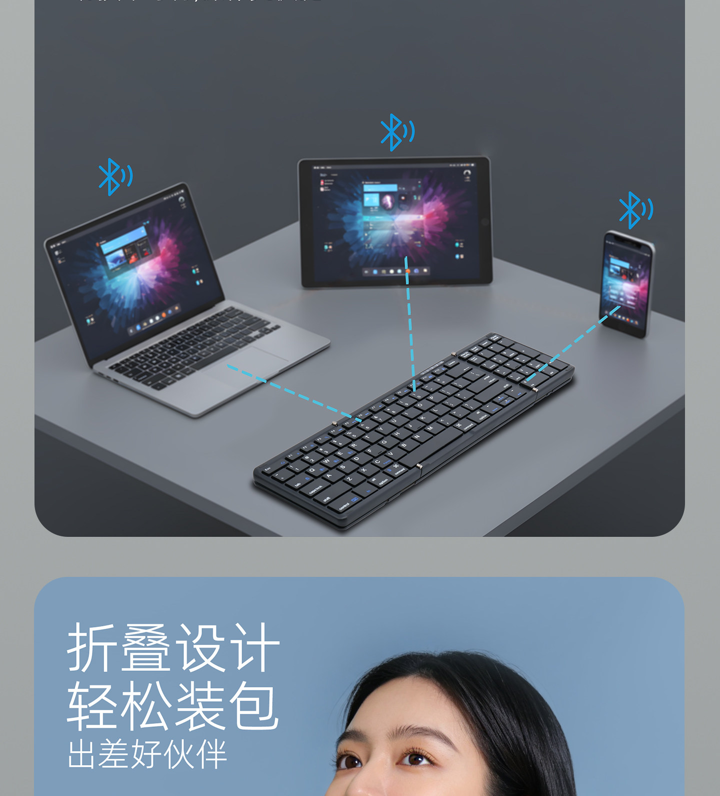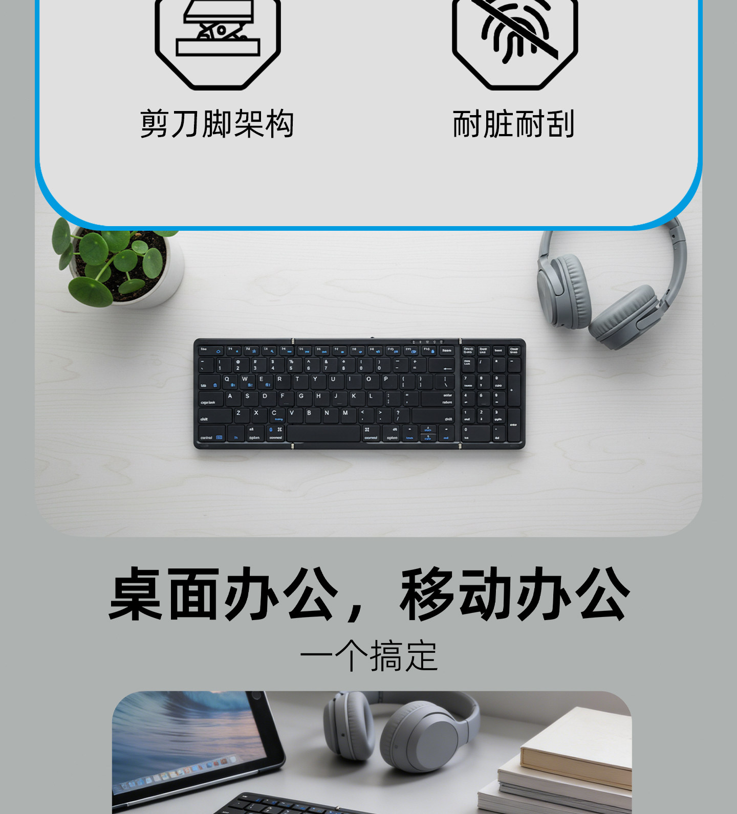 Koculus無線藍牙折曡六排全尺寸靜音可攜式鍵盤辦公通用iOS平板電腦
