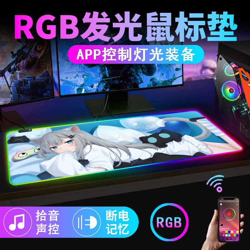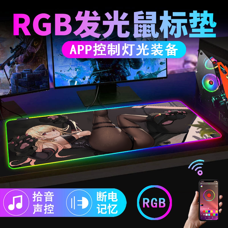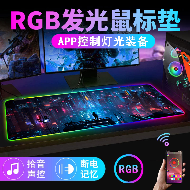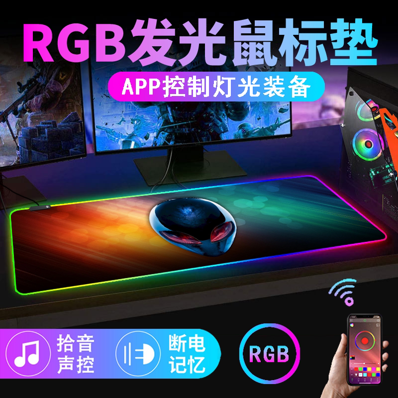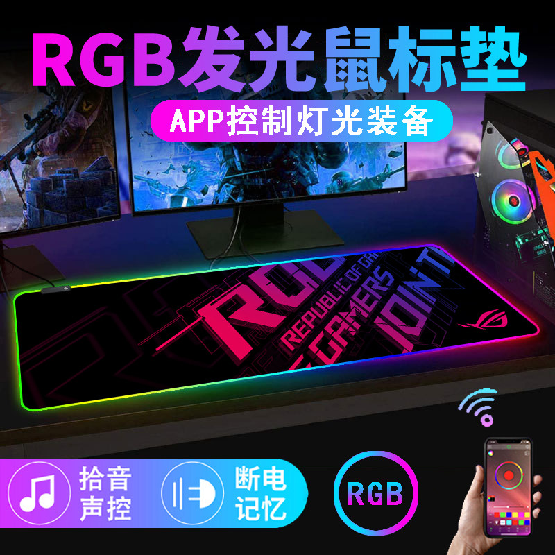 rgb發光滑鼠墊電競遊戯鍵盤墊超大rog電腦桌墊app音樂拾音滑鼠墊